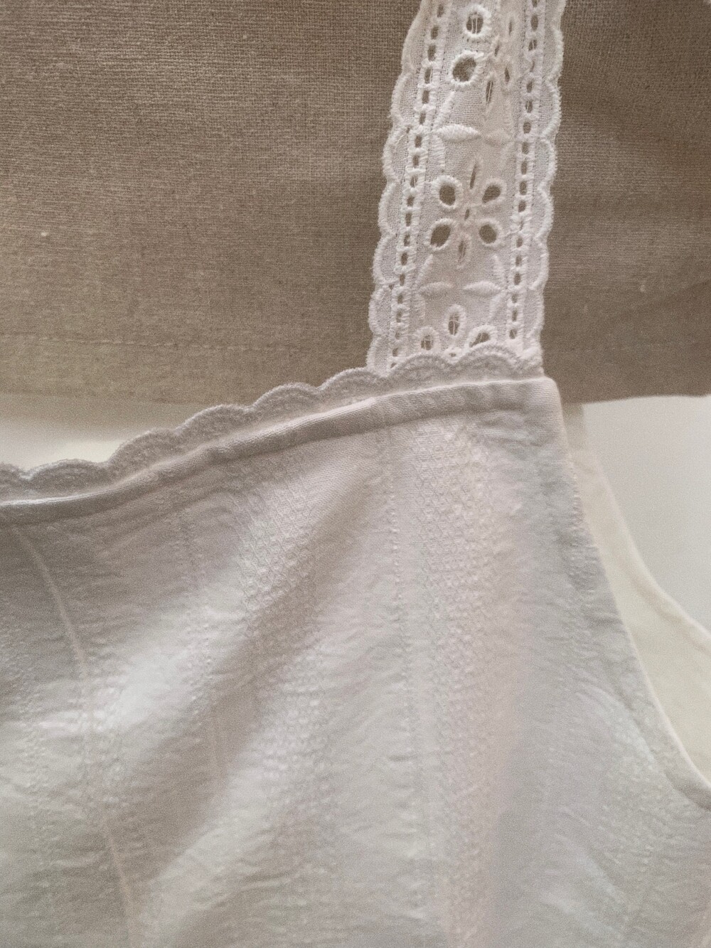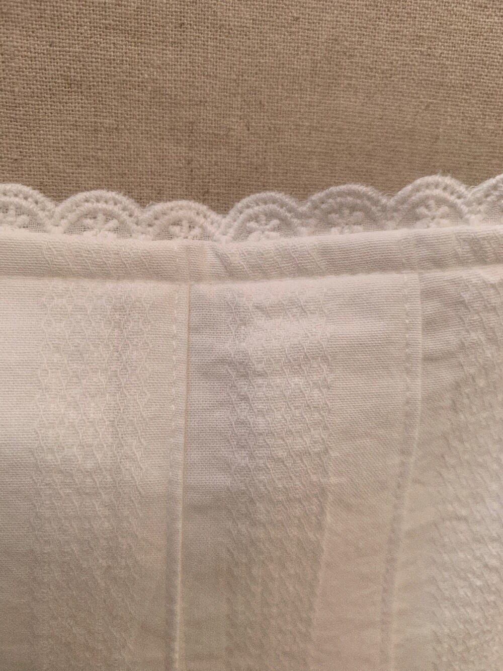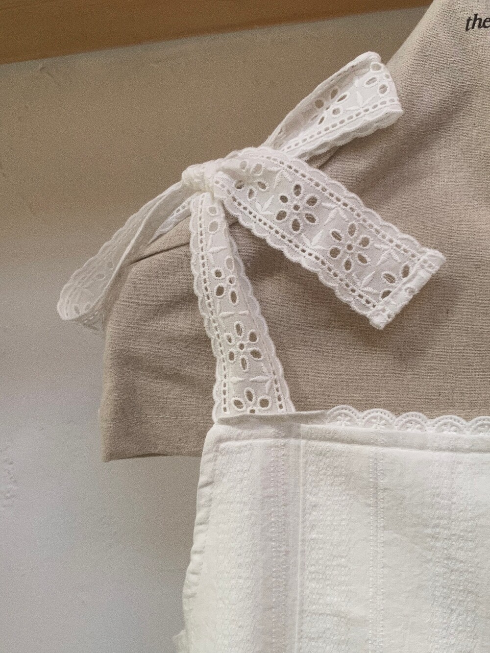 부드러운 아이보리 코튼 소재에 미미와 동일한 아일렛 테잎을 달아주었습니다.