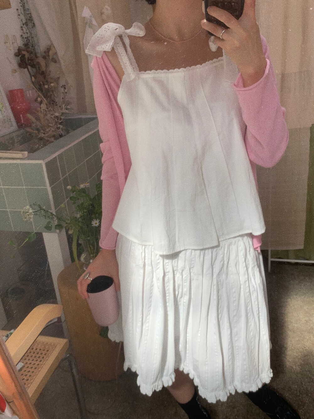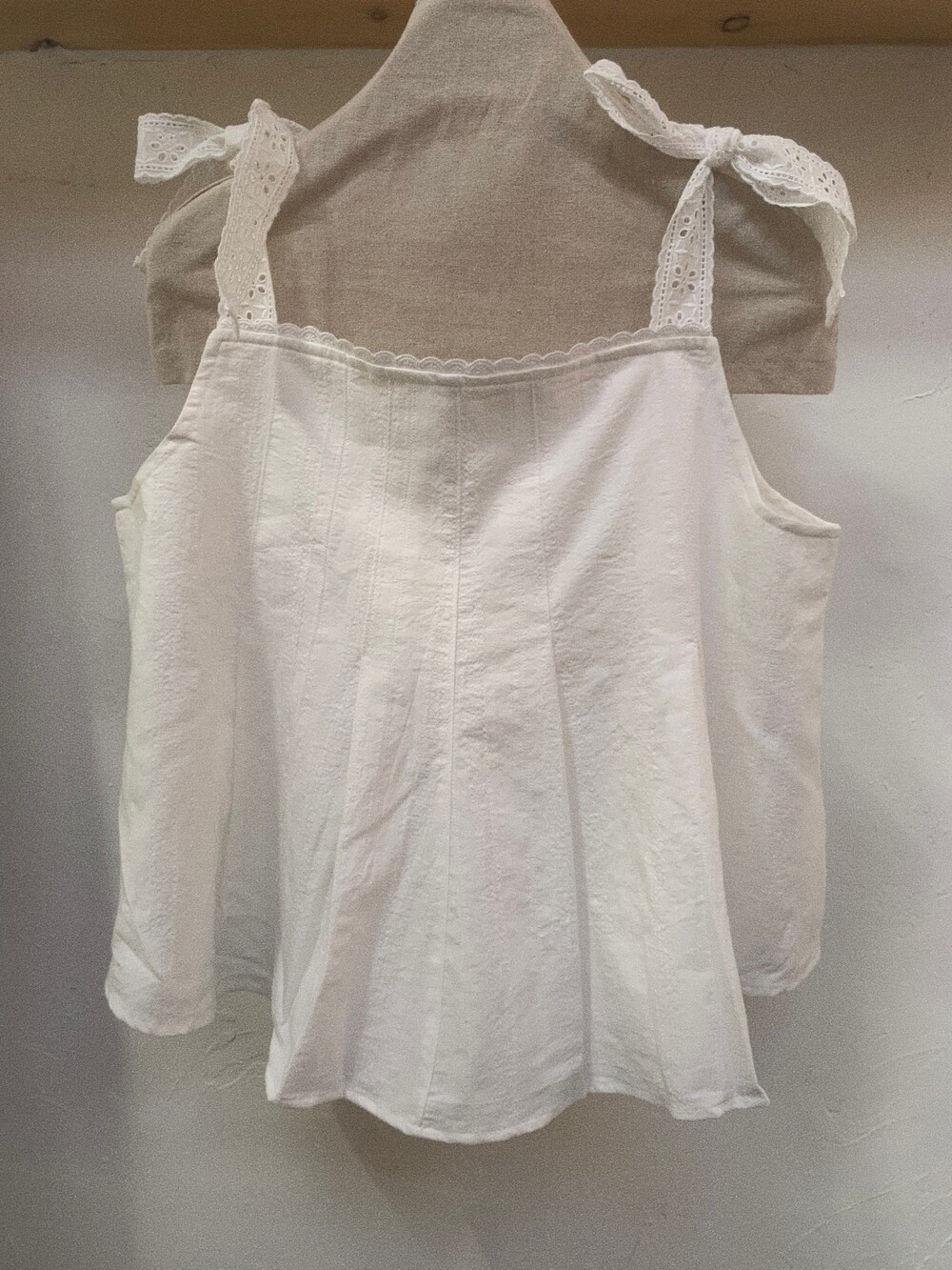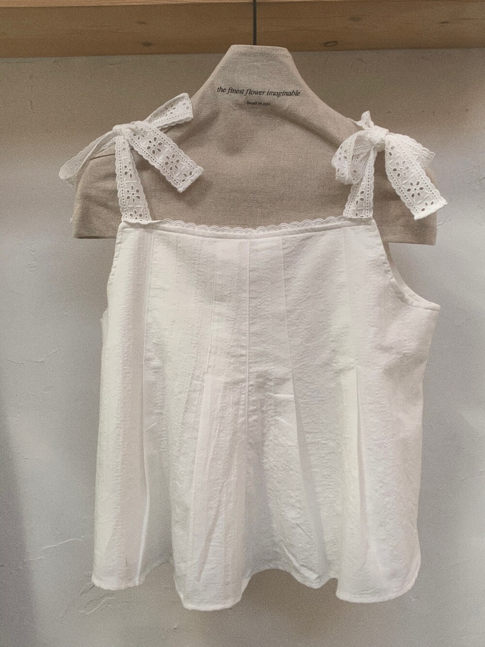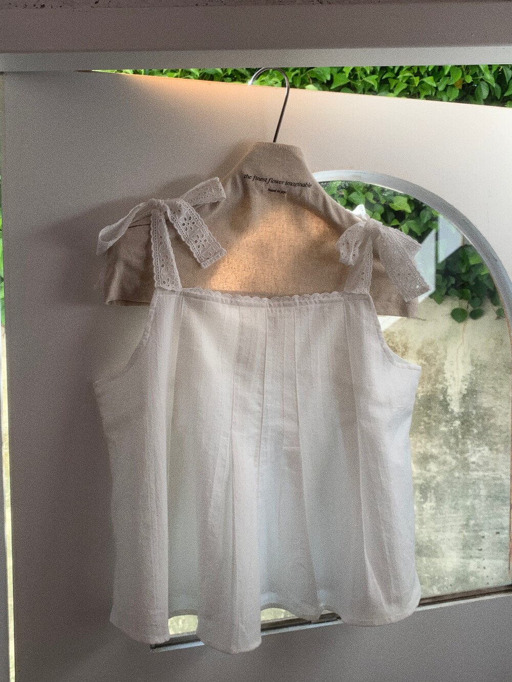 부드러운 아이보리 코튼 소재에 미미와 동일한 아일렛 테잎을 달아주었습니다.