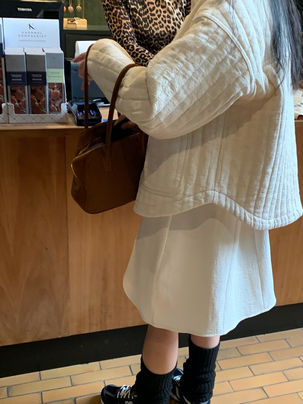 패딩 셔츠 자켓 / 누빔 원피스와 함께.