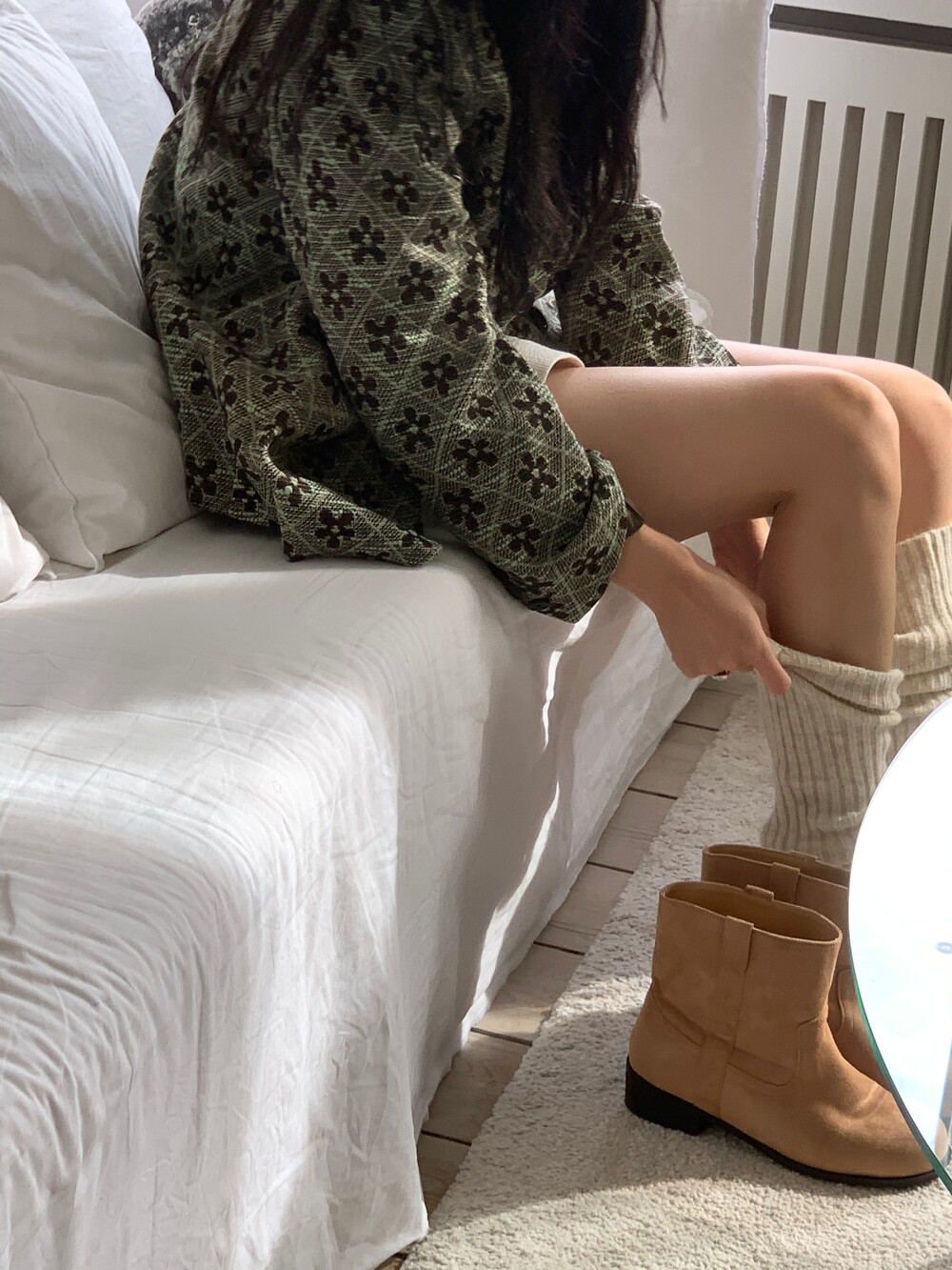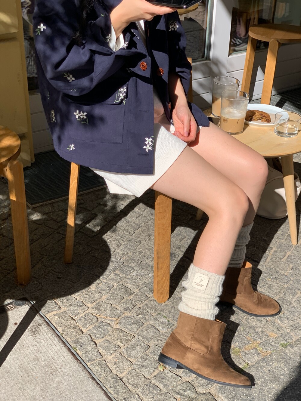 무릎부터 발목까지 일자로 떨어지는 심플한 디자인으로 시보리 없이 네추럴한 느낌으로 착용하는 워머입니다