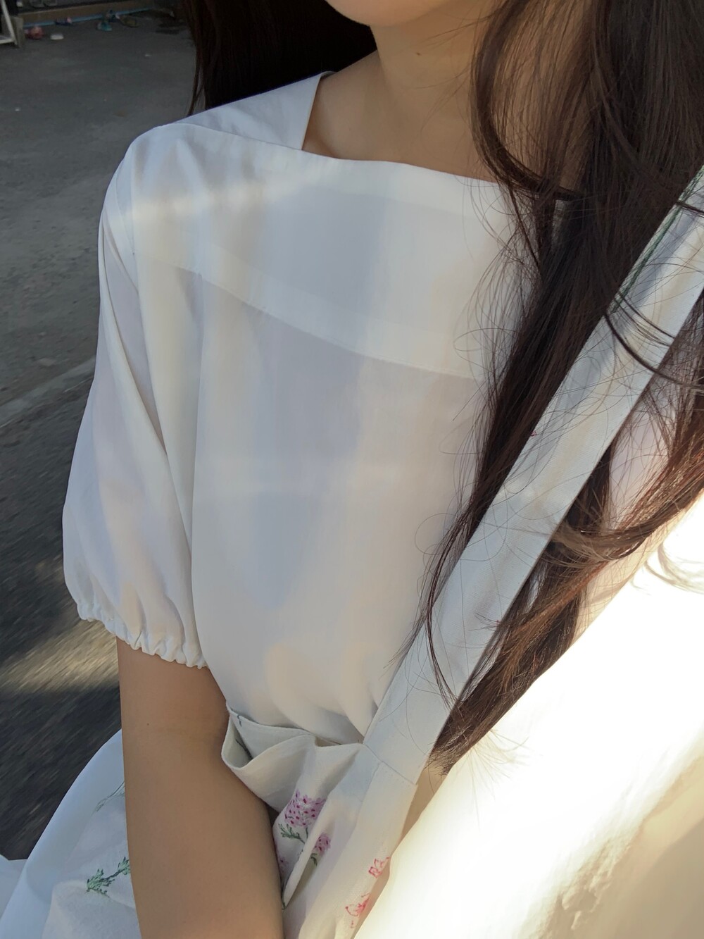 어깨 끝까지 일자로 길게 이어 쇄골과 목선이 정돈되어 보이게 만들었어요.