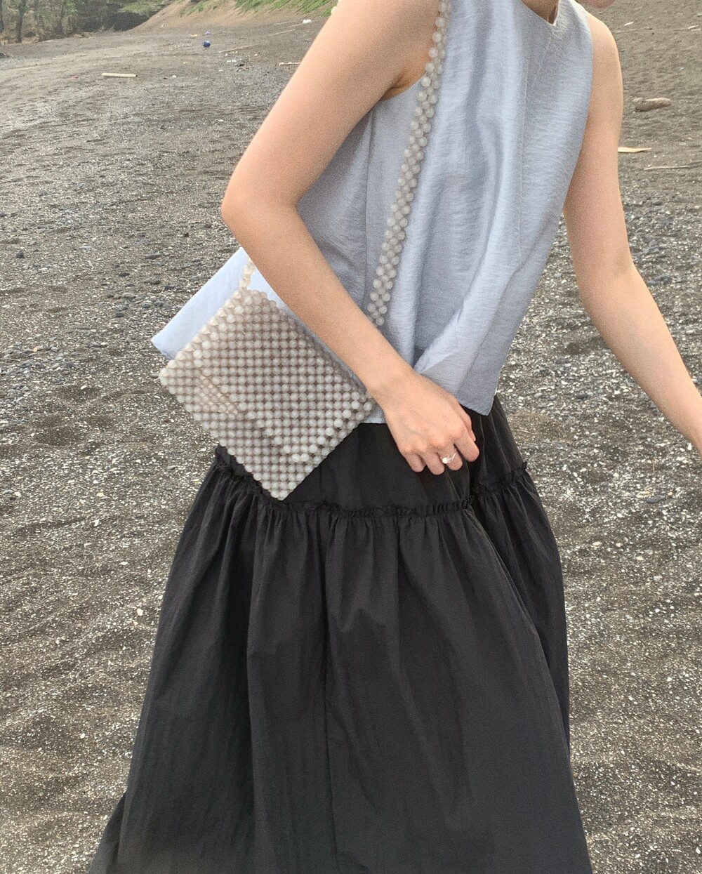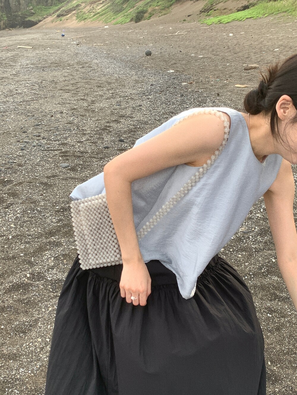 암홀은 너무 깊지도 얕지도 않게, 세심하게 라인을 다듬어 어깨선과 팔이 예뻐보여요.