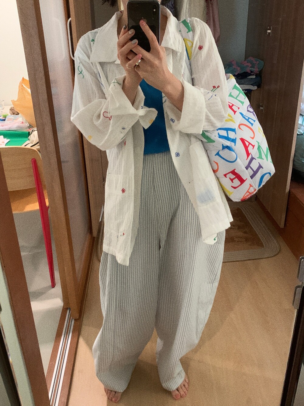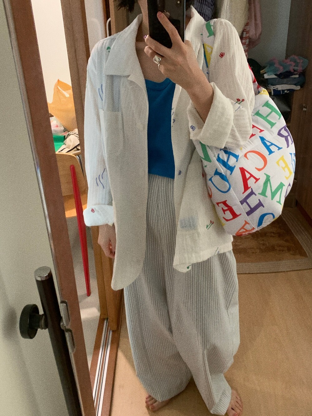 색감이며, 소재감이 정말 훌륭한데 무엇보다 세탁했을때 변형이 없고 건조가 빨라 여행룩으로 만족도가 높았습니다.