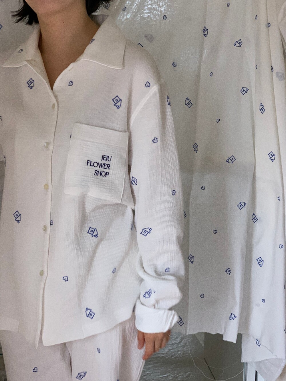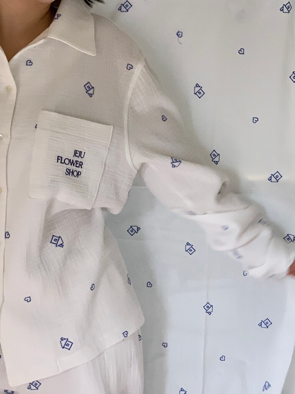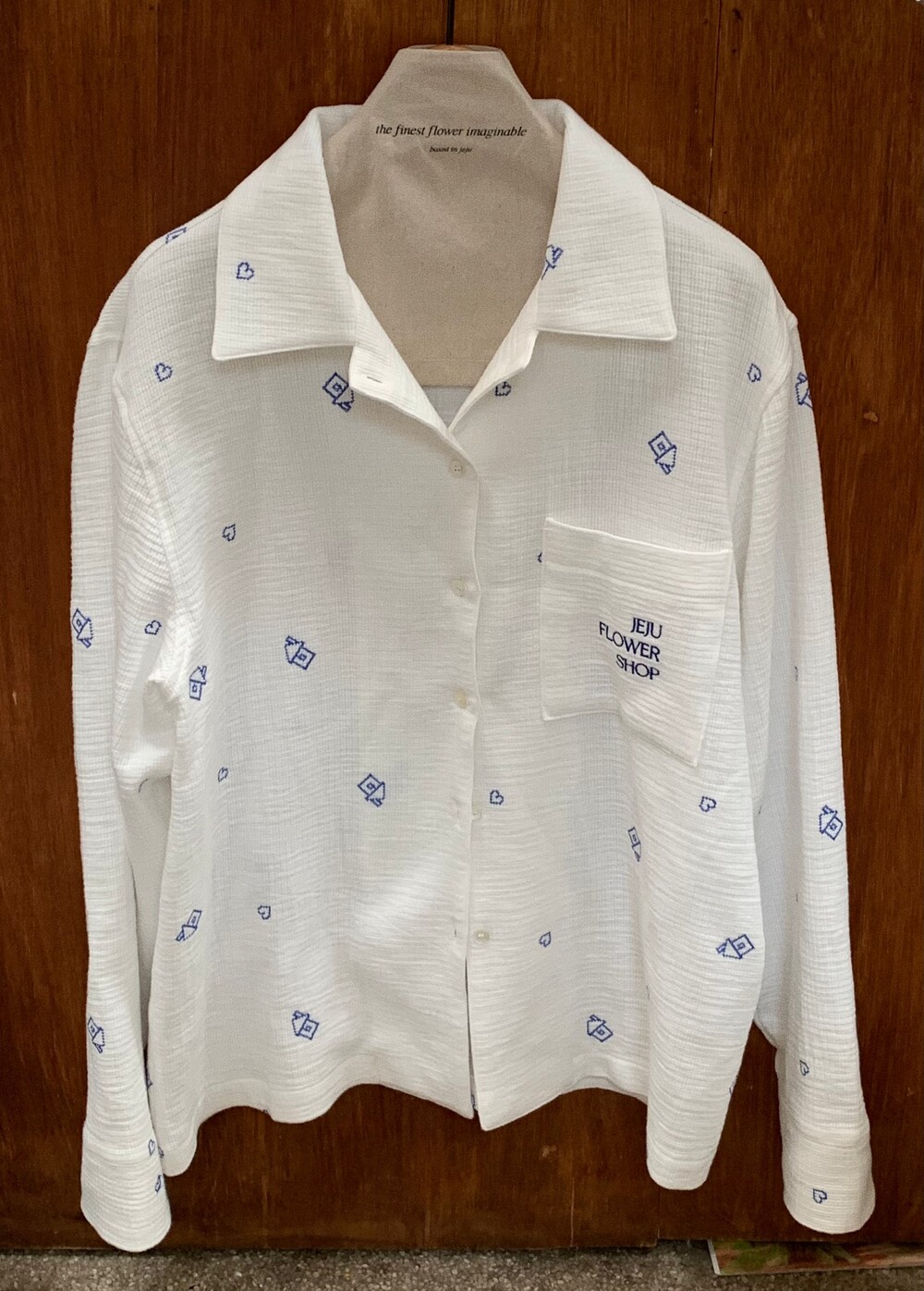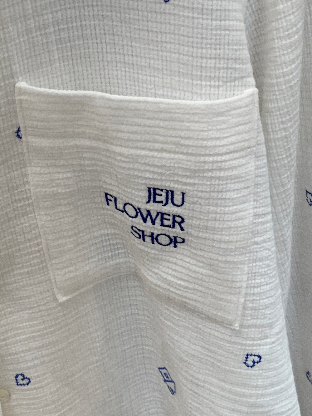 가슴 포켓에는JEJU FLOWER SHOP 자수를 더해브랜드의 무드를 조용하게 담았어요.