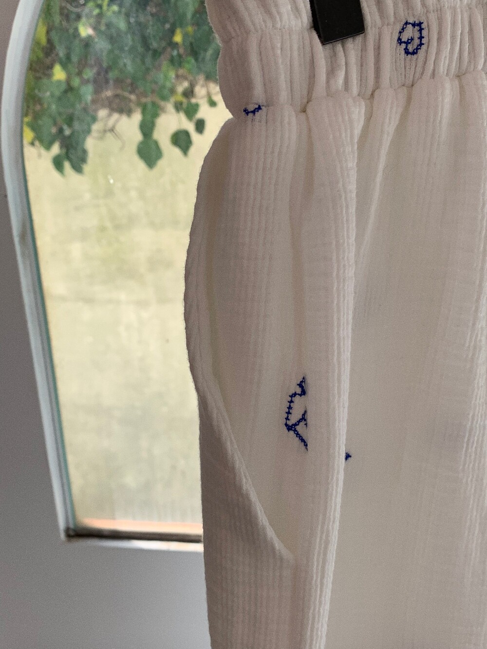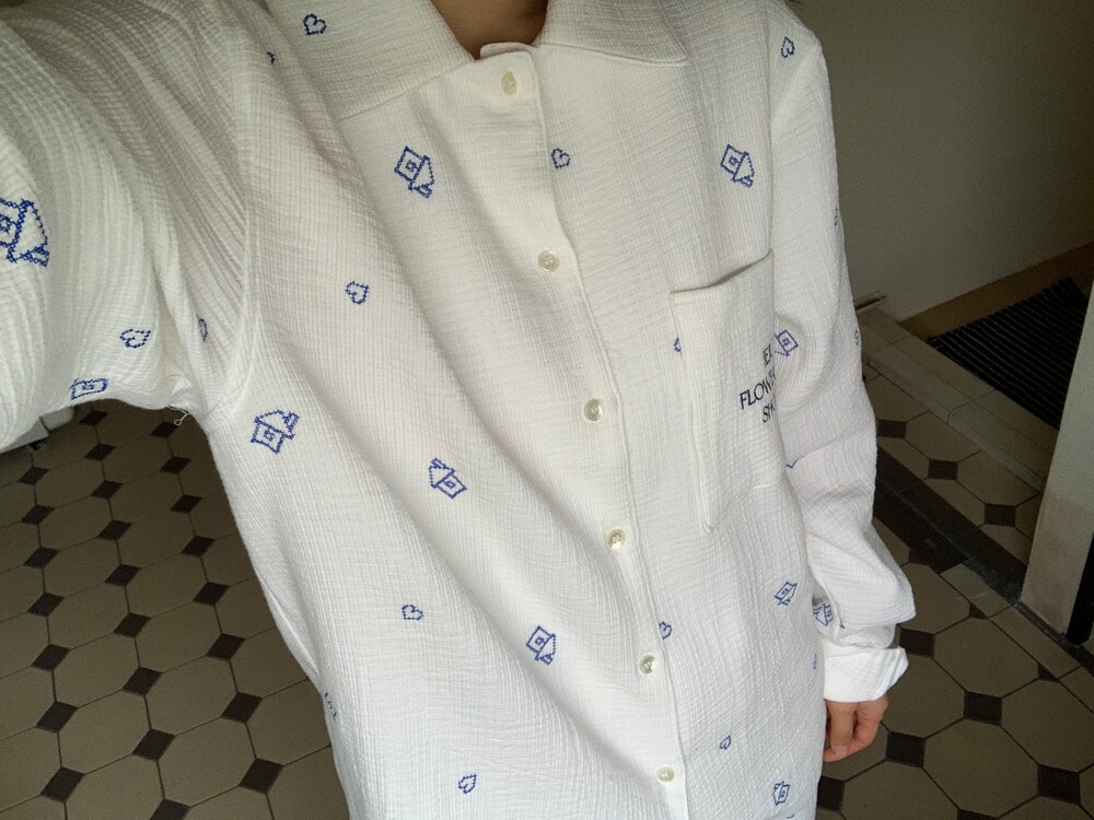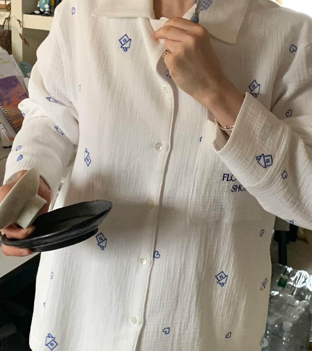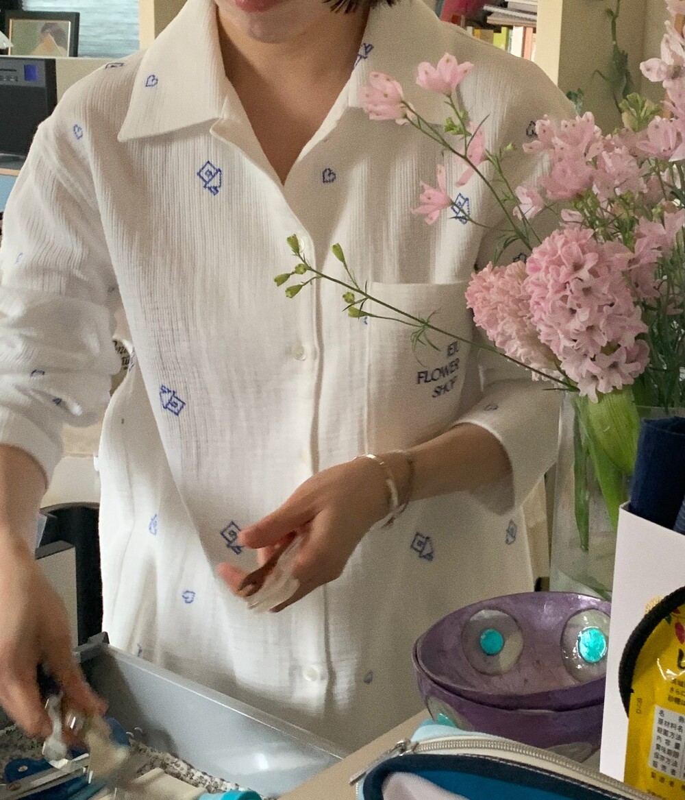 가슴 포켓에는JEJU FLOWER SHOP 자수를 더해브랜드의 무드를 조용하게 담았어요.