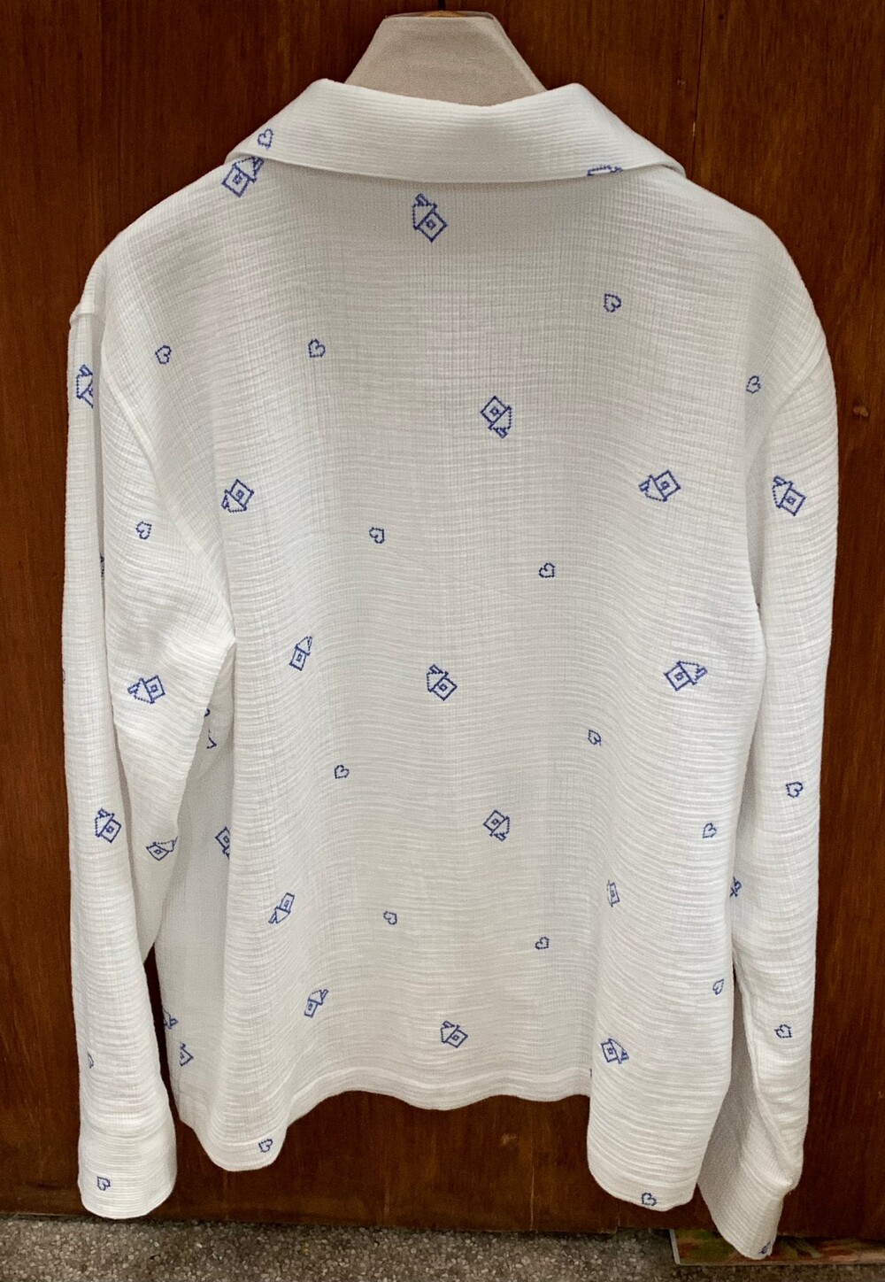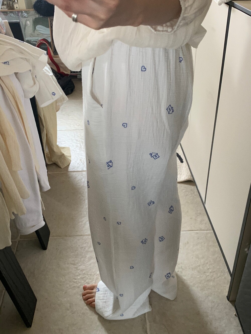 작은 그림들이 흩어지듯 배치되어 있어서 입었을 때 더 자연스럽고 귀여운 무드가 살아납니다.