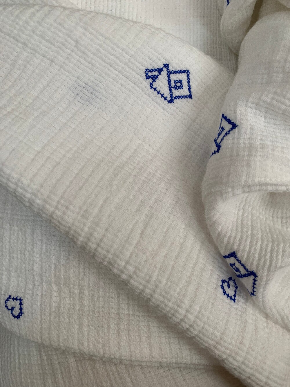 부드러운 아이보리 베이스에 블루 드로잉이 더해졌습니다.