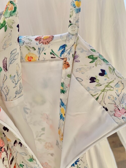네크라인은 살짝 브이 라인으로 만들어 쇄골과 어깨가 아름다워 보이도록 했어요