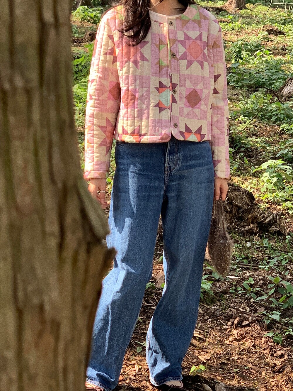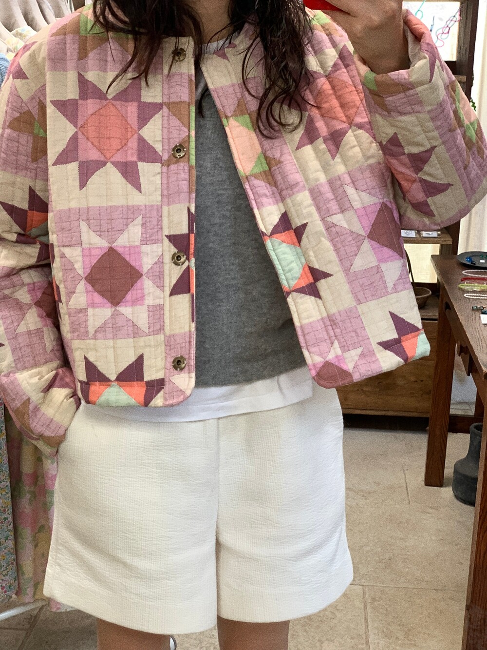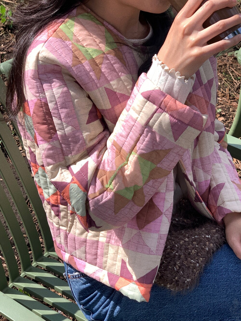 유니크하면서 사랑스러운 컬러감의 퀼팅자켓을 만들었어요.