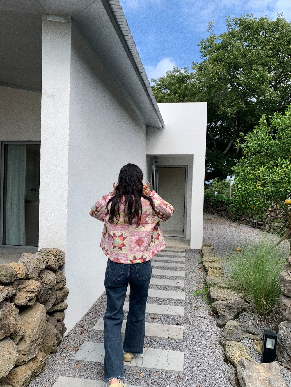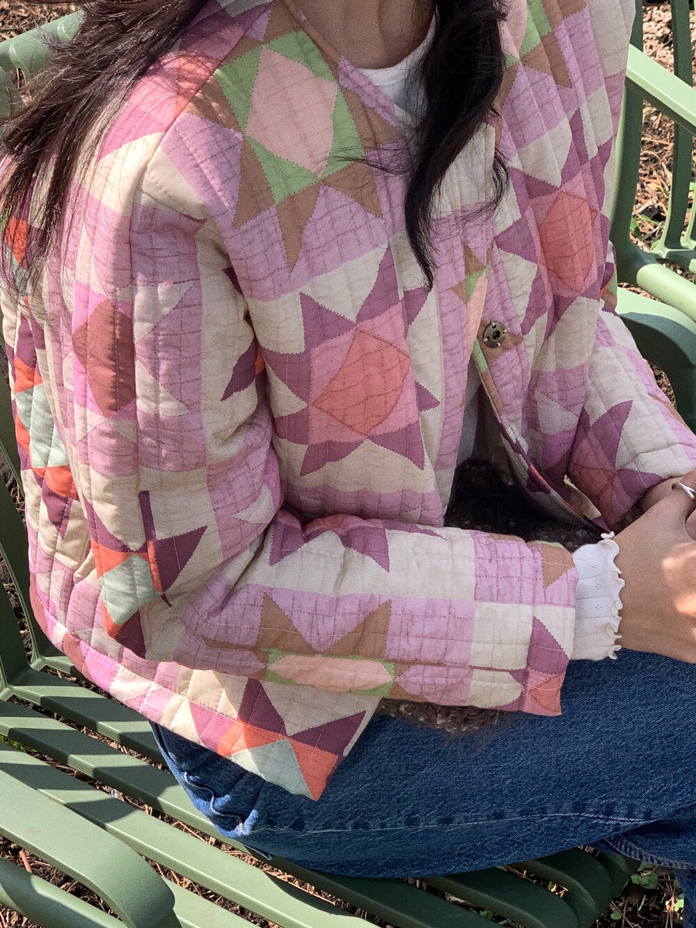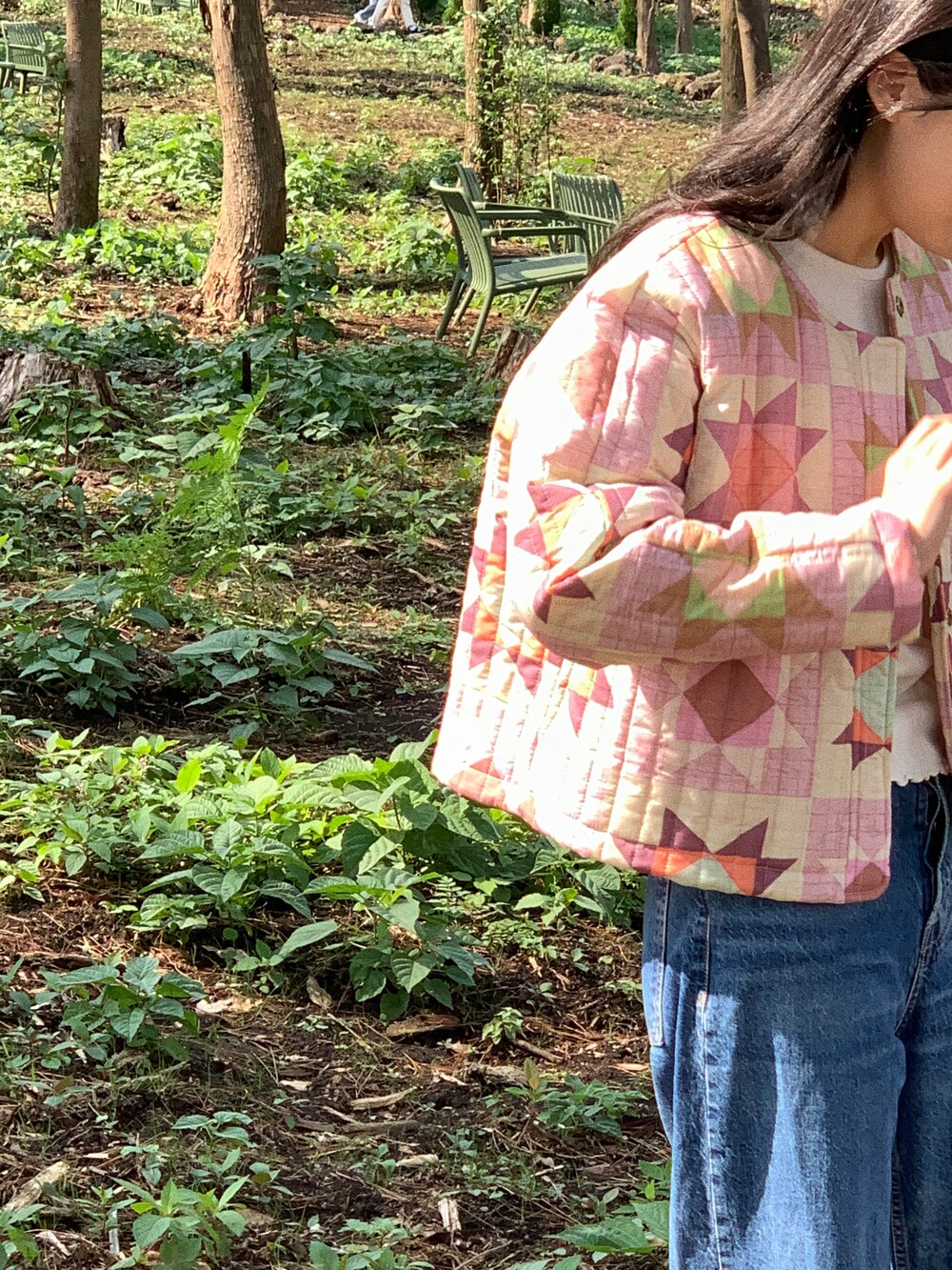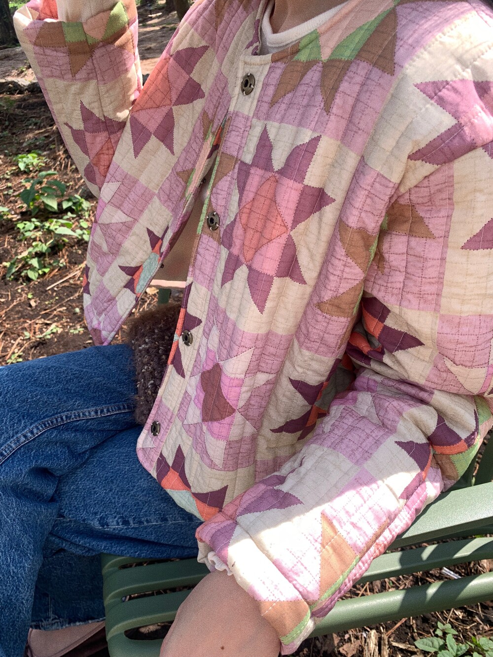 유니크하면서 사랑스러운 컬러감의 퀼팅자켓을 만들었어요.
