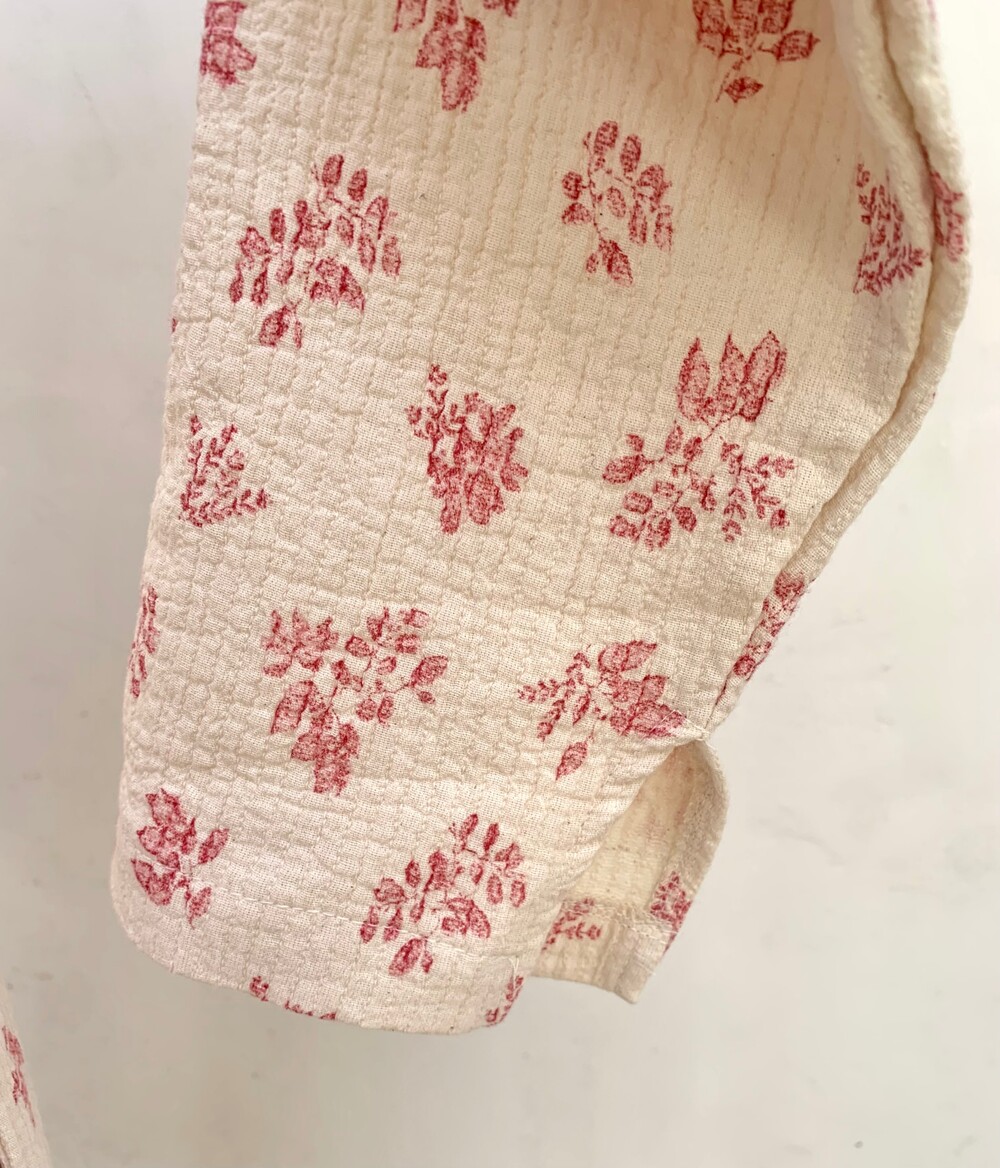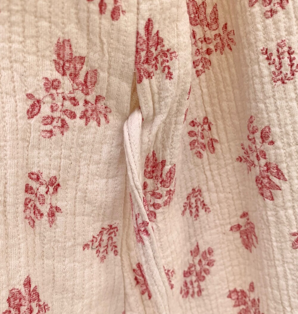 뽀얀 아이보리 컬러 바탕에 산뜻한 레드 컬러의 프린트입니다