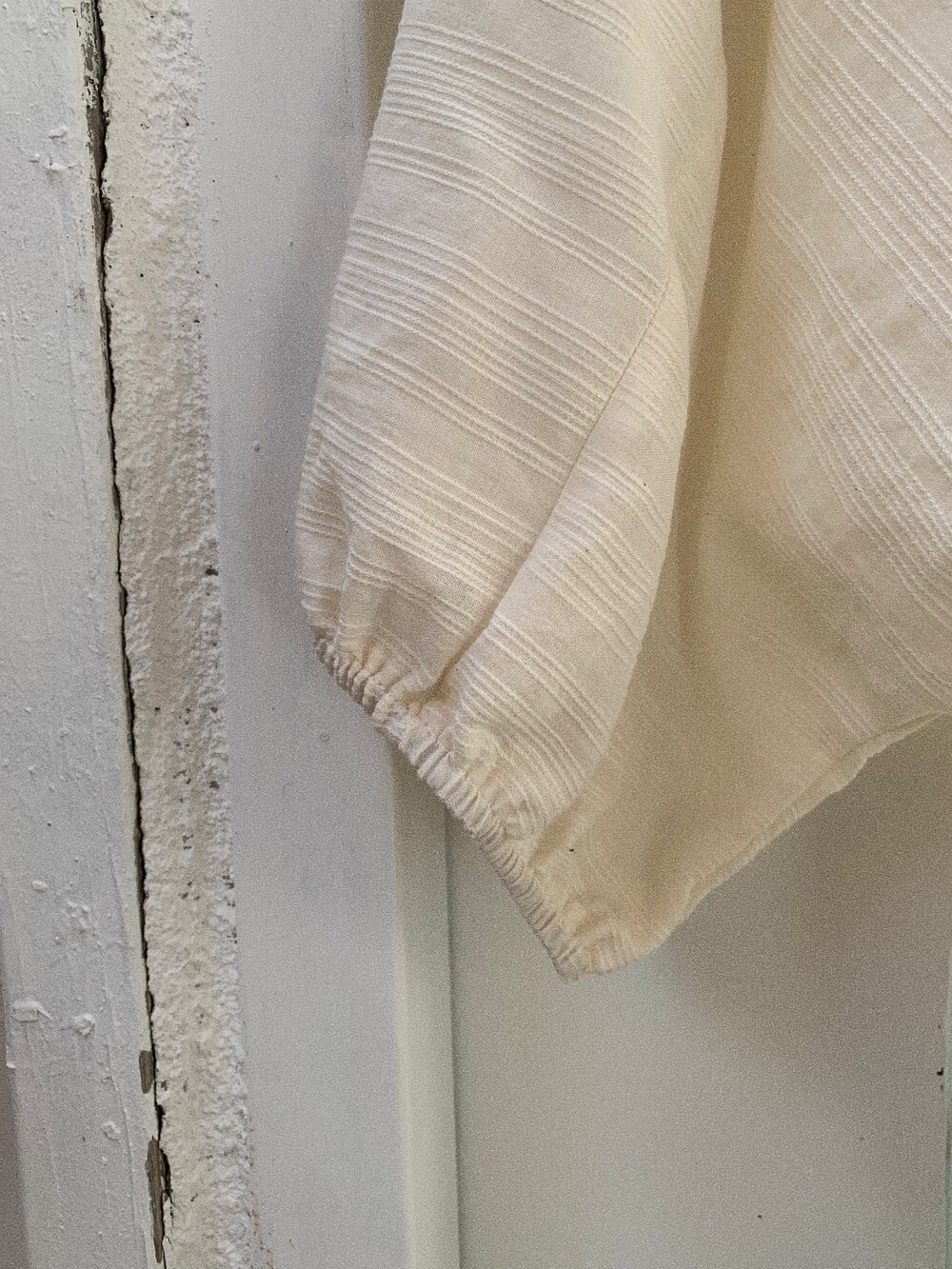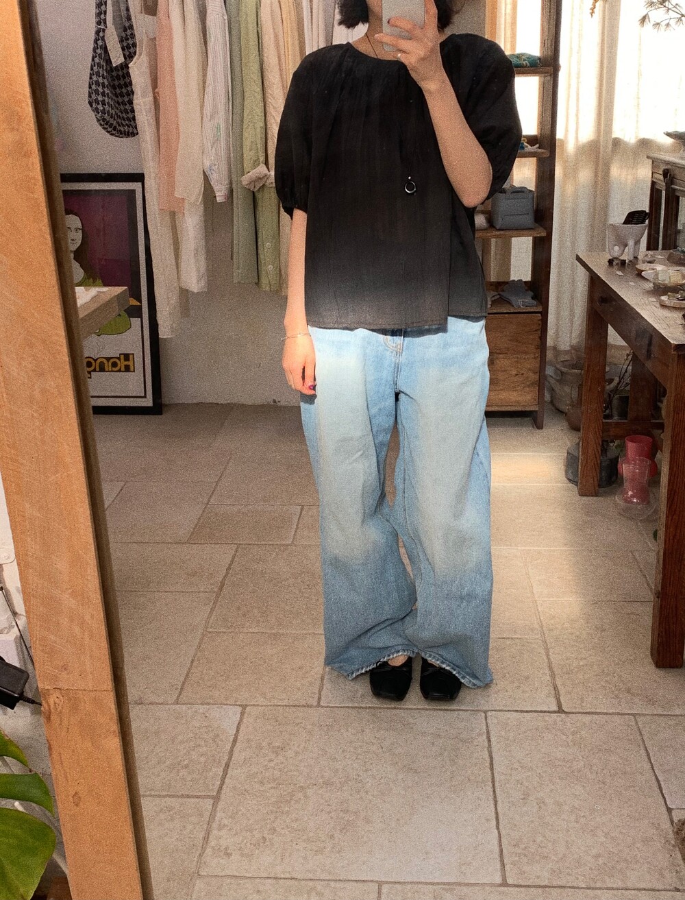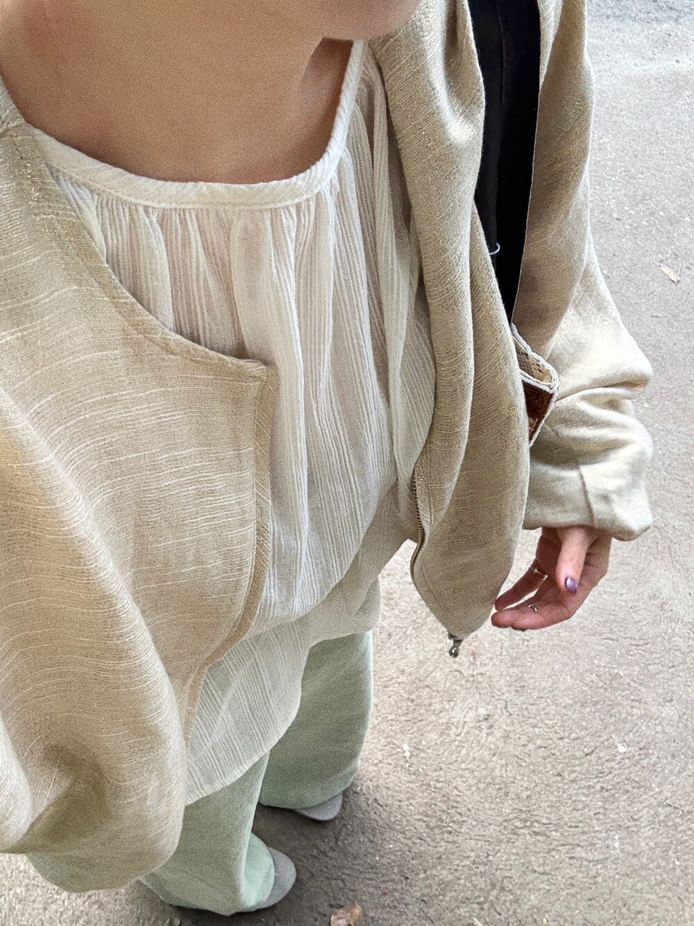 소매는 살짝 볼륨감 있게 떨어지며, 소매끝에는 밴딩을 넣어주었습니다.