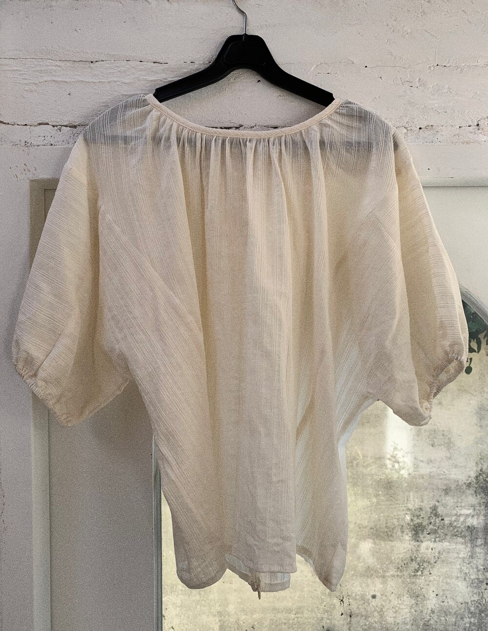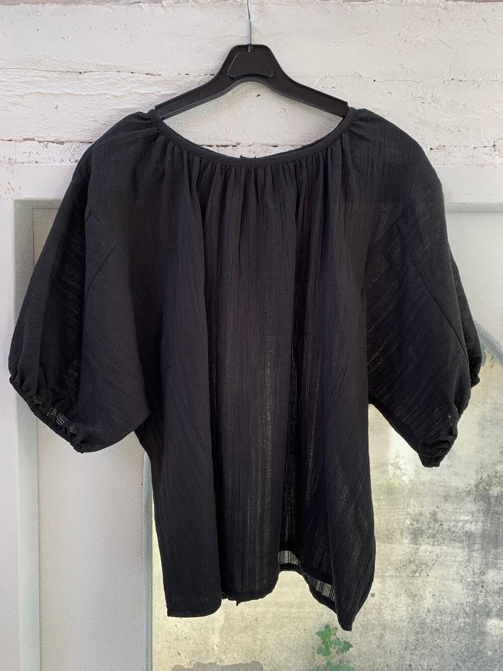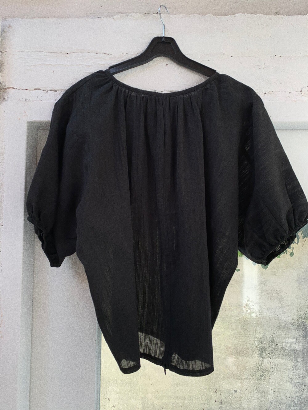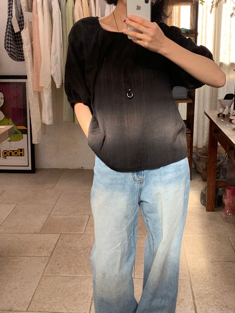 소매는 살짝 볼륨감 있게 떨어지며, 소매끝에는 밴딩을 넣어주었습니다.
