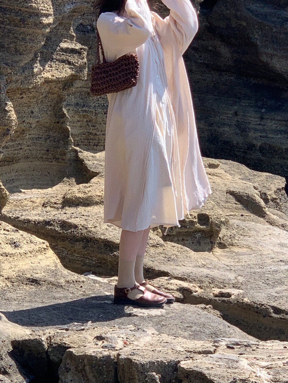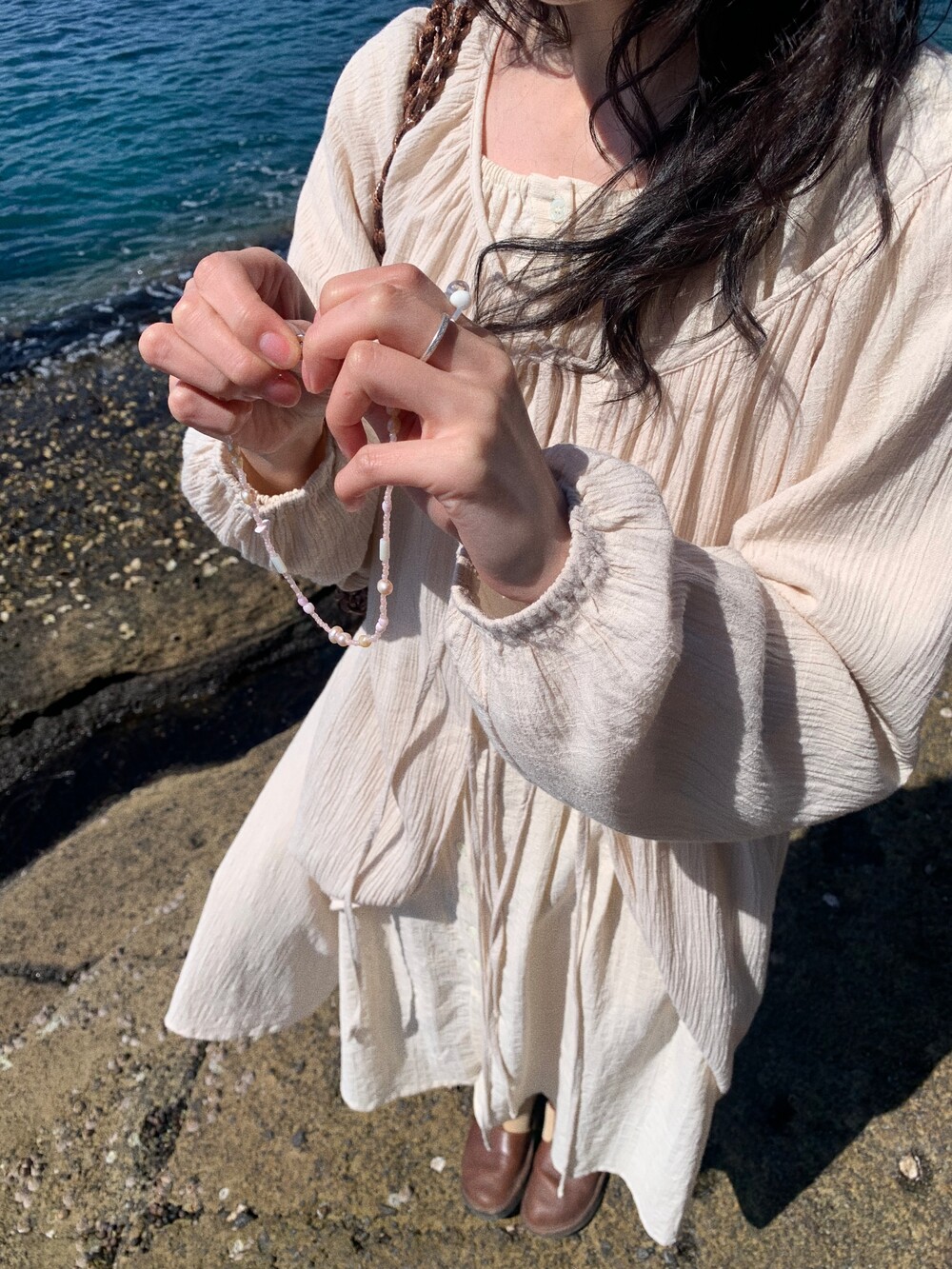 여밈 부분의 긴 스트랩은 그 자체만으로도 포인트가 되고,
