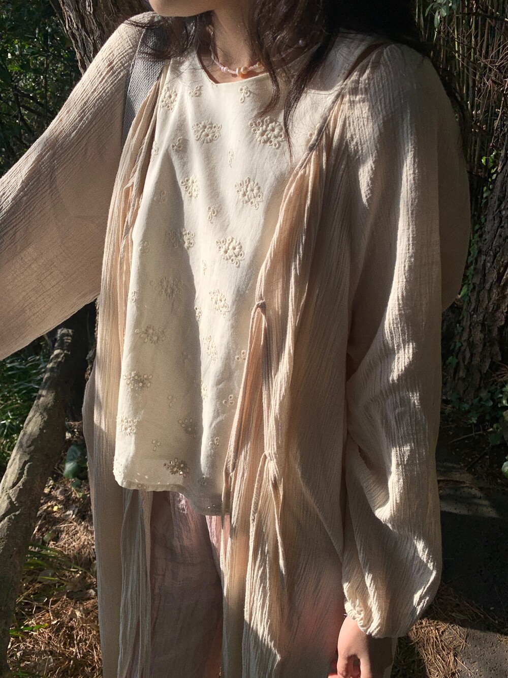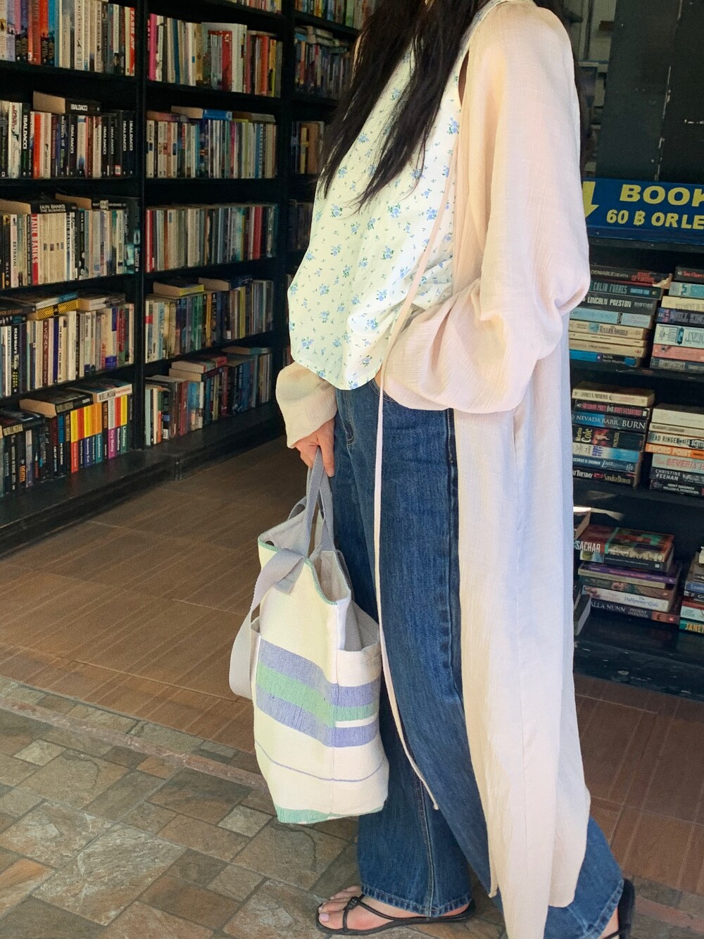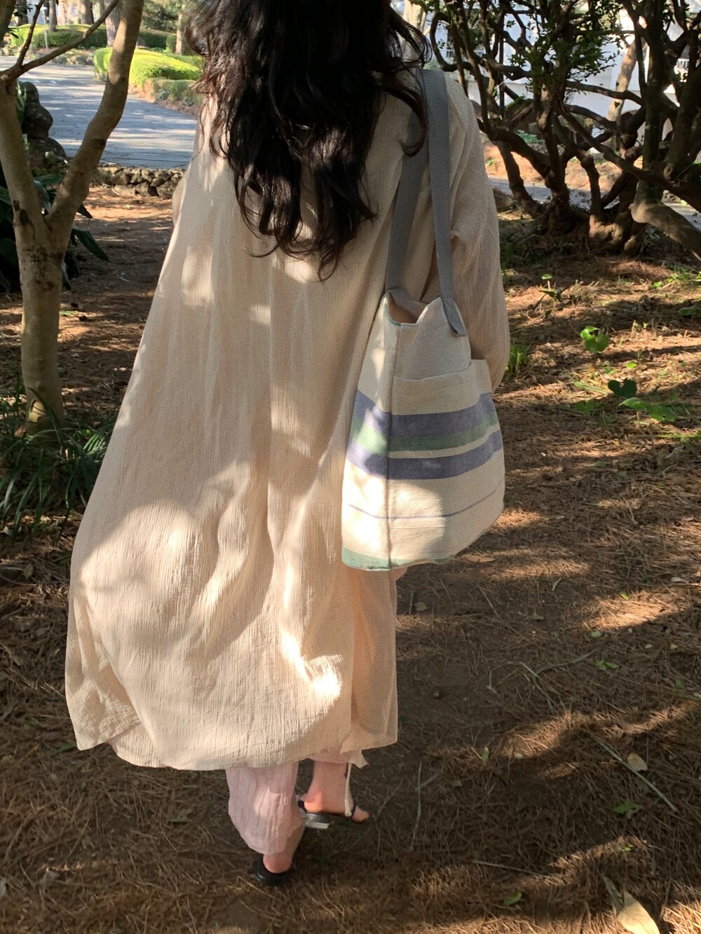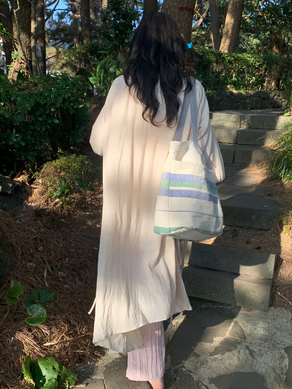편안하면서도 멋스럽고, 여성스러운 느낌의 여름 아우터로 추천합니다.