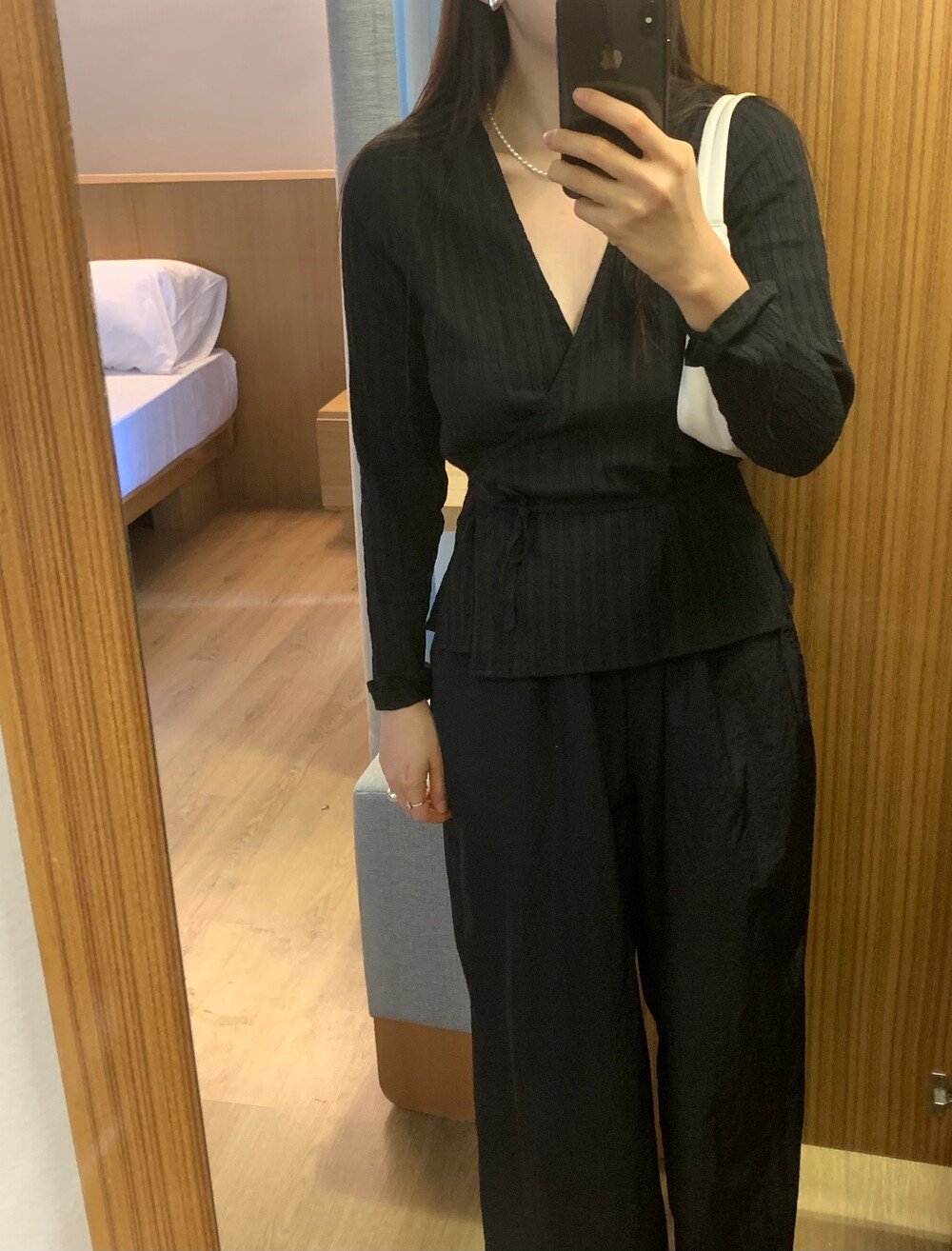 롱슬리브의 랩 블라우스입니다