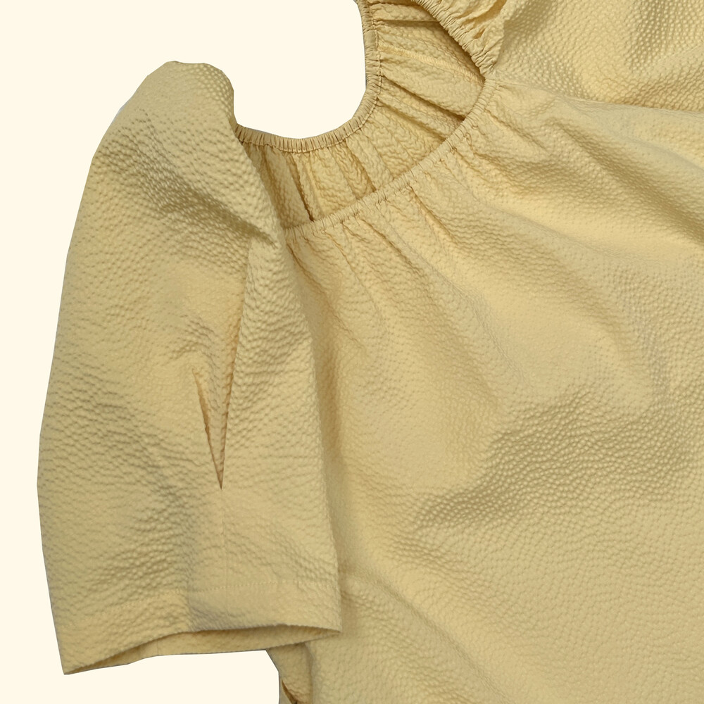 원단은 탄탄하고 드라이한 촉감의 시어서커 코튼 소재로