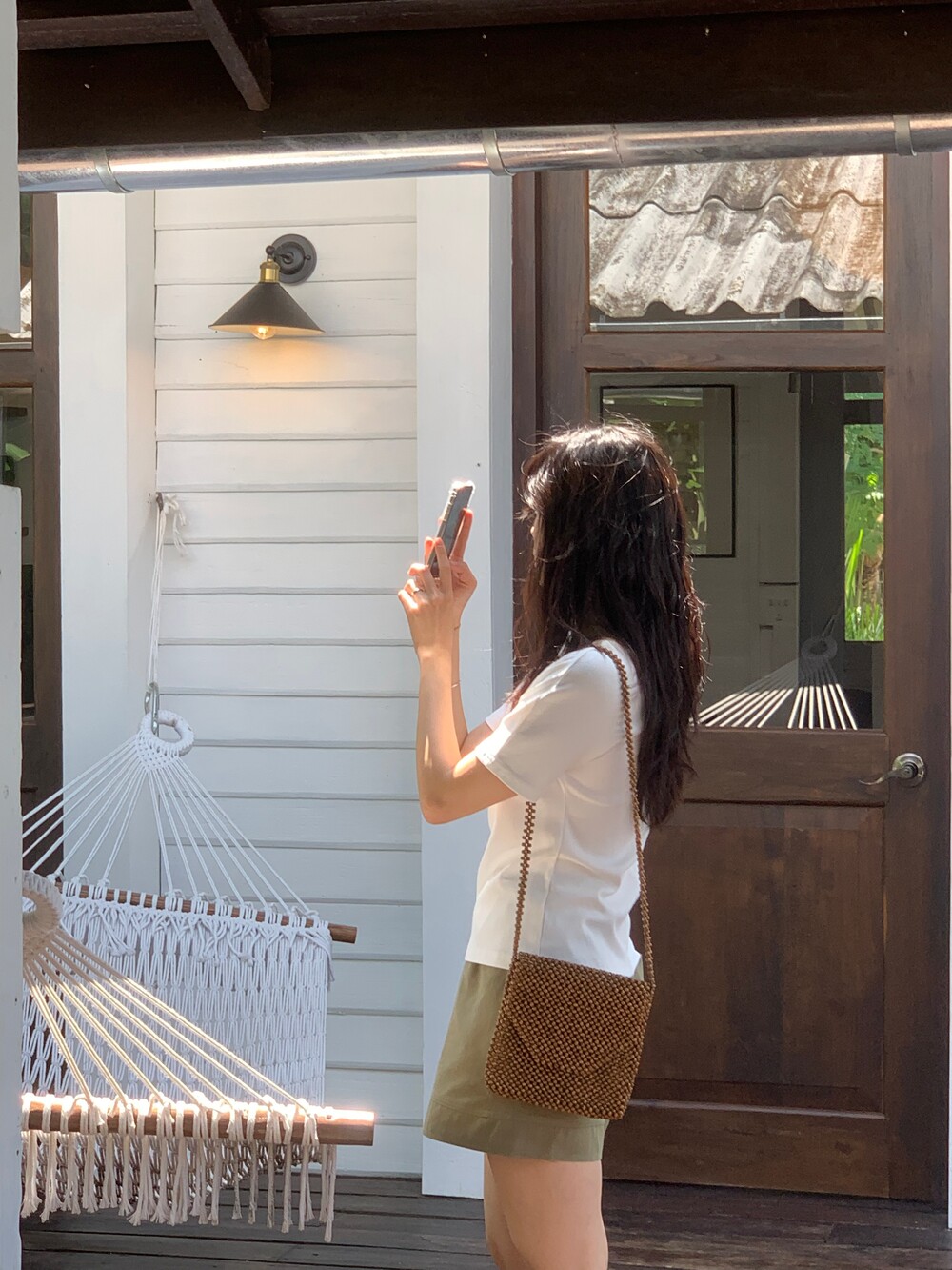 사선으로 결이 있는 트윌 코튼으로 탄탄하게 형태를 잡아줍니다