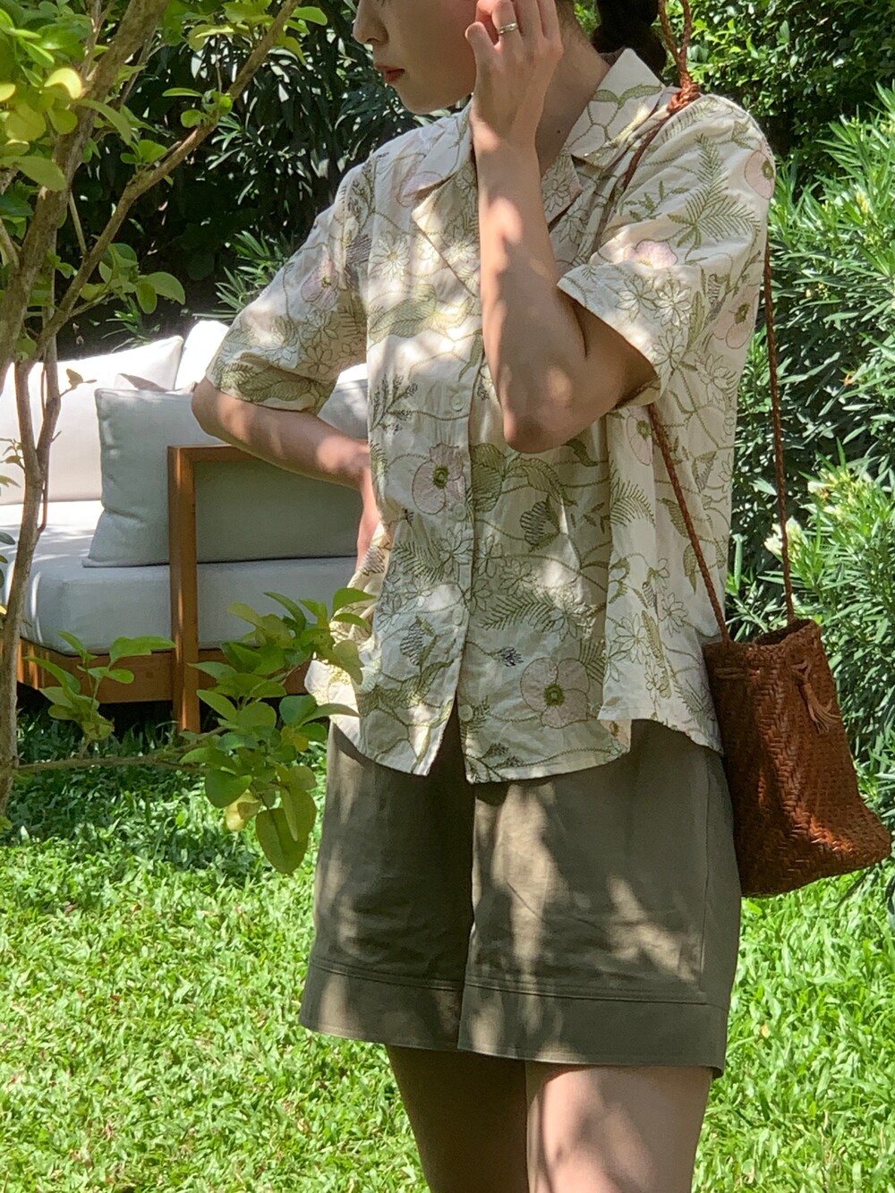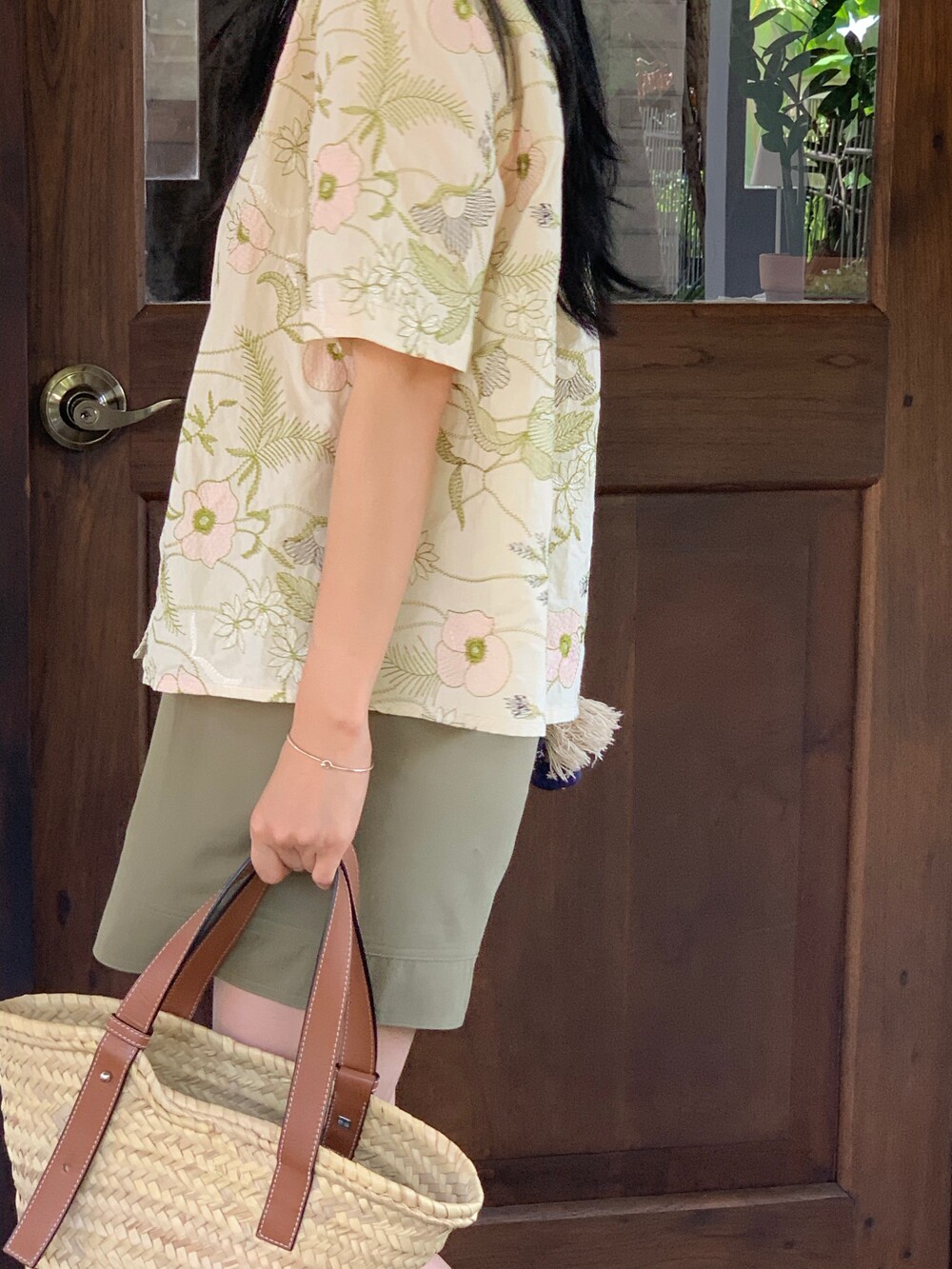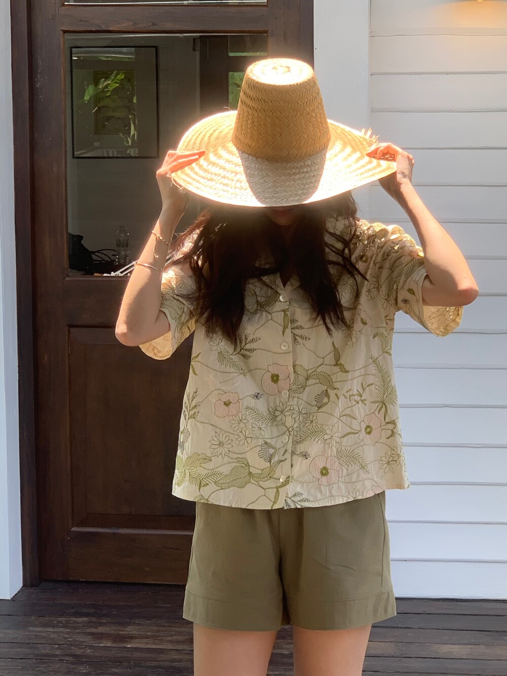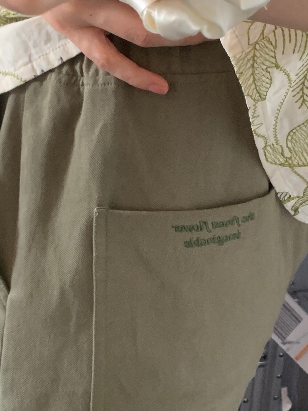 카키 팬츠는 은은한 톤온톤의 카키 컬러 자수 입니다