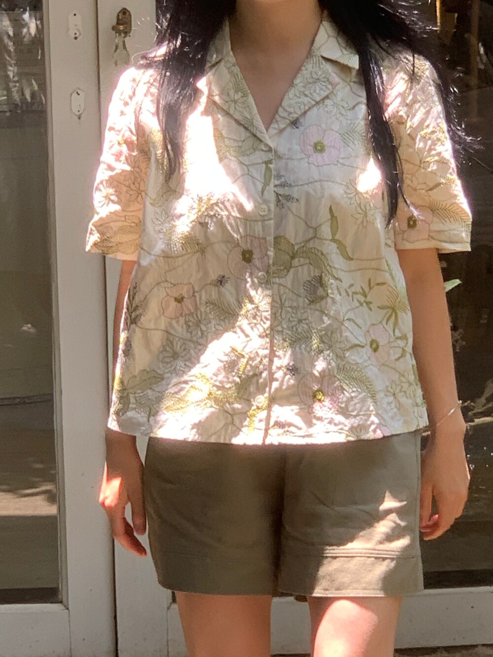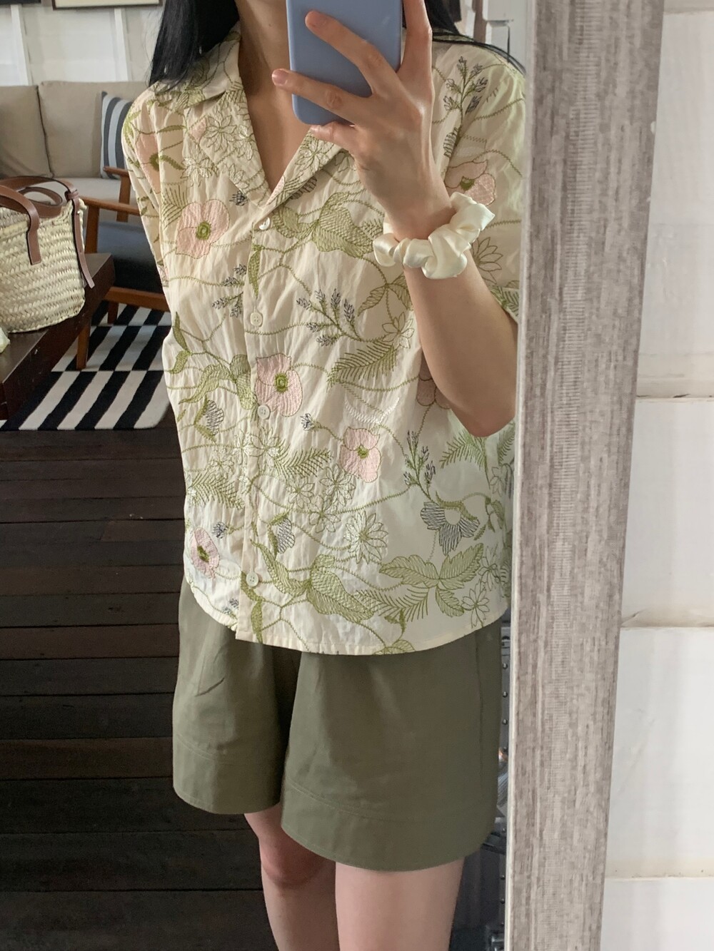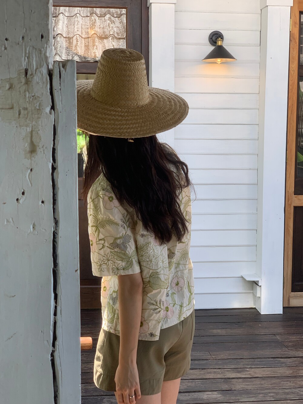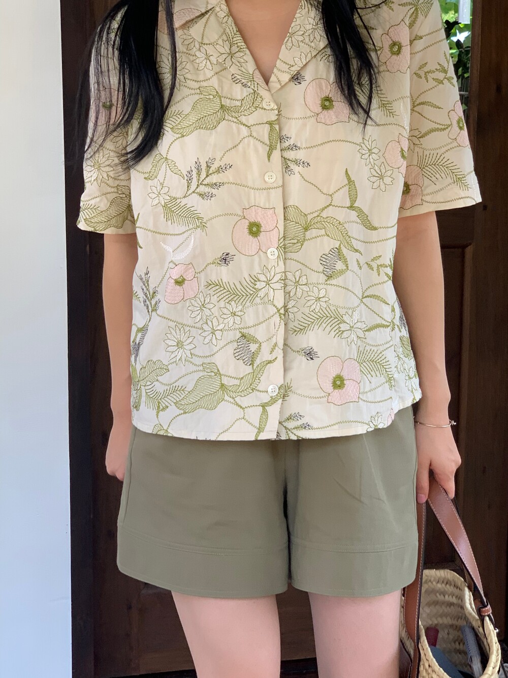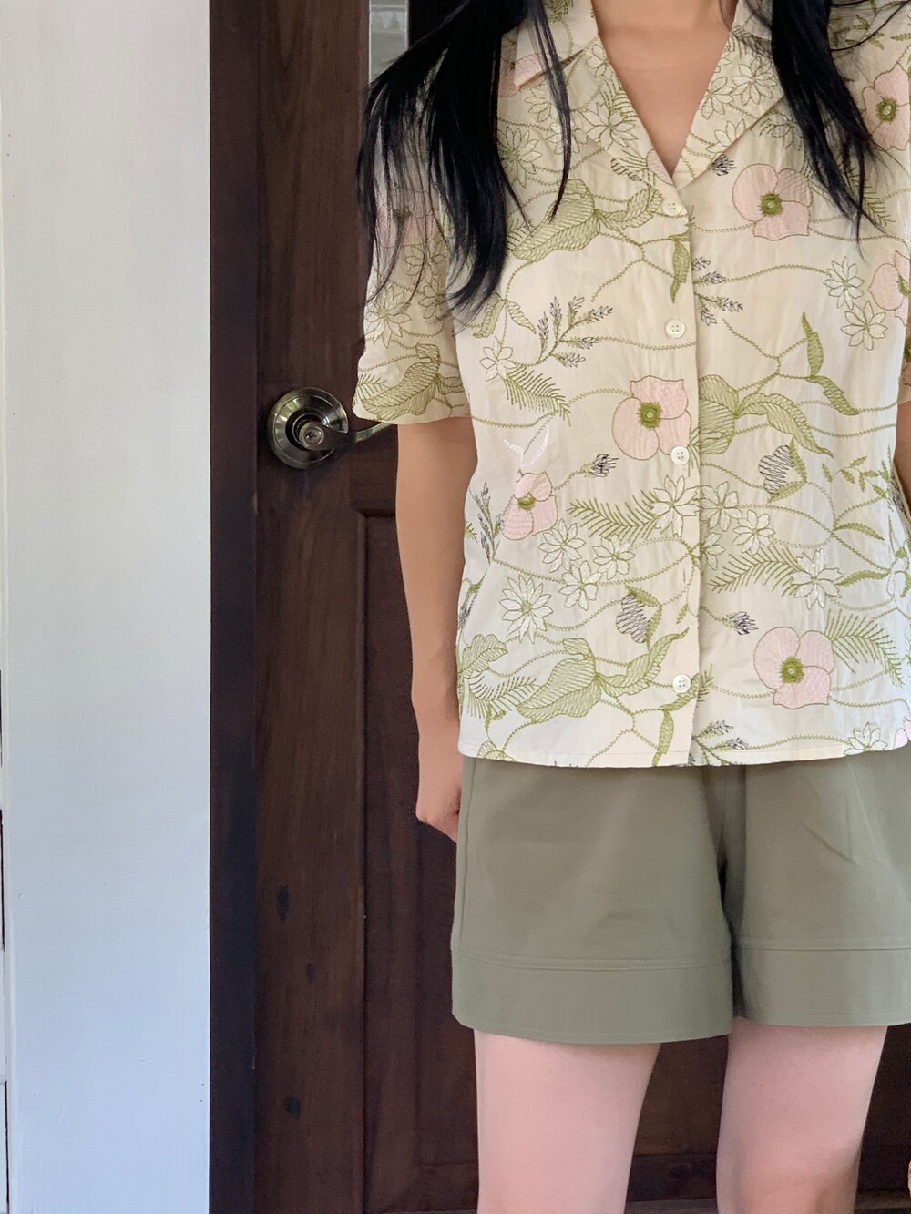 카키 팬츠는 은은한 톤온톤의 카키 컬러 자수 입니다