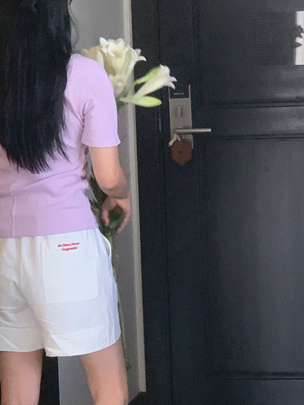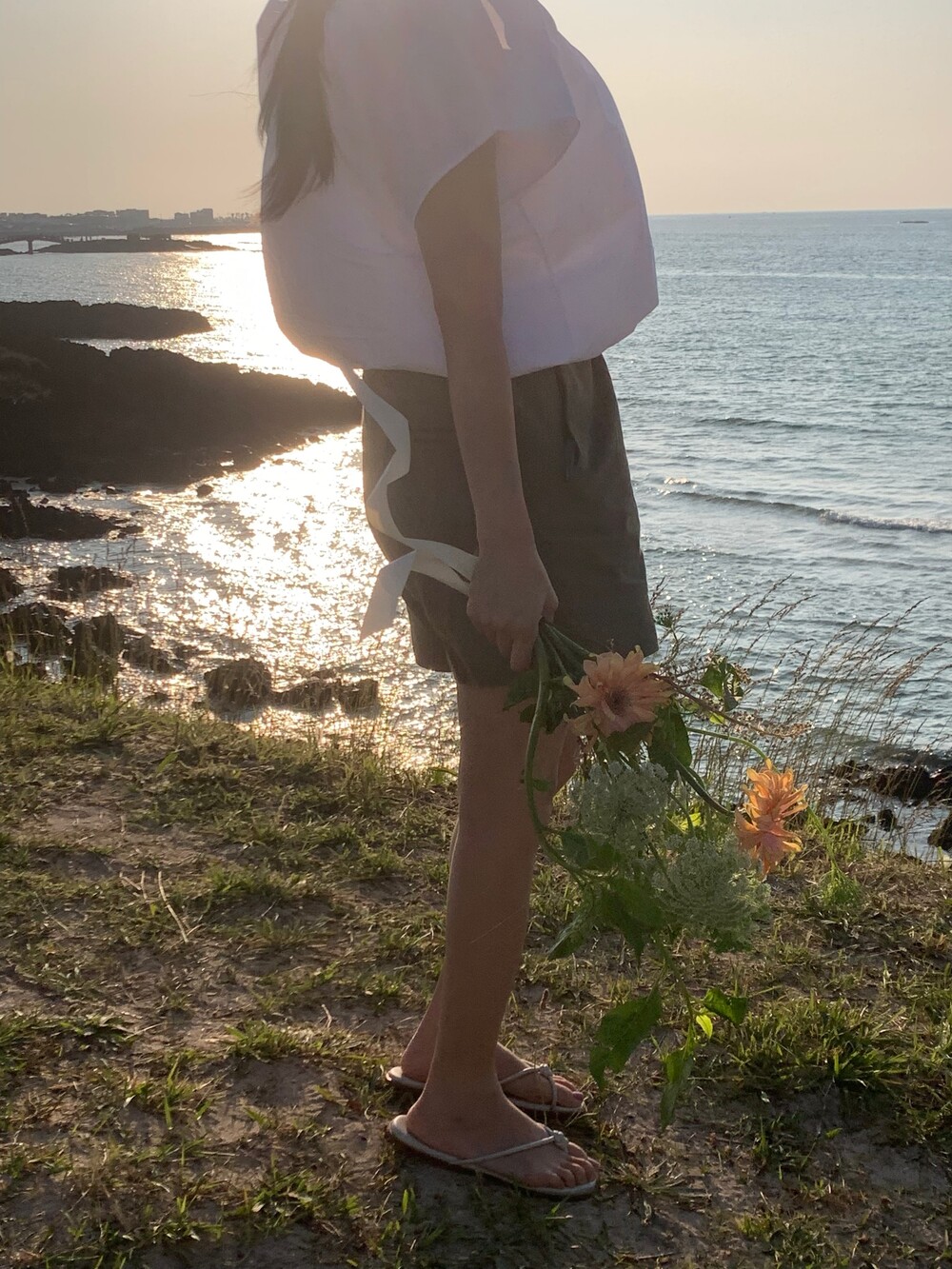 뒷포켓에 그꽃의 시그니처 자수로 포인트를 주었어요
