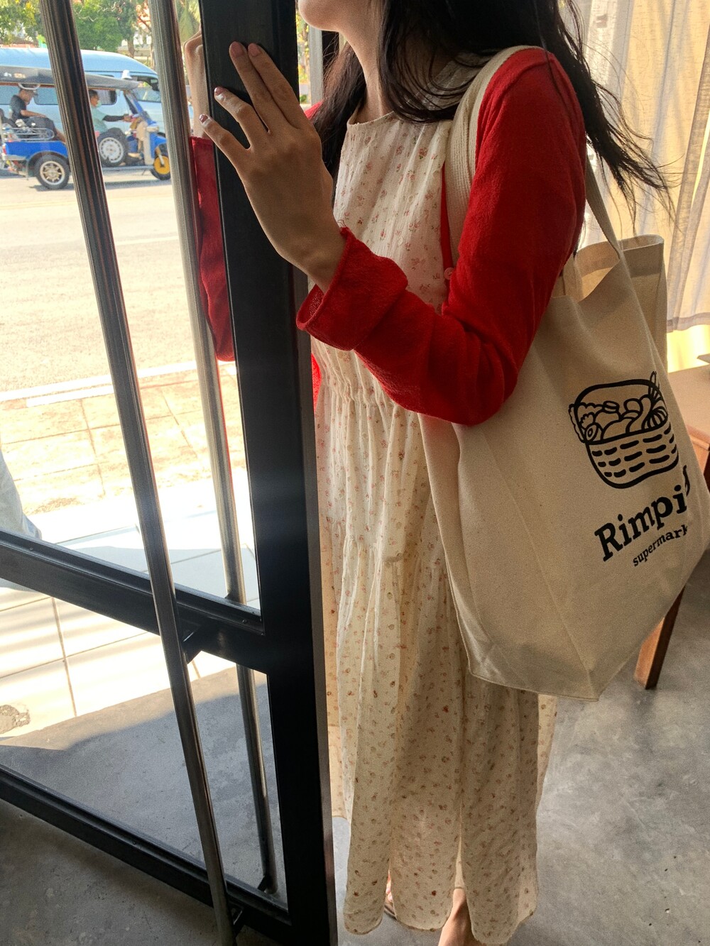 네크라인, 밑단과 소매끝은 돌돌 말리는 느낌으로 귀여우면서도 자연스러운 무드를 더해주었습니다