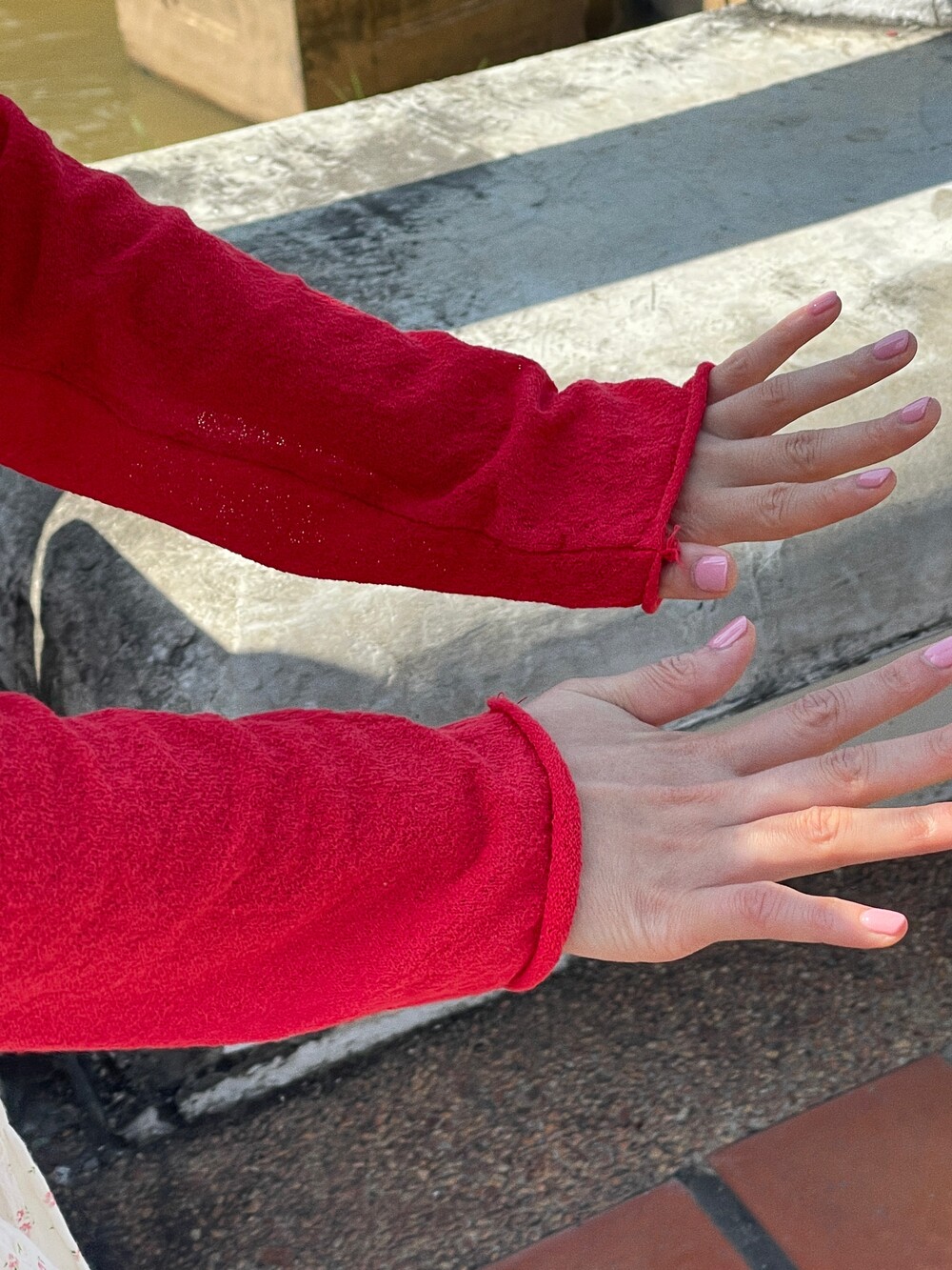 여름에도 뜨거운 햇빛이나 차가운 에어컨 바람을 막아줄 수 있도록 긴소매로 만들었어요