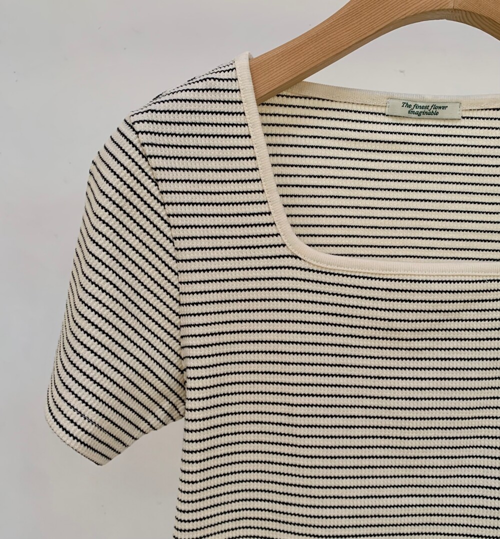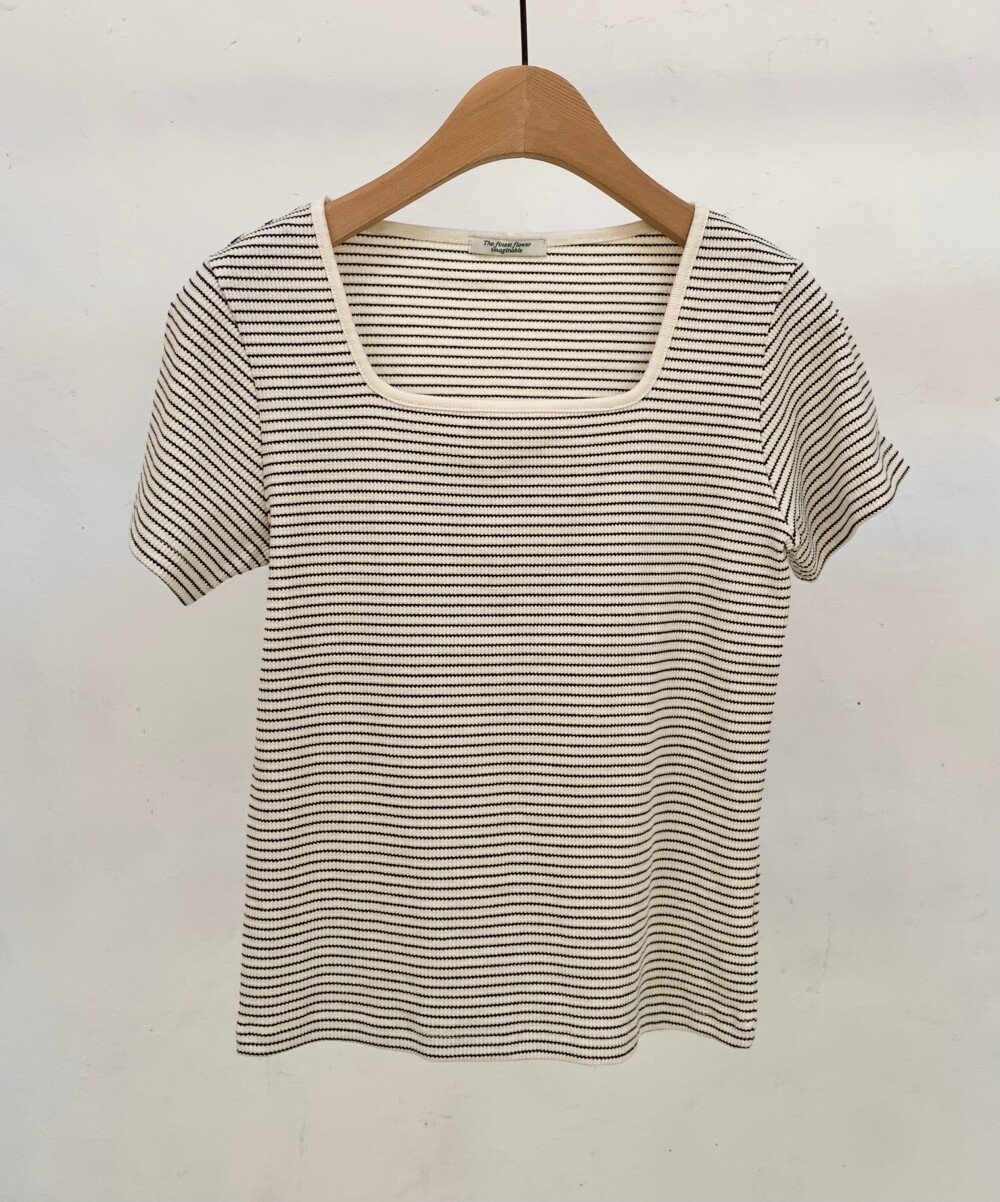편안하면서도 세련된 무드의 스퀘어넥 티셔츠입니다