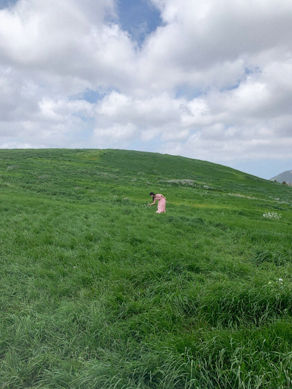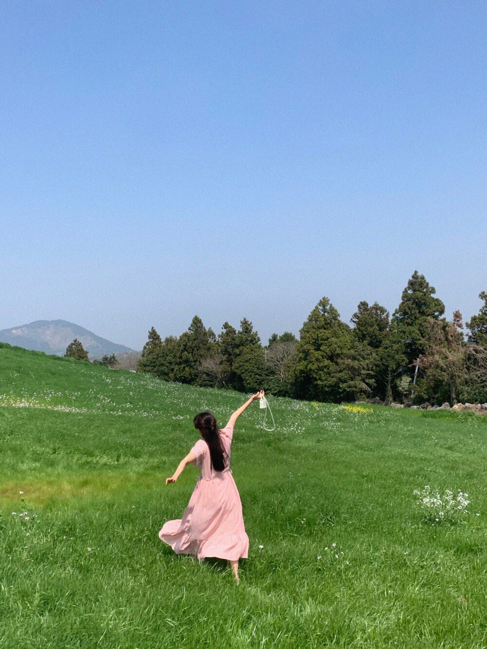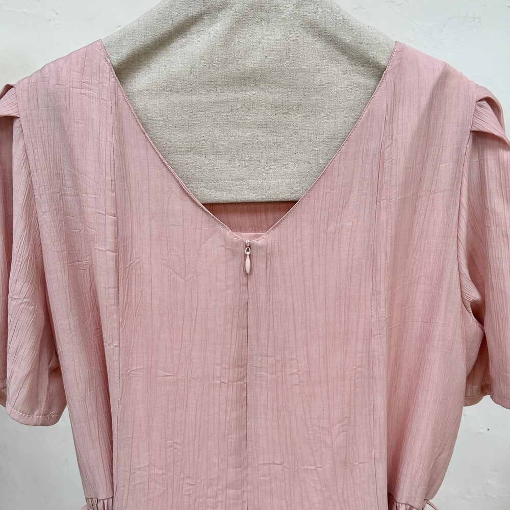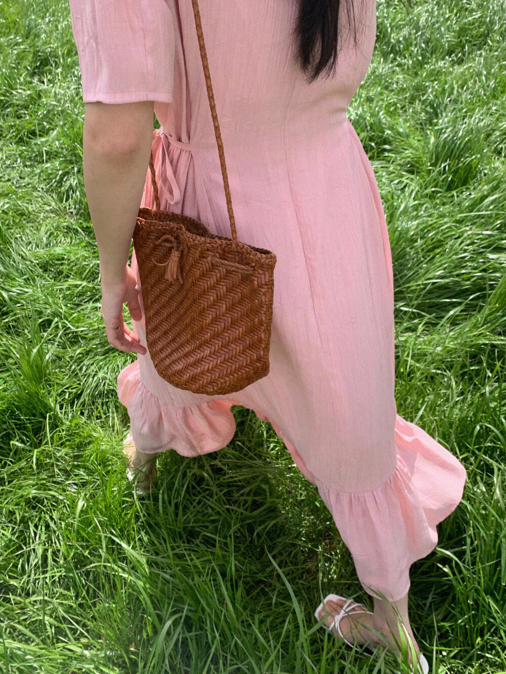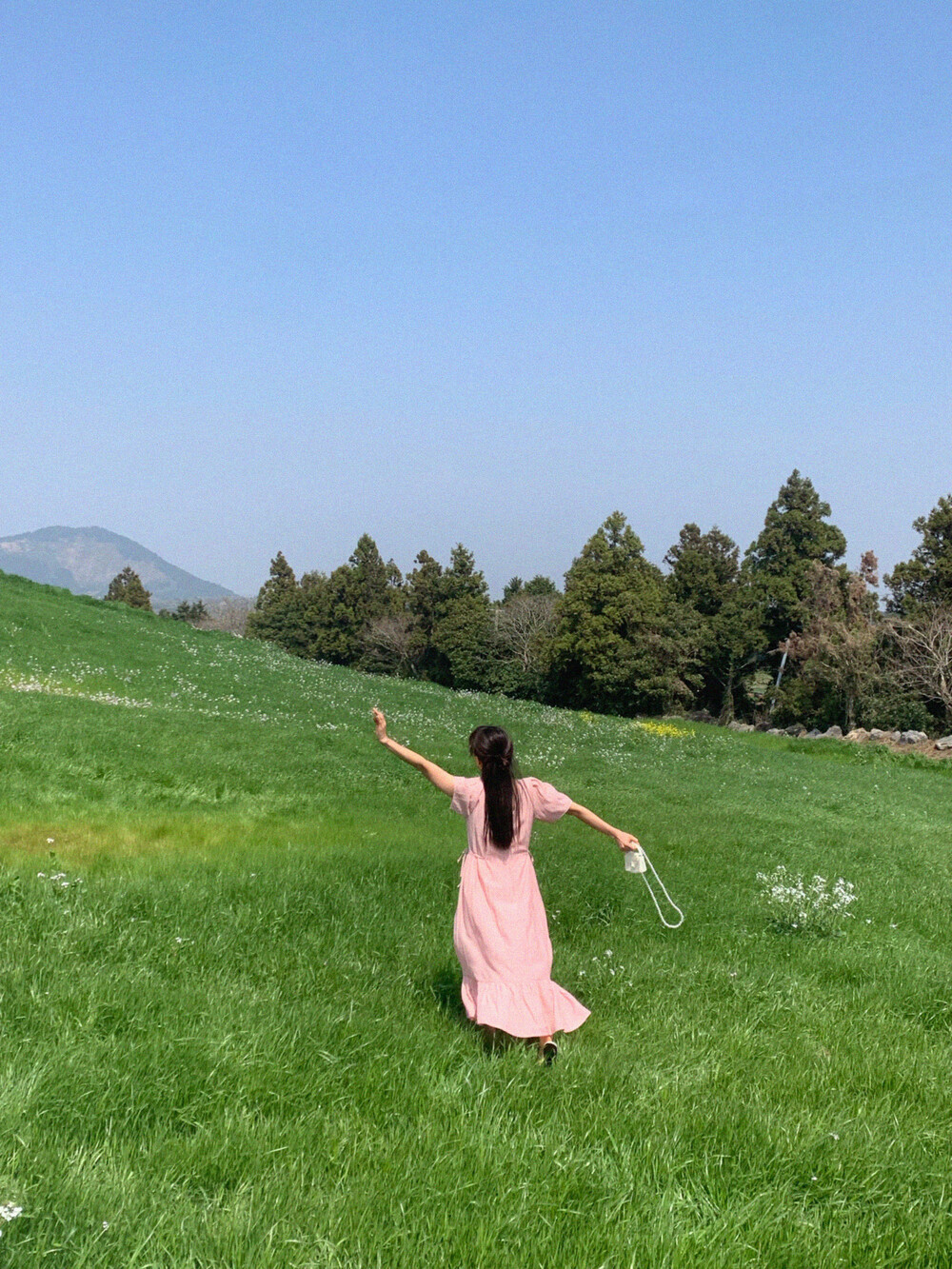 스퀘어 네크라인과 퍼프소매, 아랫단의 프릴이 옷의 무드를 사랑스럽게 만들어주었어요.