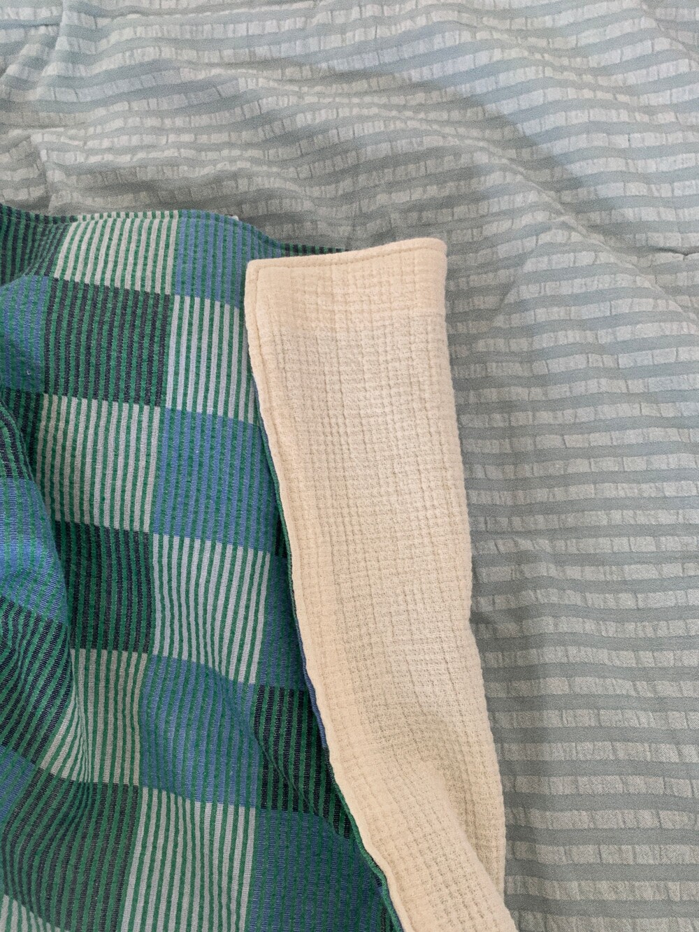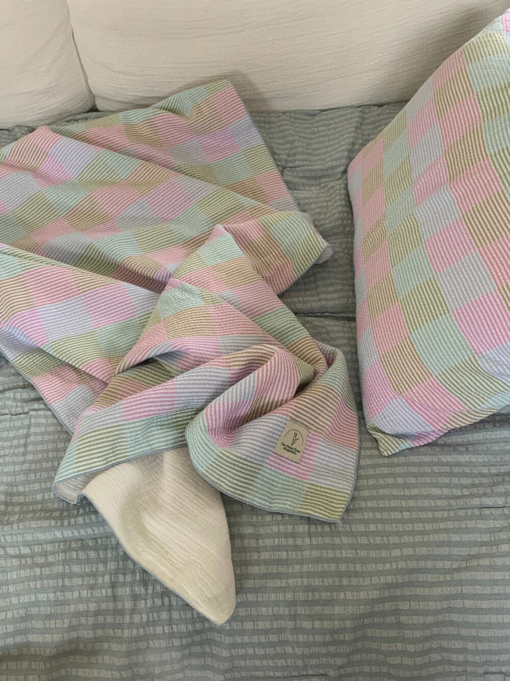 반대면은 빈티지무드가 낭낭한 체크패턴의 시어서커 소재여요.