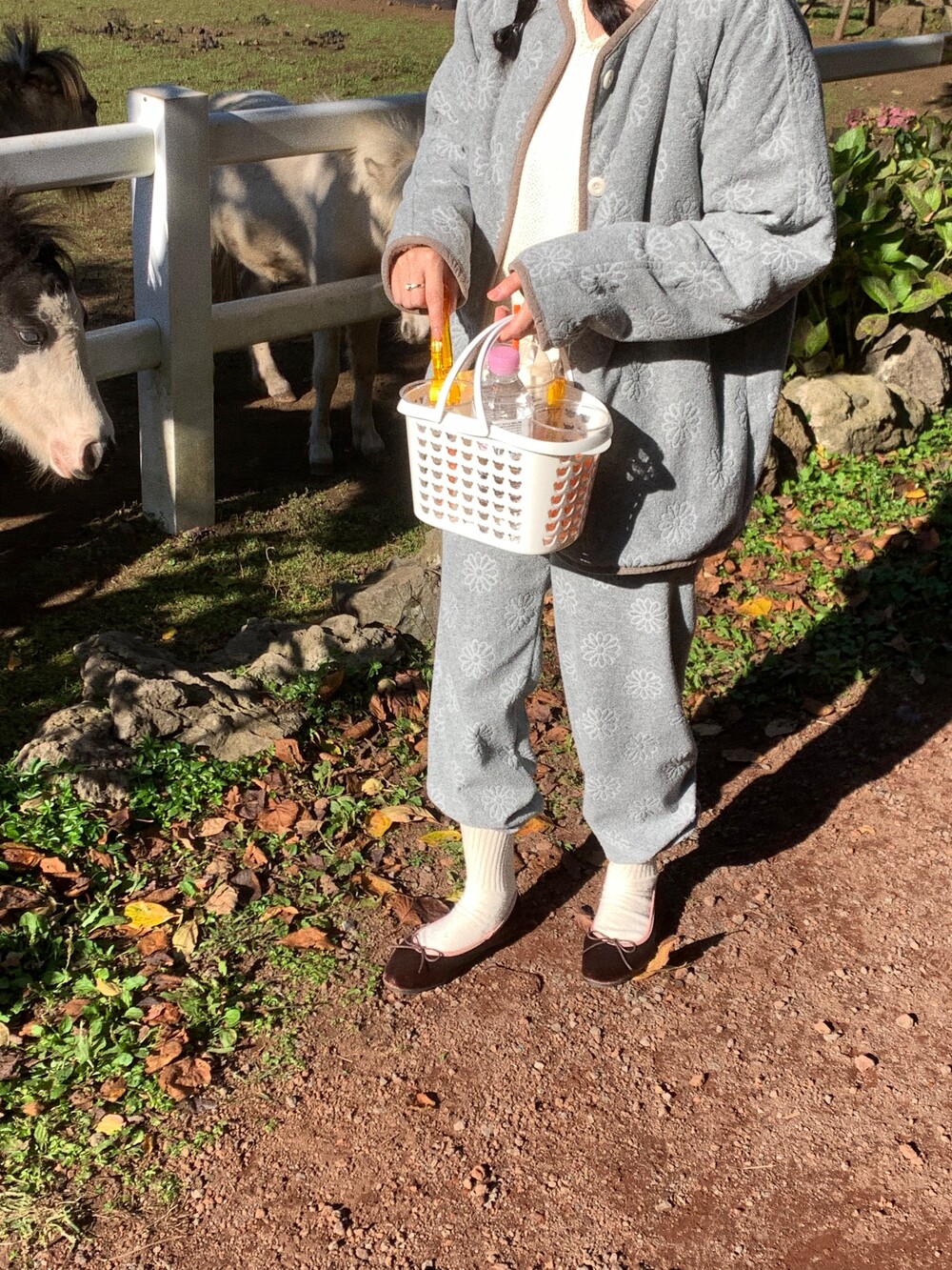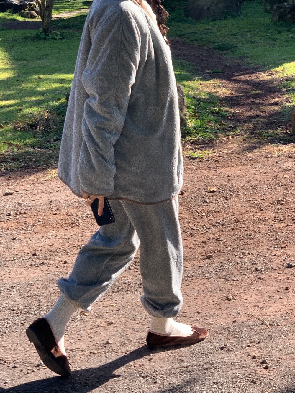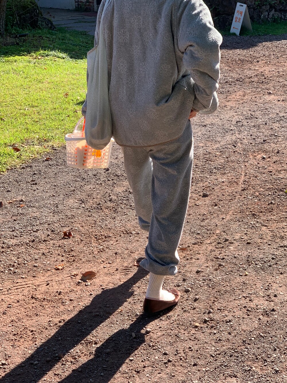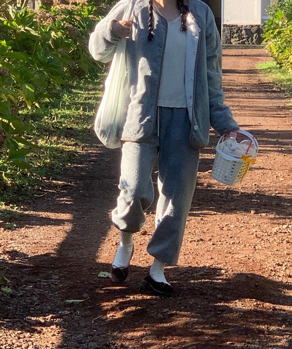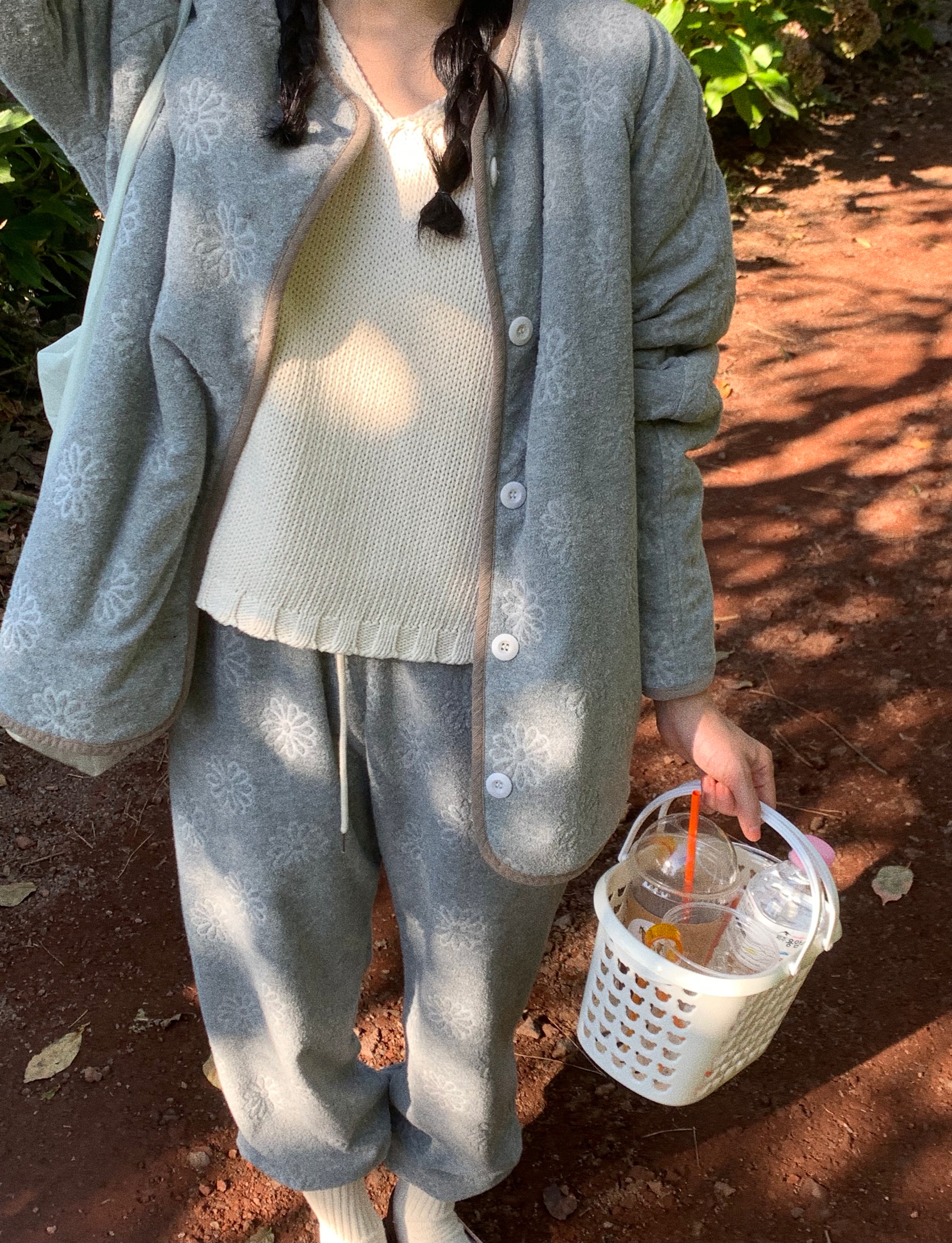 미드톤의 그레이 컬러에 사랑스러운 플라워 패턴이 가득한 원단으로 집업과 조거팬츠 정말 많이 사랑해주셨는데요!