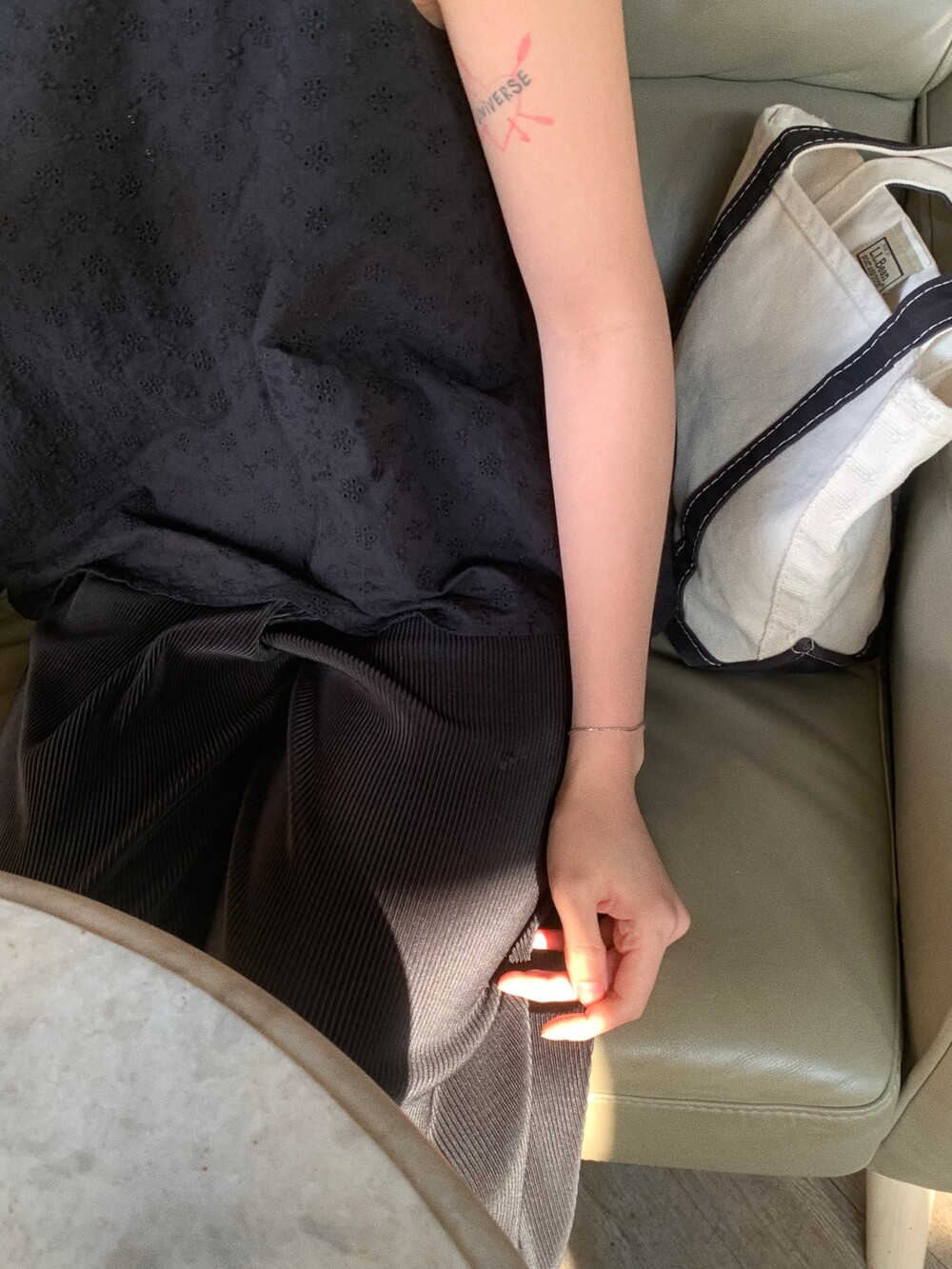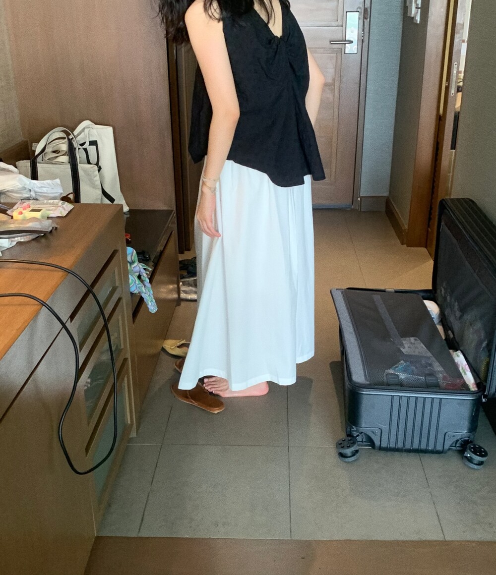 앞부분이 짧고 뒷부분이 긴 디자인으로 앞쪽은 크롭한 길이라 다리가 길어보여요