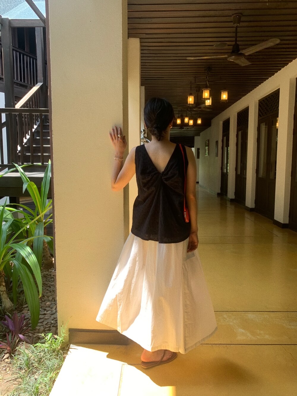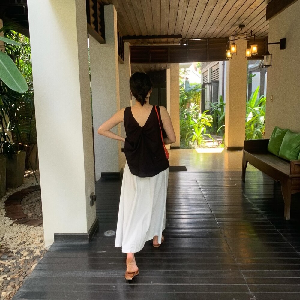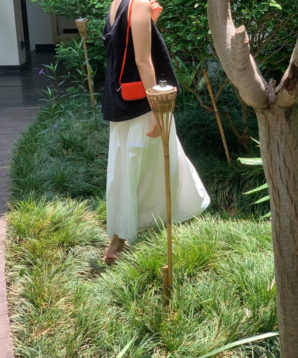 밝은 컬러의 스커트나 팬츠, 데님과도 잘 어울려 센스있는 썸머룩이 완성됩니다