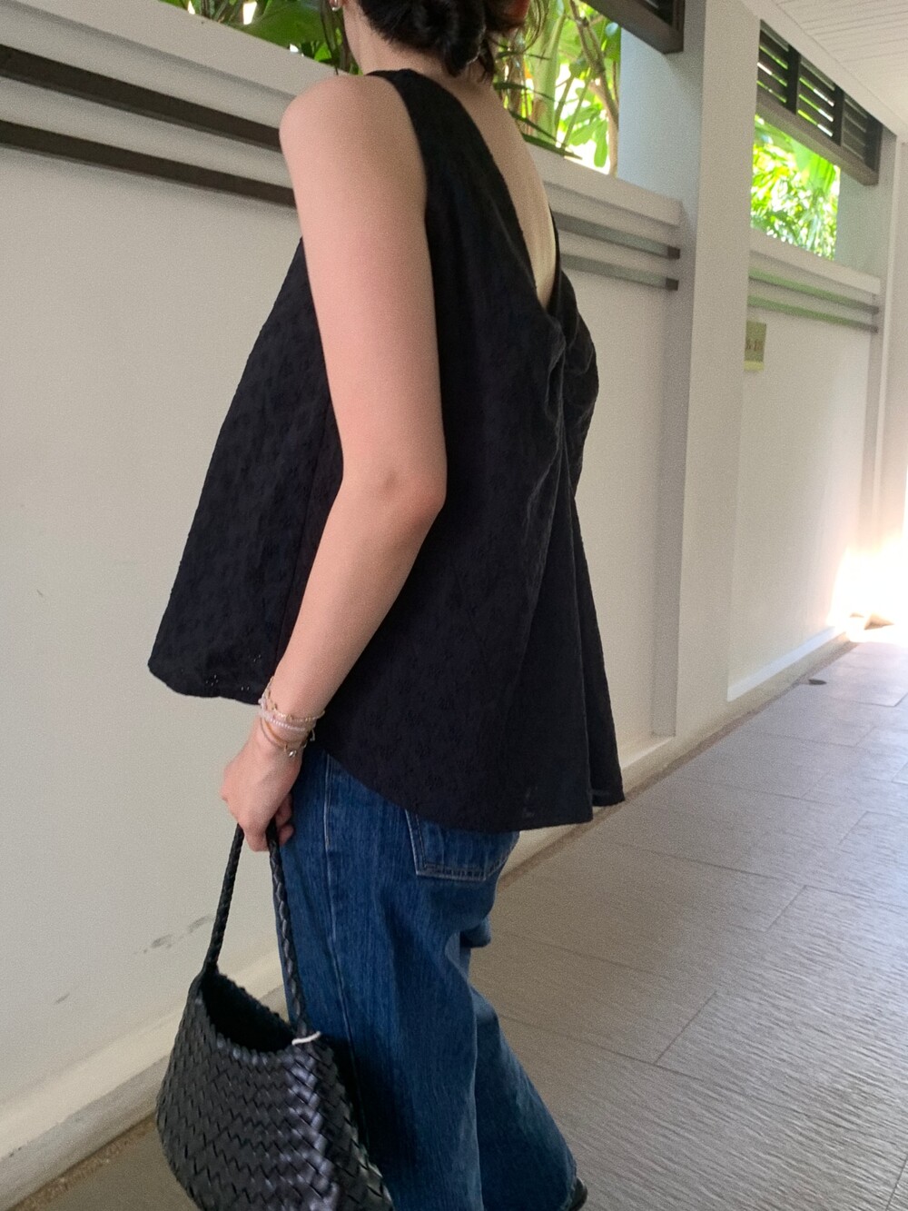 암홀은 너무 깊지도 얕지도 않게, 세심하게 라인을 다듬어 어깨선과 팔이 예뻐보여요