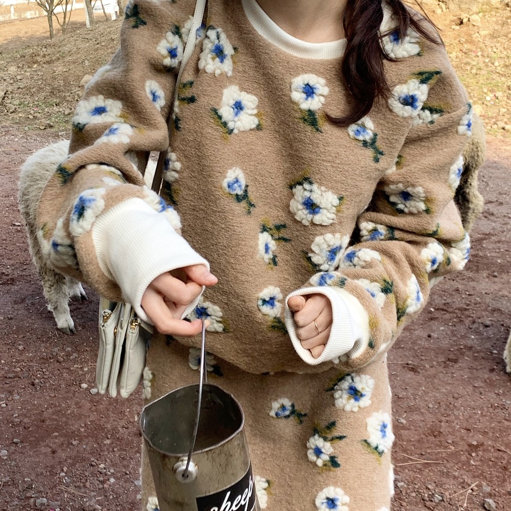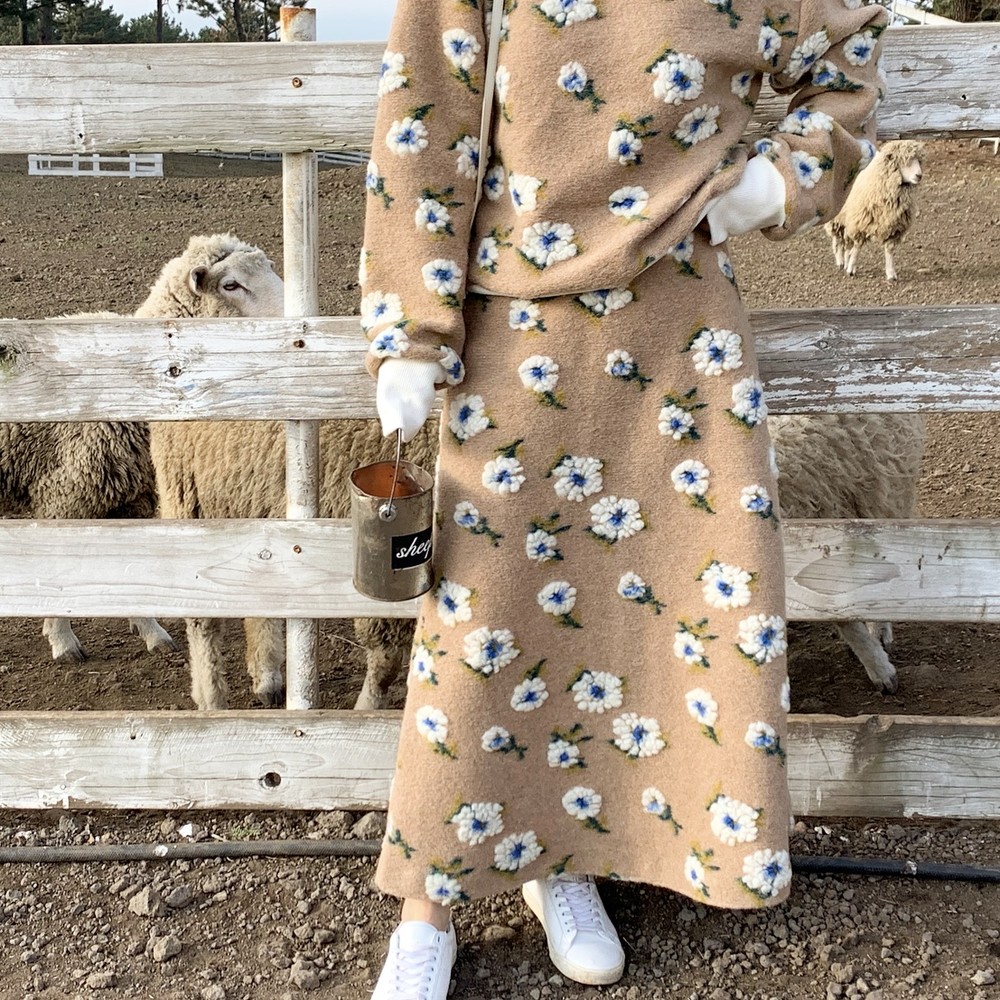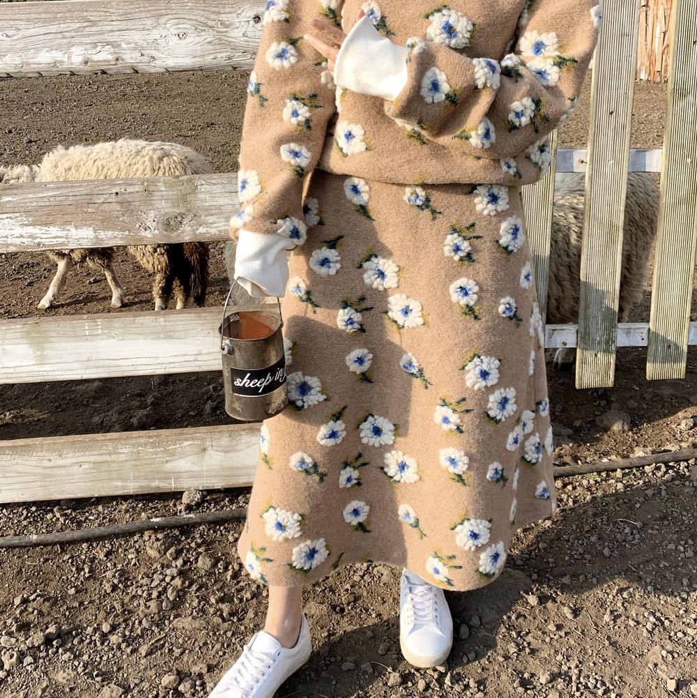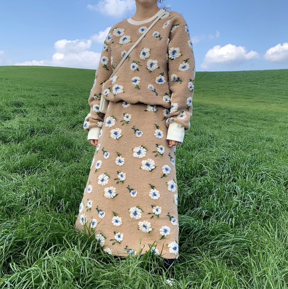 스웻셔츠와 A라인 스커트 셋업으로 구성했구요