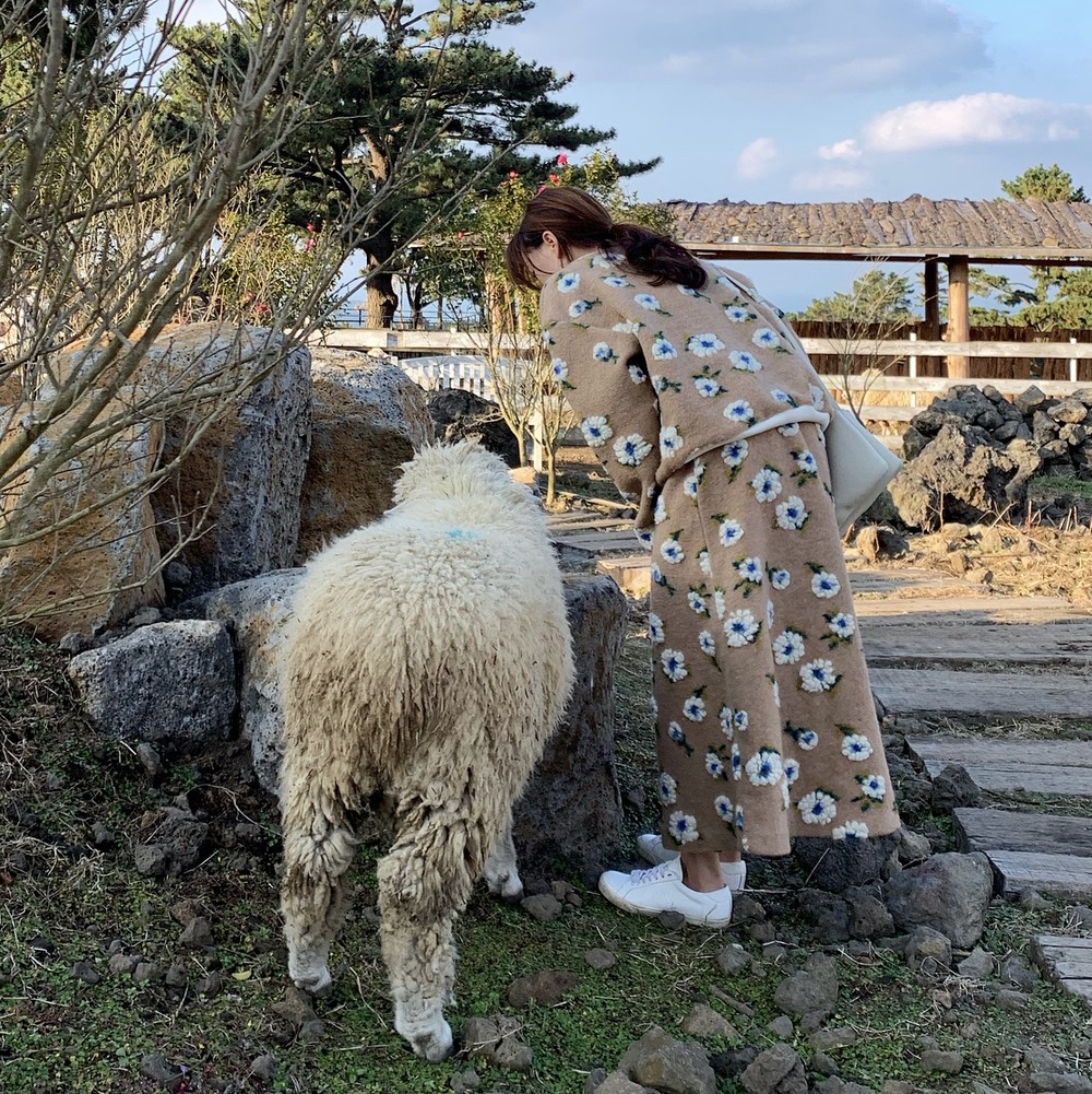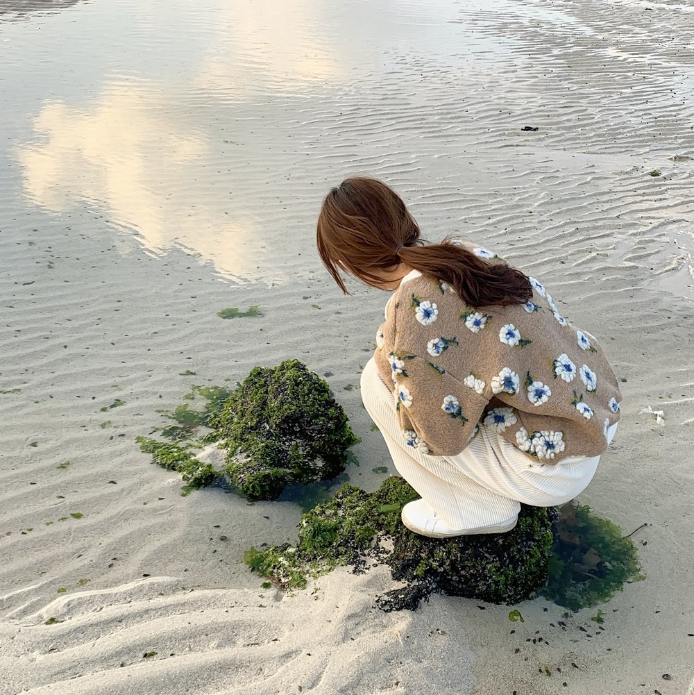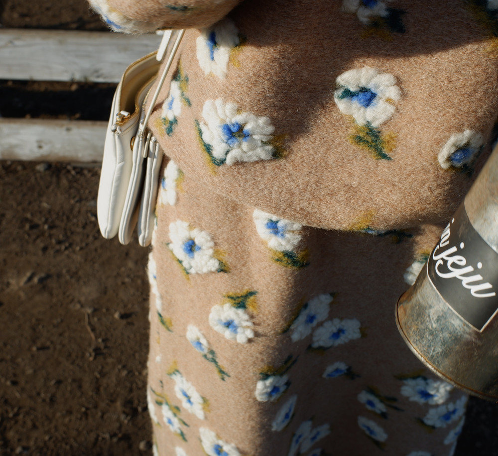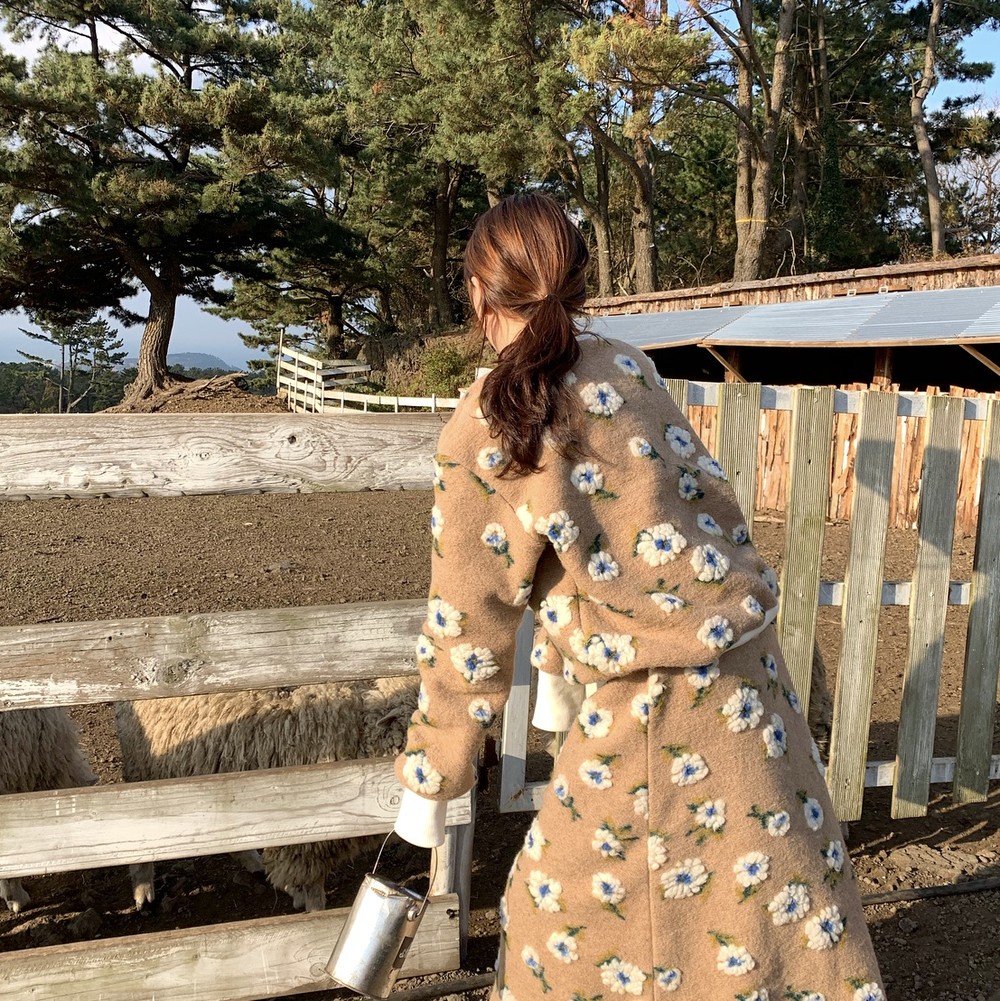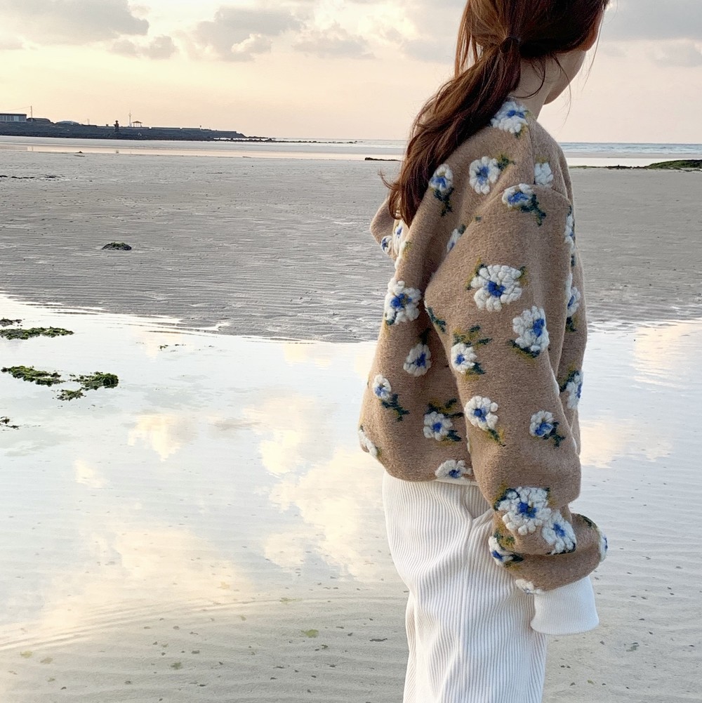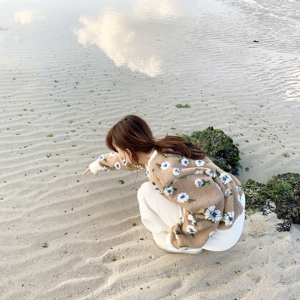 따뜻한 카멜 컬러의 보송한 원단 위에