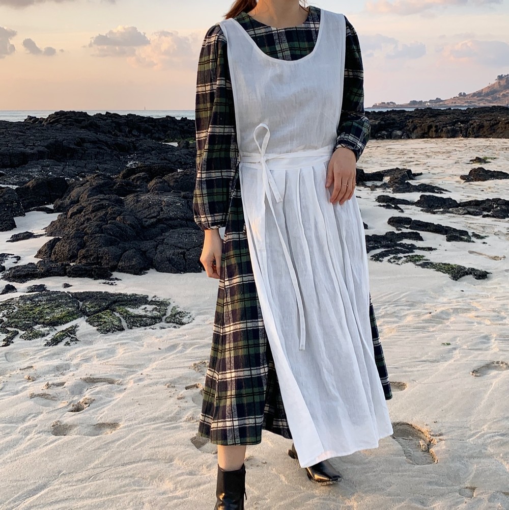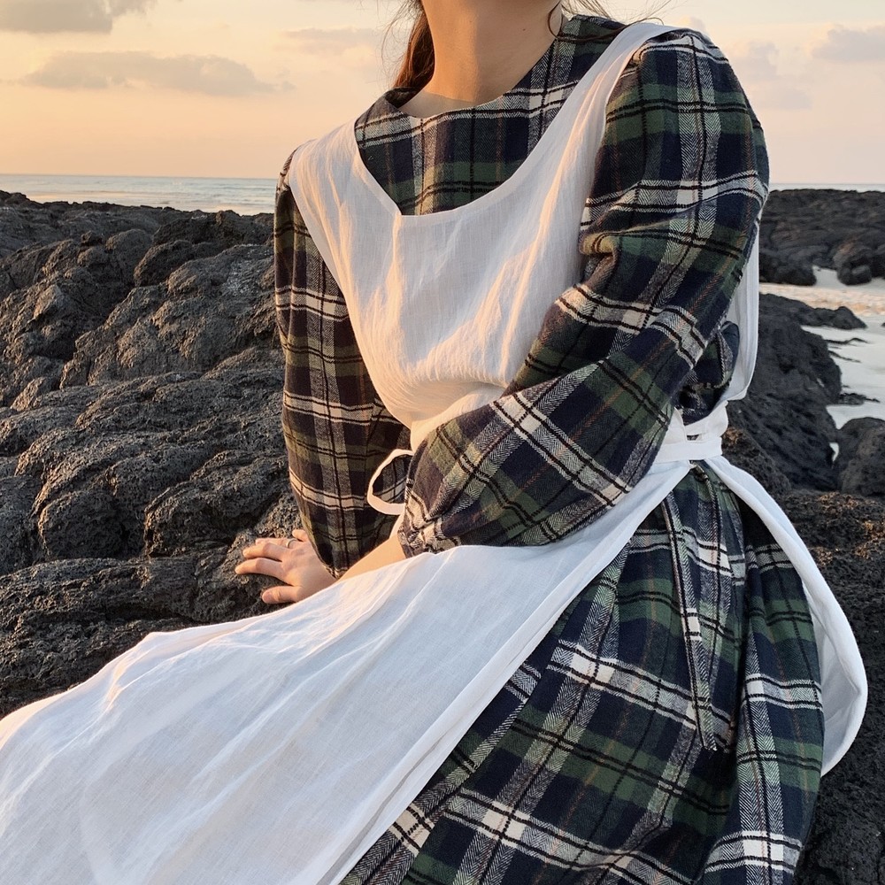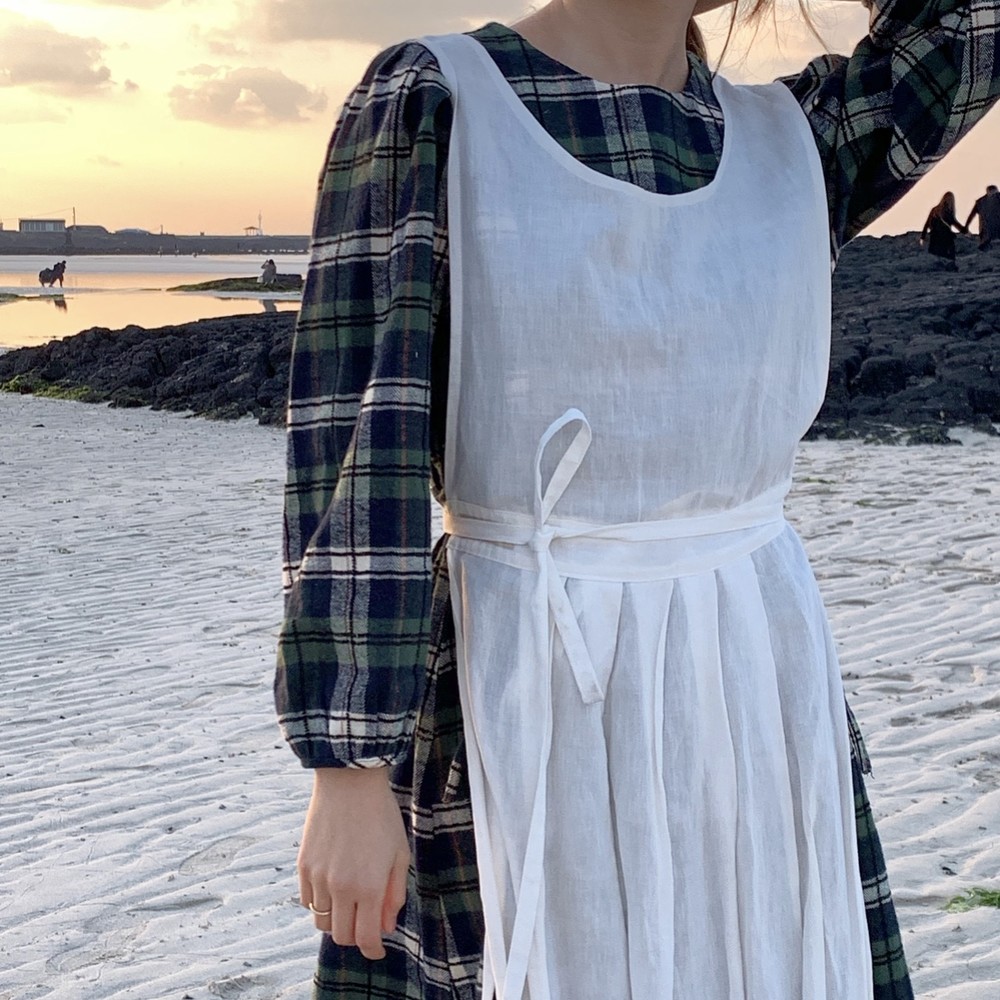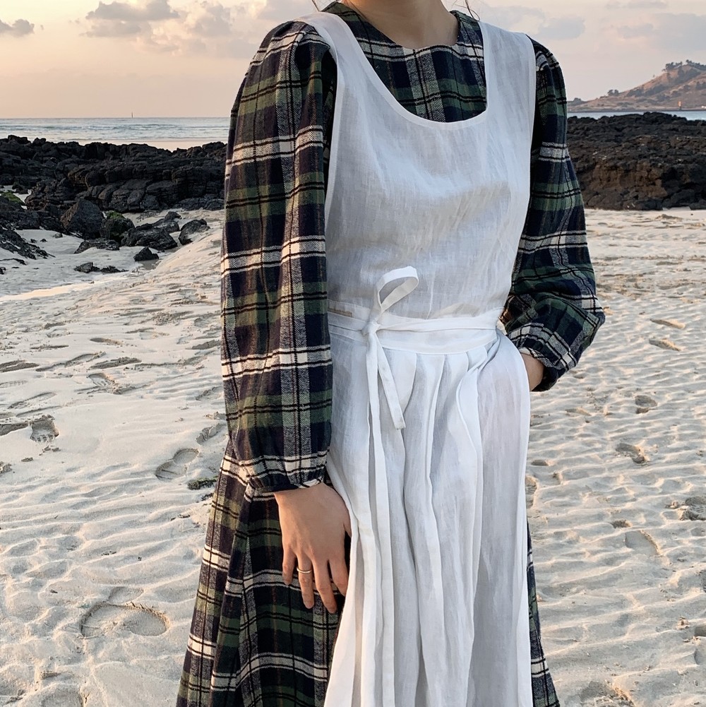 아이보리 에이프런과 함께 착용한 모습입니다.
