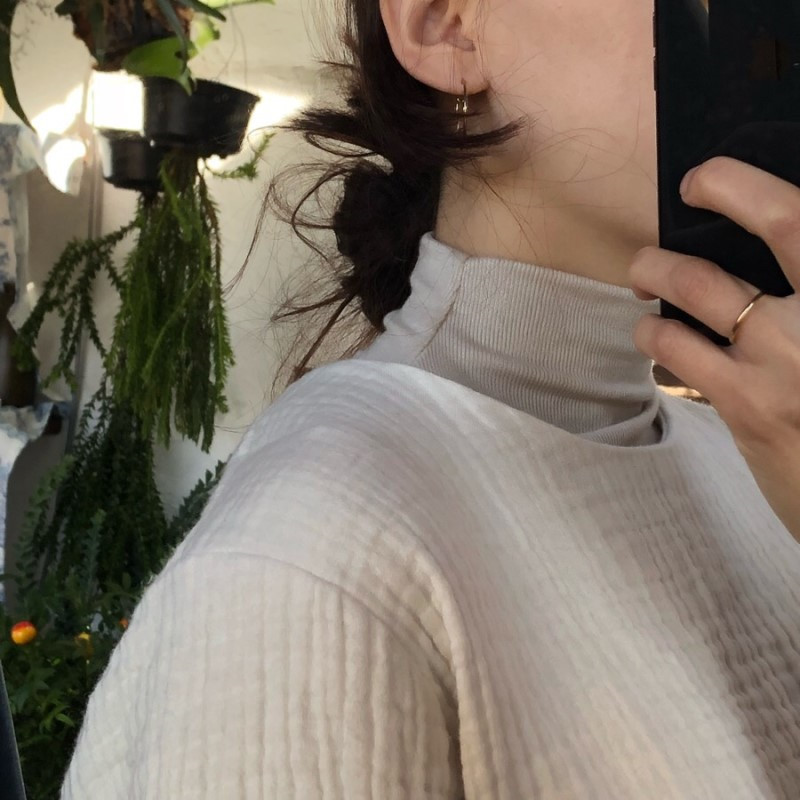 얇은 터틀과 레이어드해도 좋은 네크라인이에요