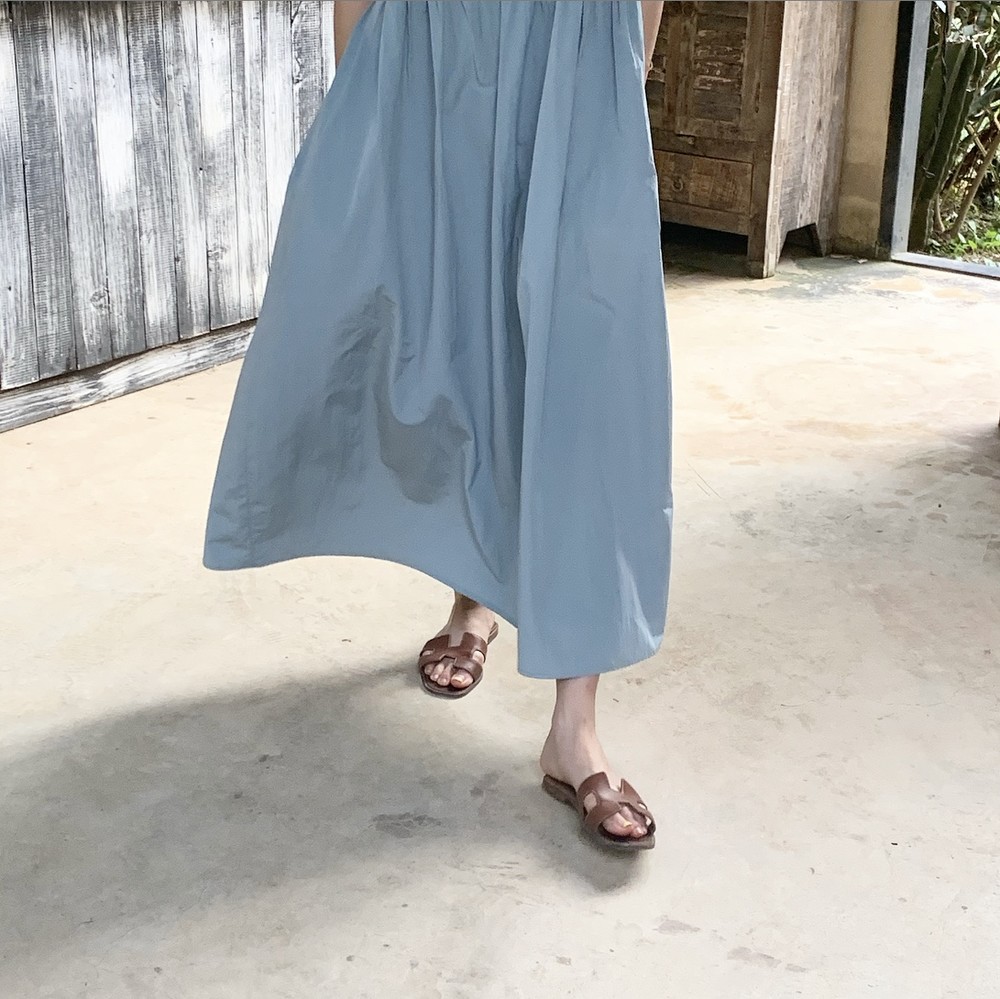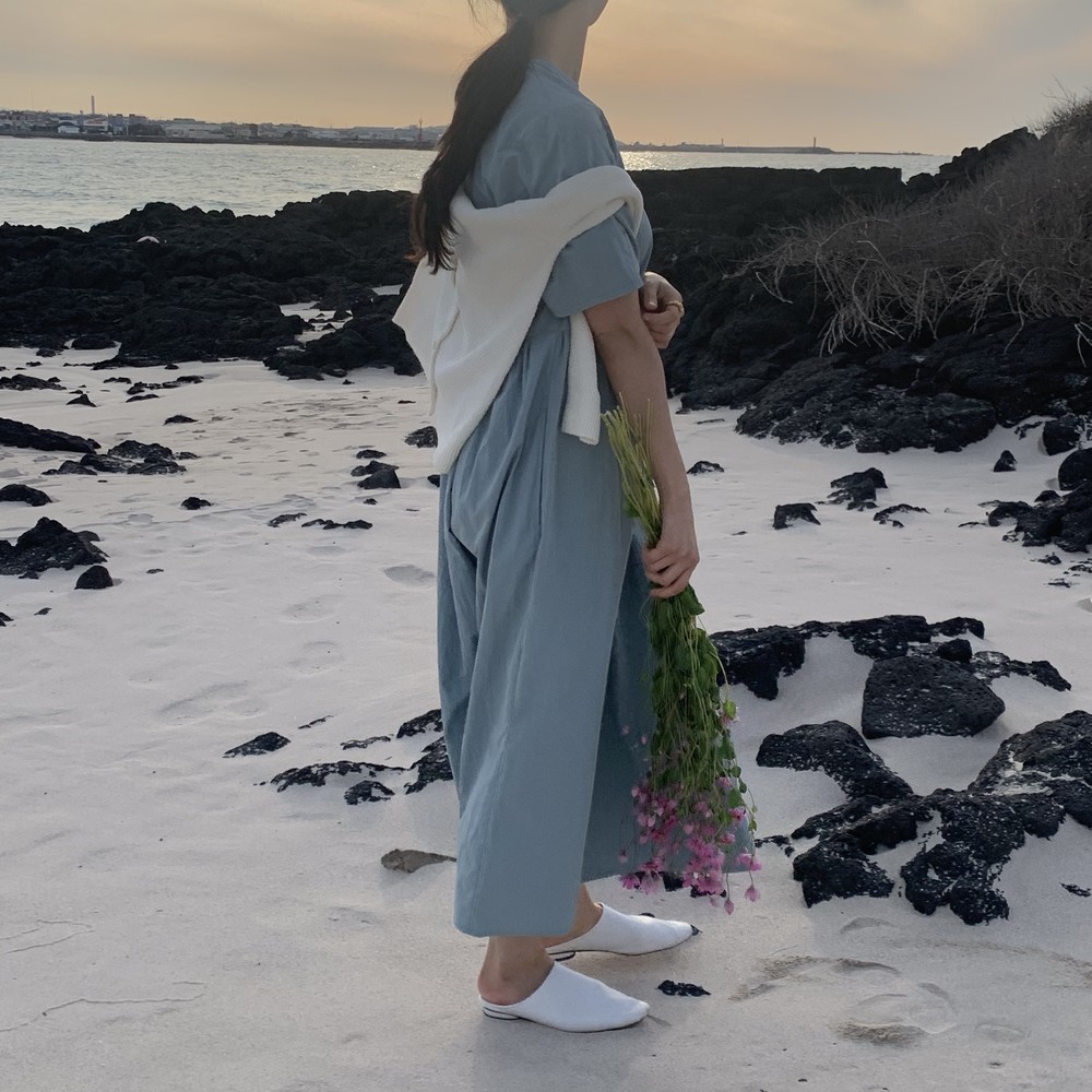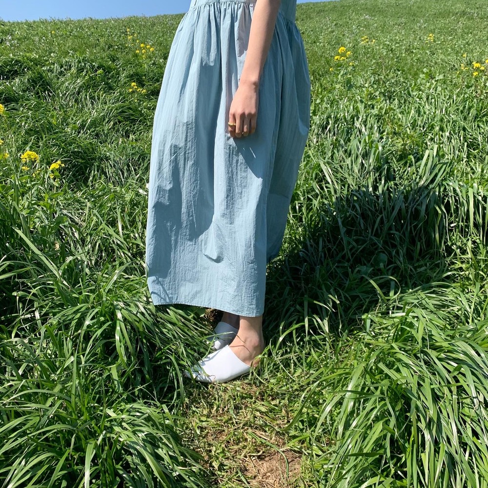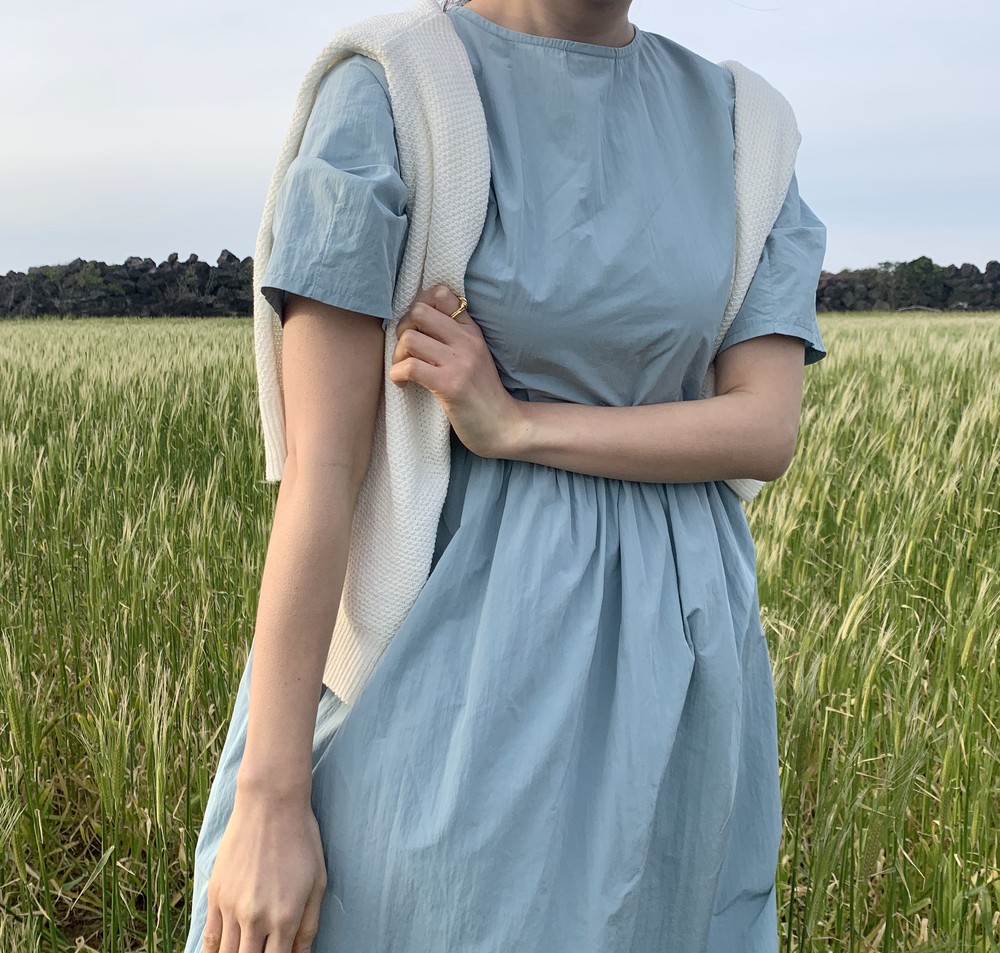 허리 셔링 디테일이 있어 자연스럽게 주름집니다