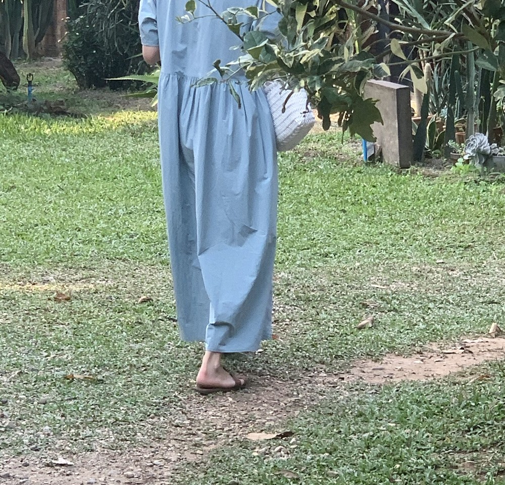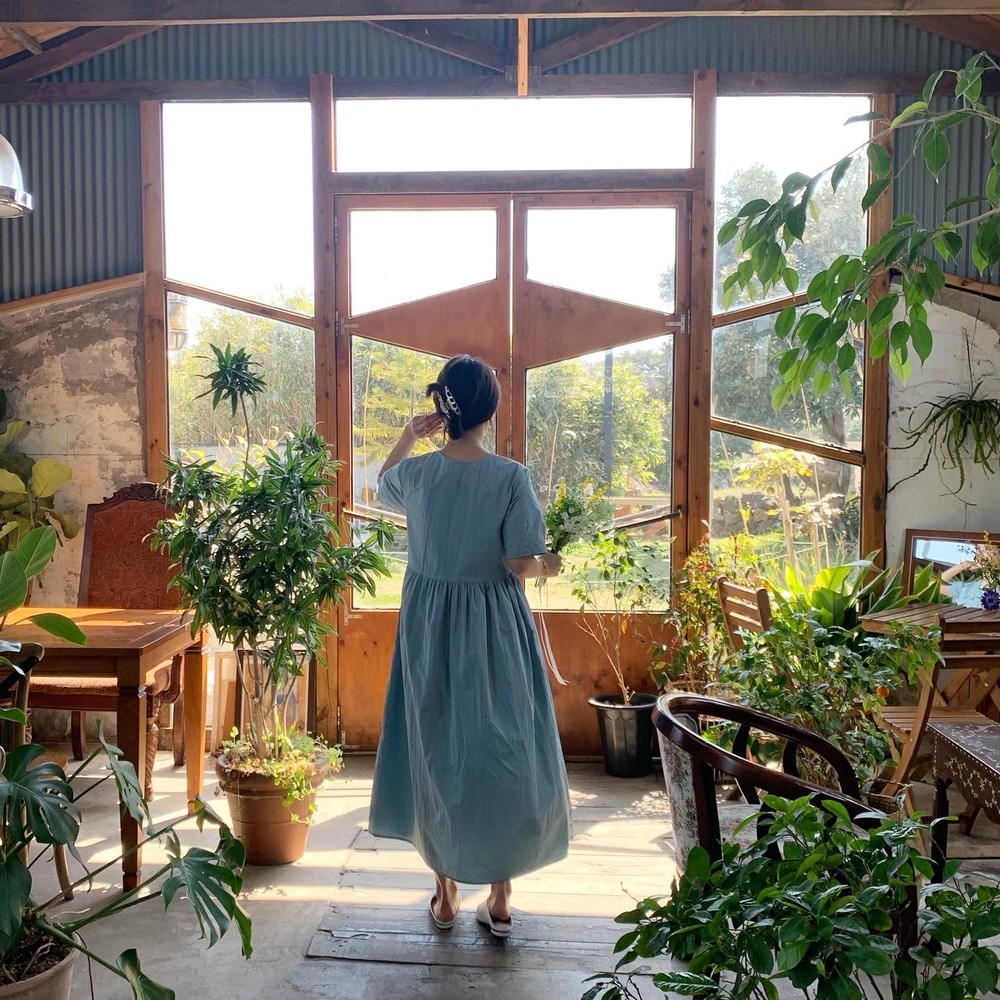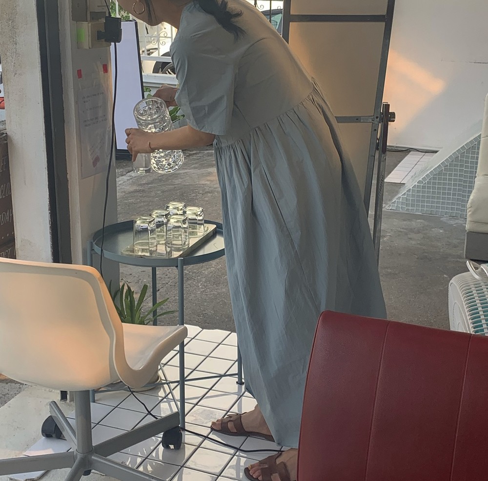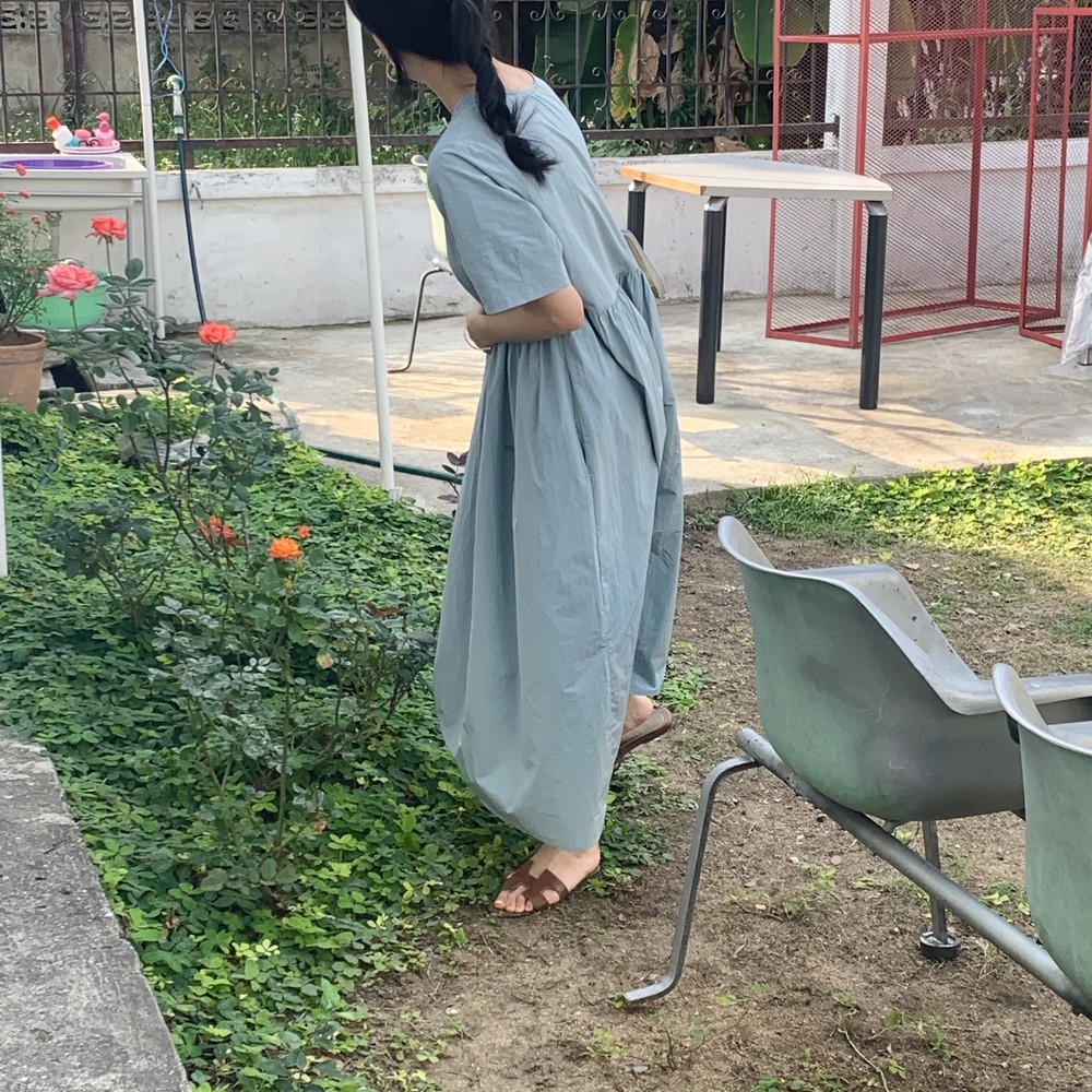 허리 셔링 디테일이 있어 자연스럽게 주름집니다