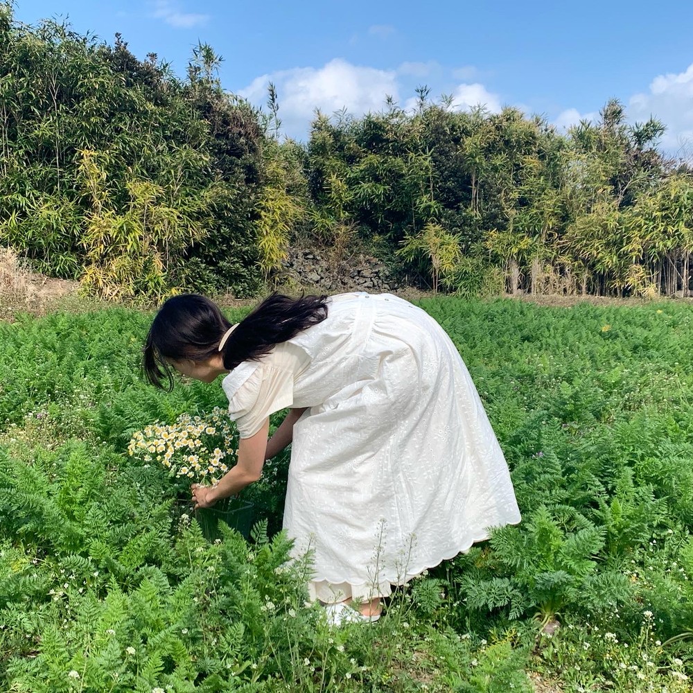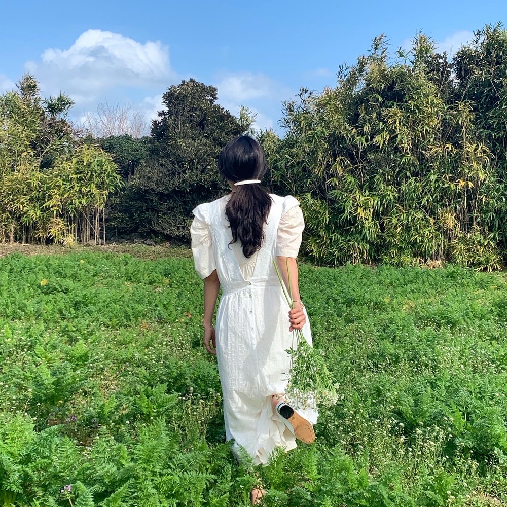 원피스 한벌로 소풍을 떠나는 듯한