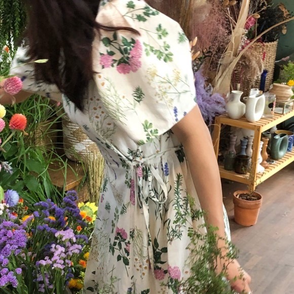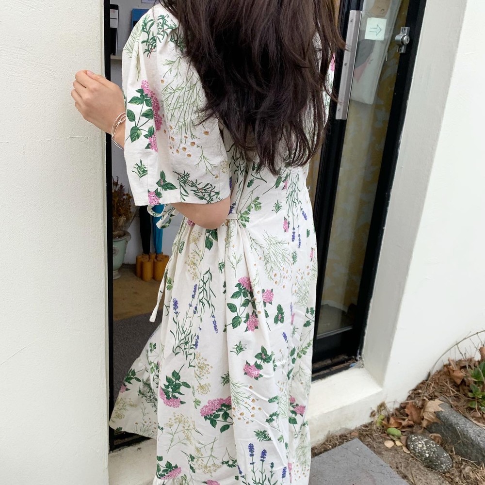 목너비 24 / 암홀 22 / 허리단면 49.5 (끈 묶지 않았을때)