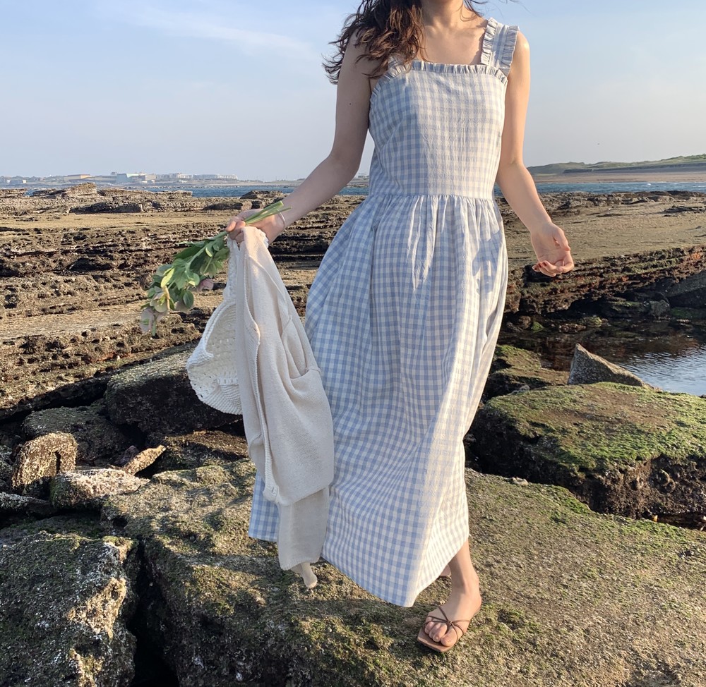 스프링 체크 드레스와