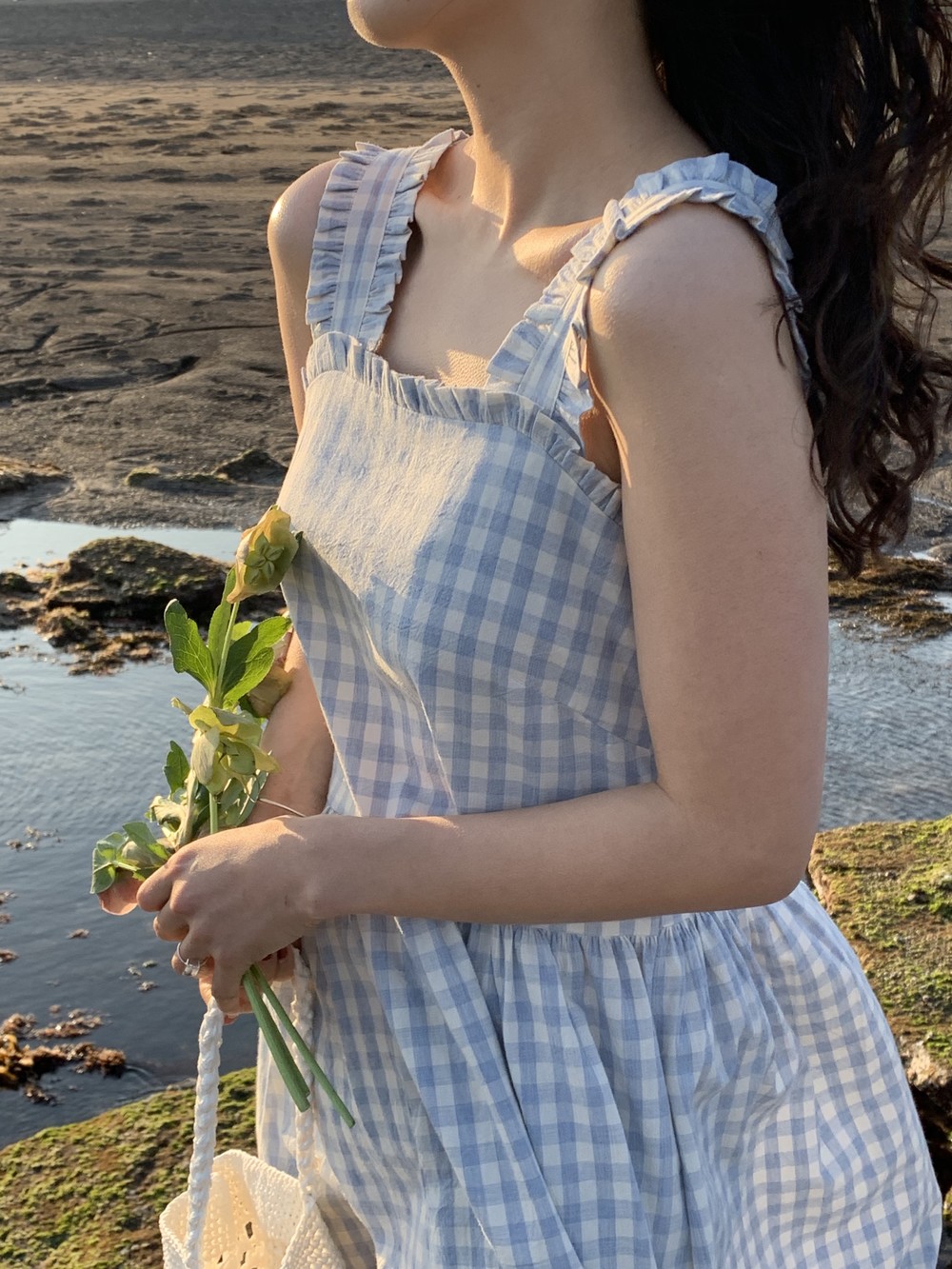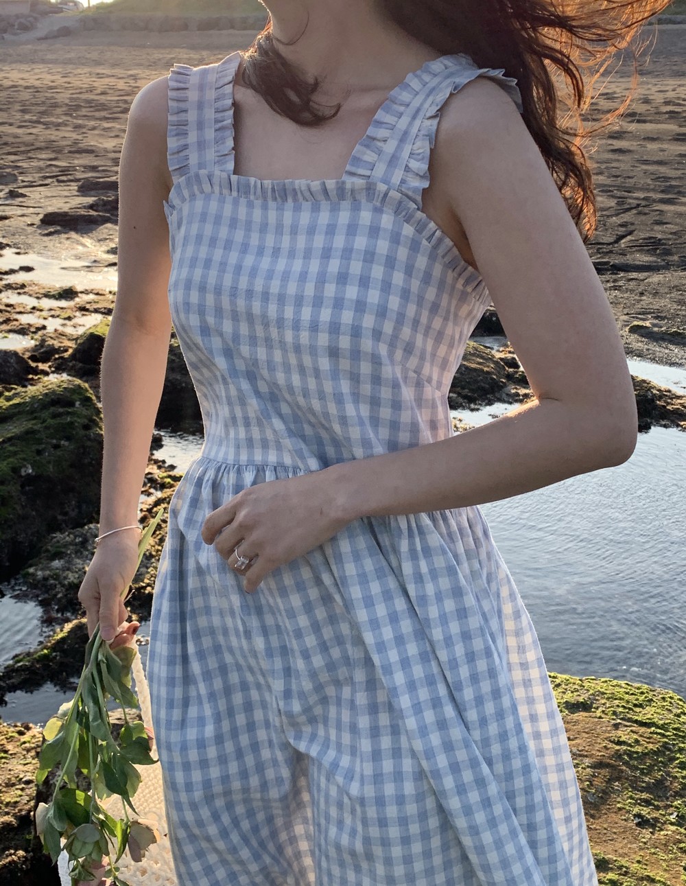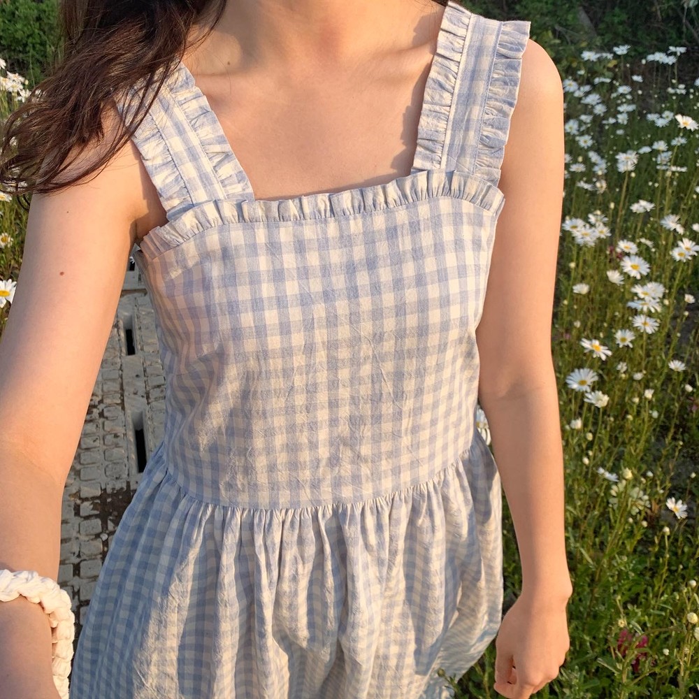 어깨끈과 네크라인 프릴