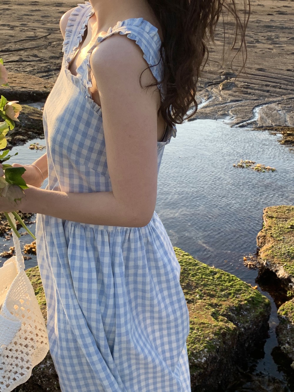 어깨끈과 상체 라인의 프릴이