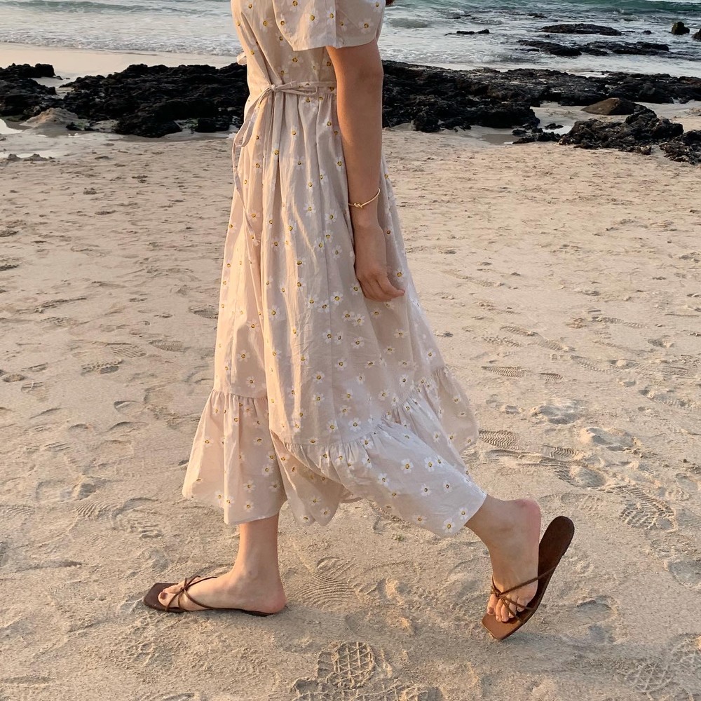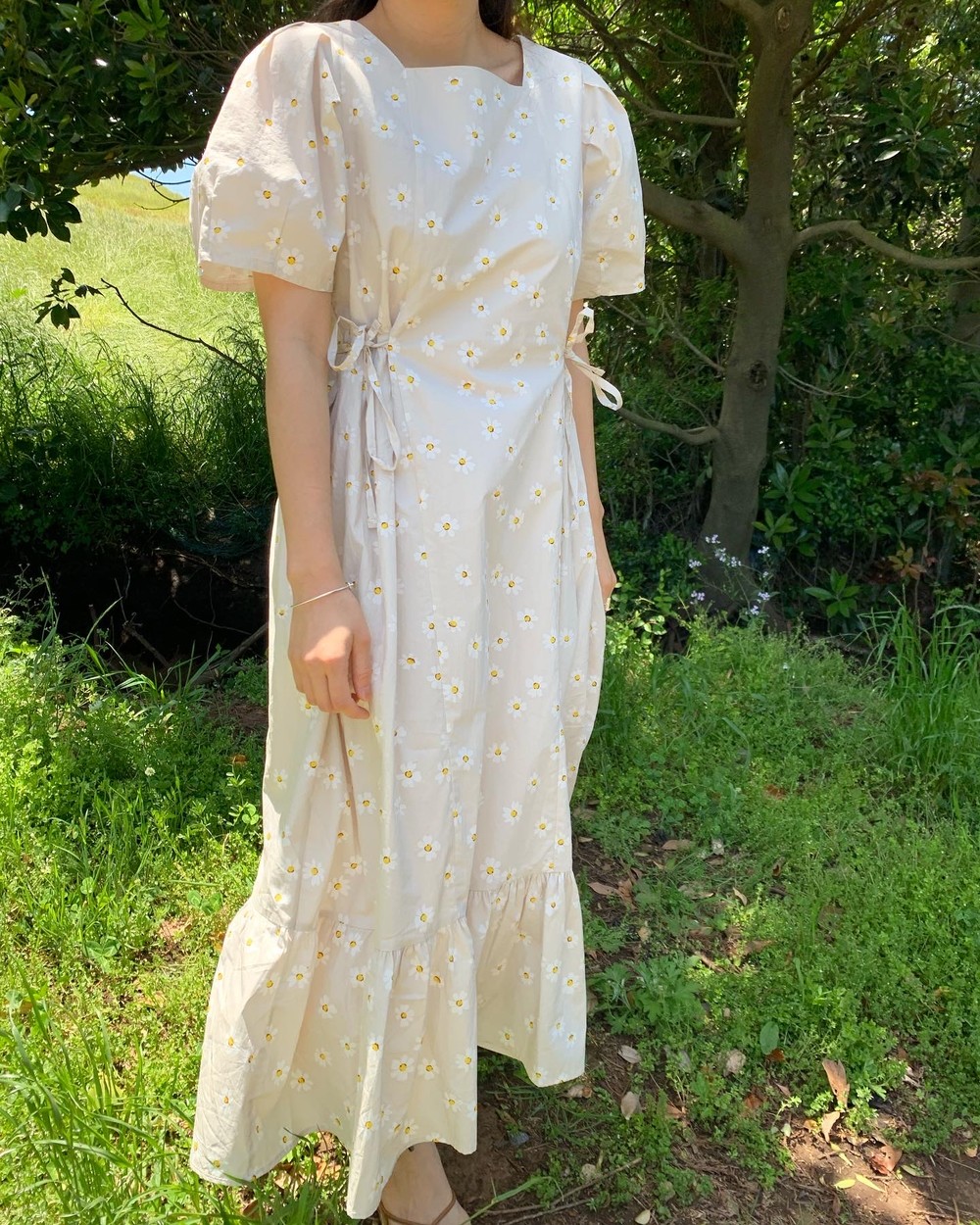 허리는 양 옆 끈으로 사이즈 조절이 가능합니다