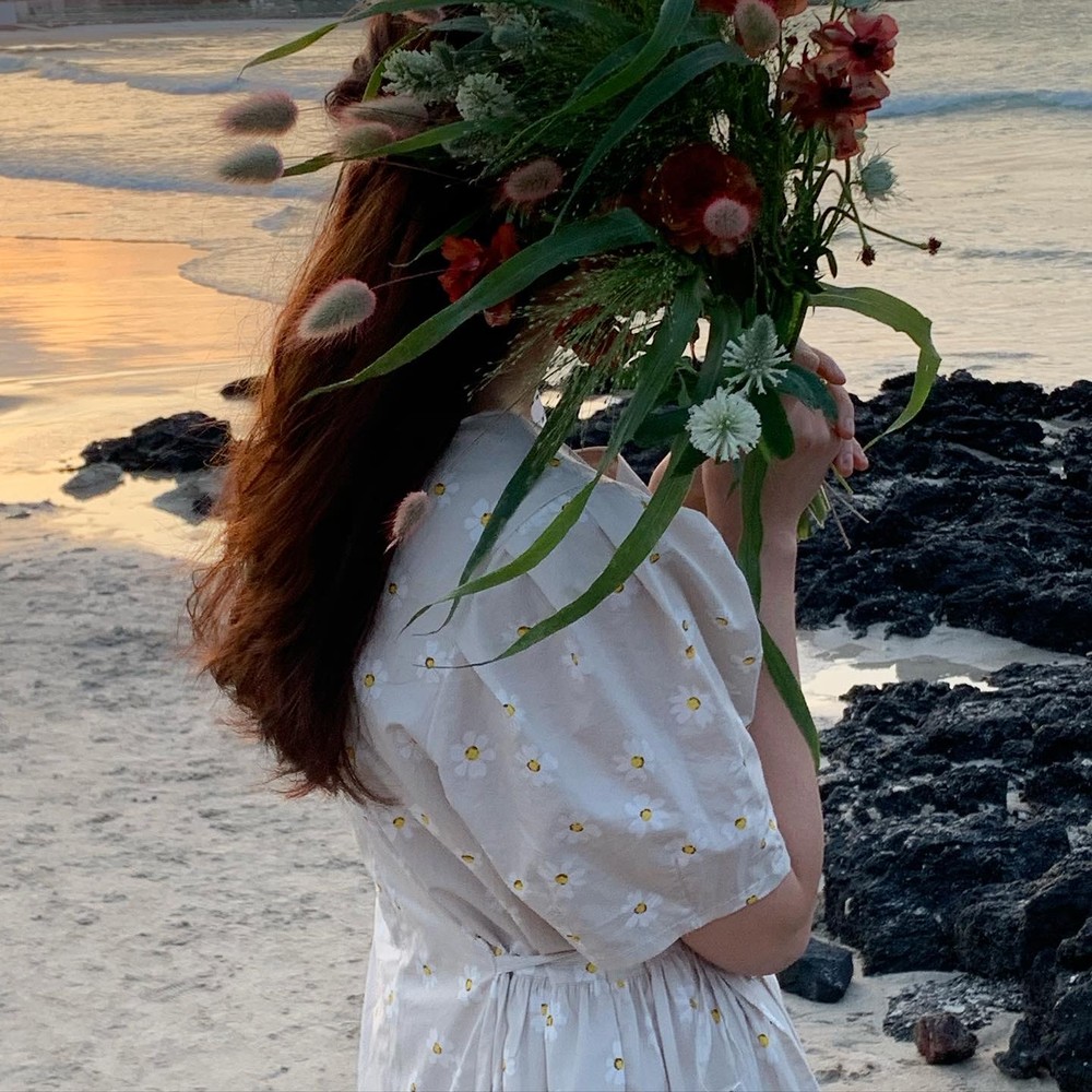 옷의 무드를 사랑스럽게 만들어주었어요.