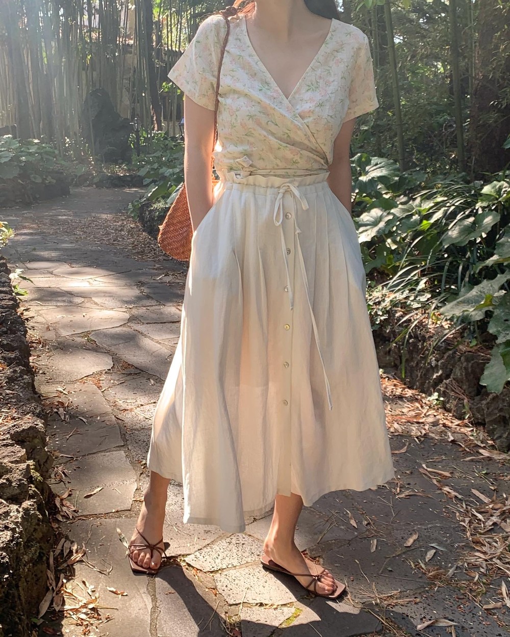 허리에 긴 끈을 감아서 입어주시면 되는데