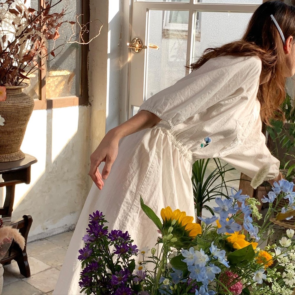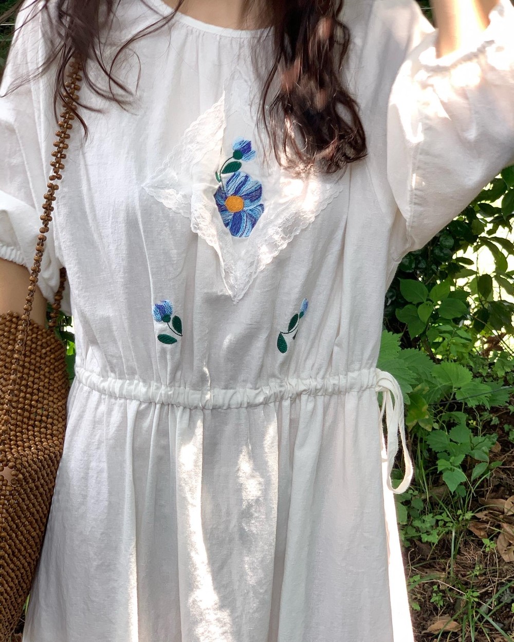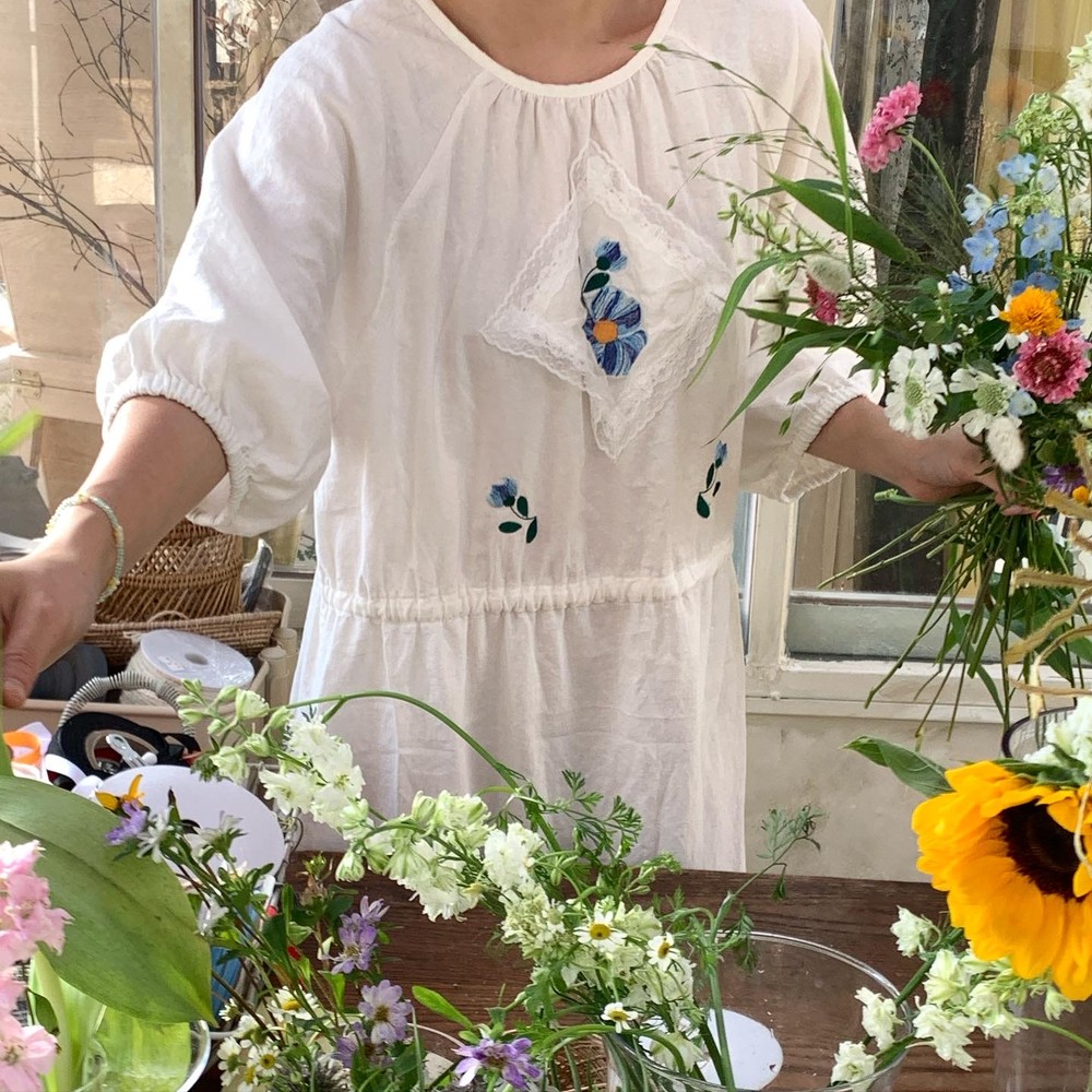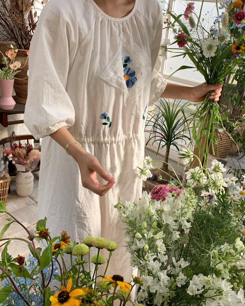 플라워 자수와 레이스 장식
