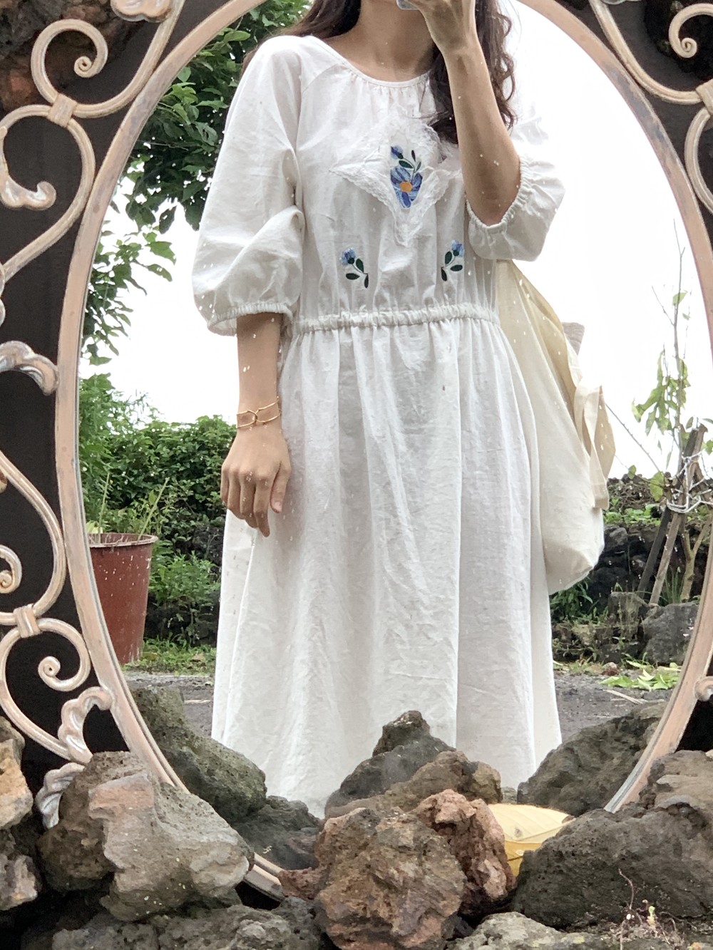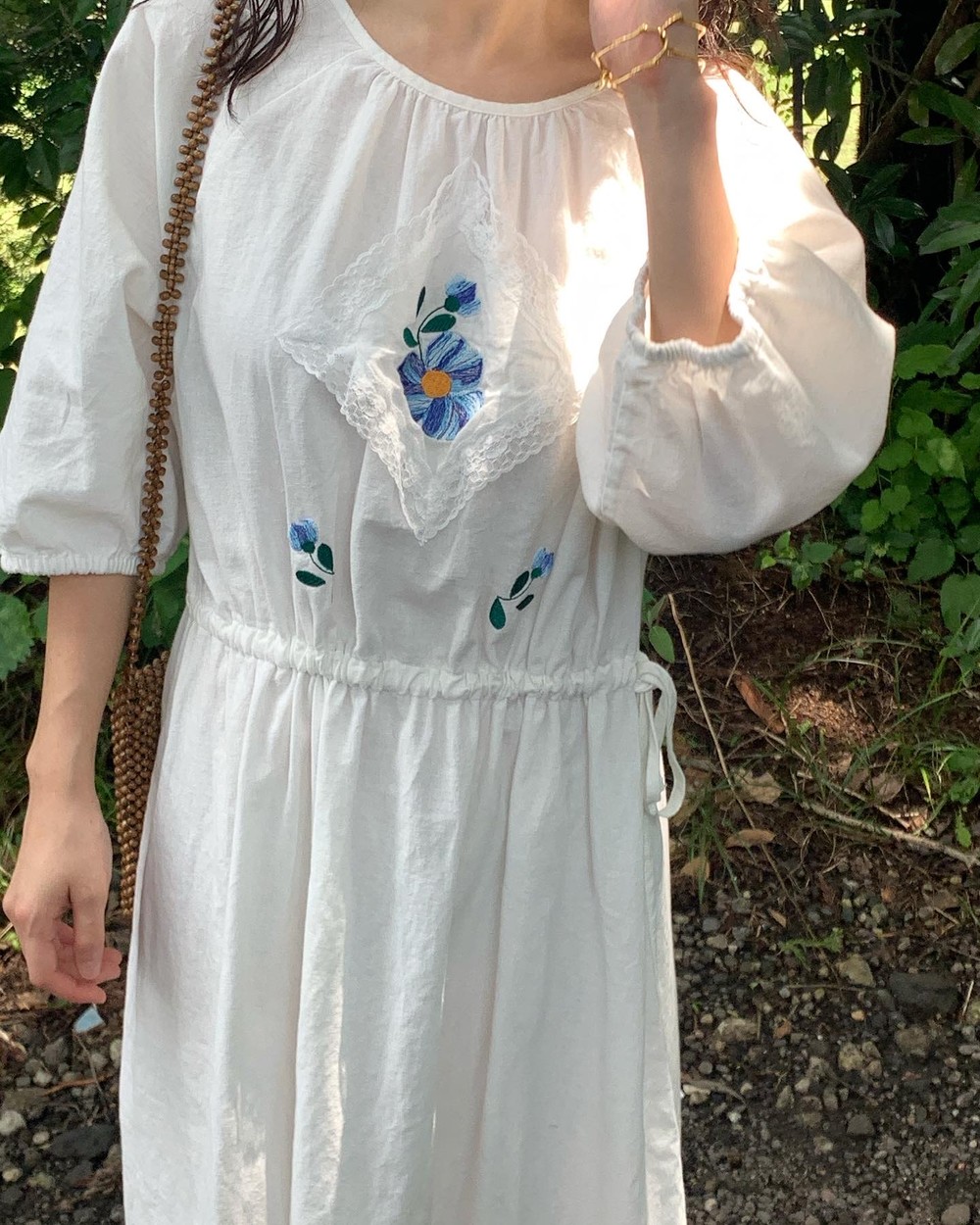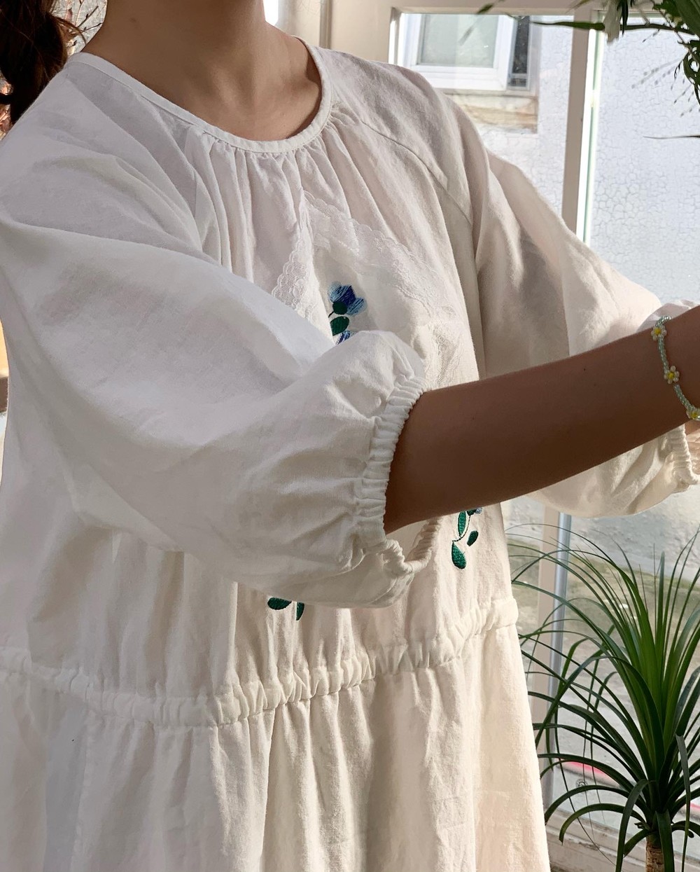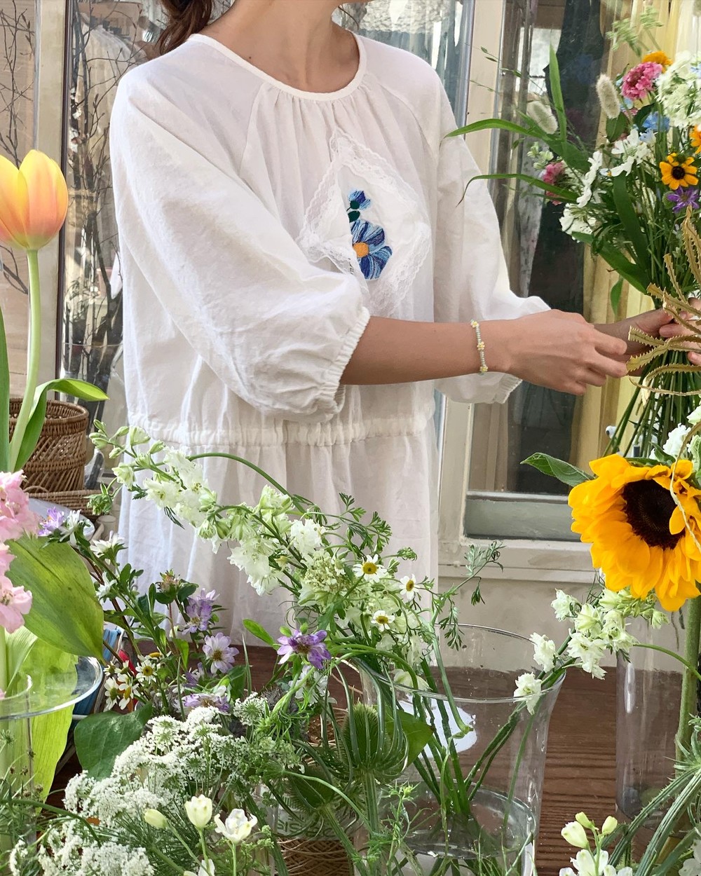 플라워 자수와 레이스 장식